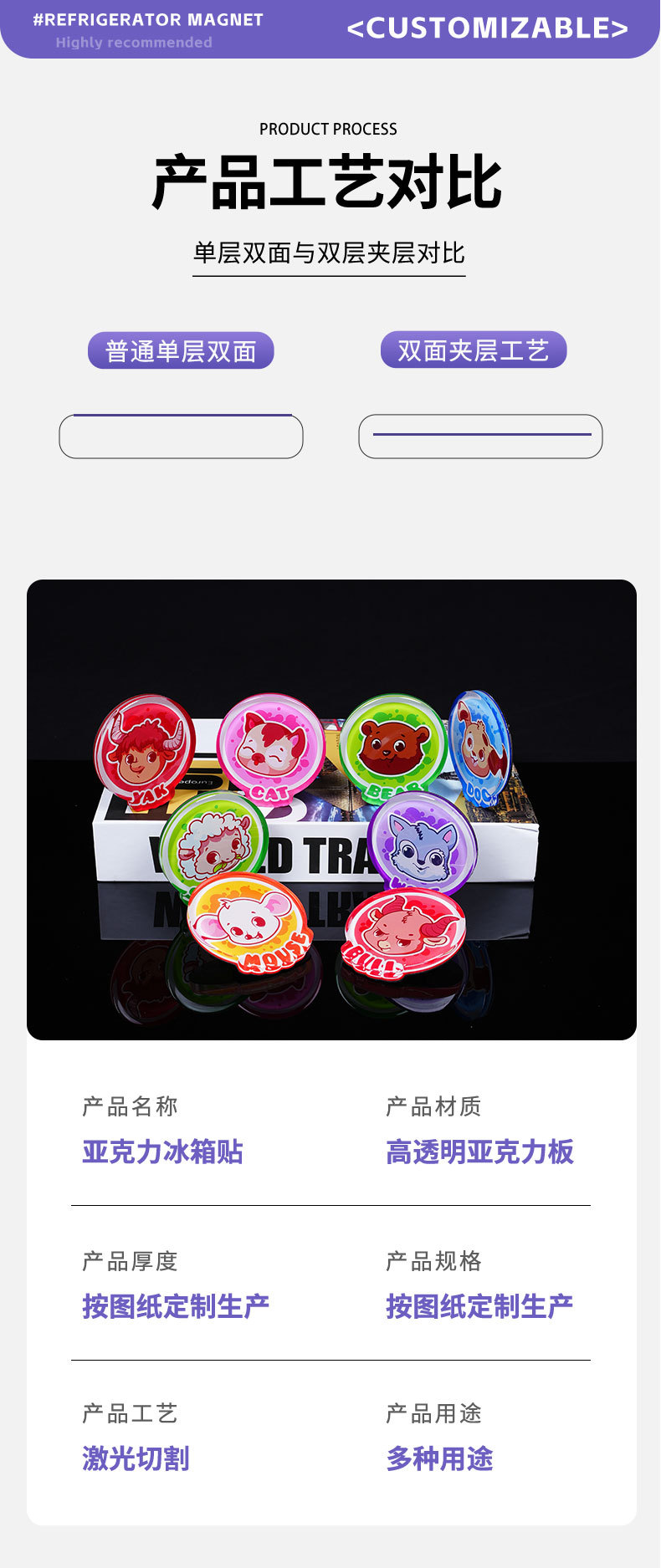 亚克力流沙冰箱贴定制diy中国城市文创强吸磁贴稀奇古怪办公文化