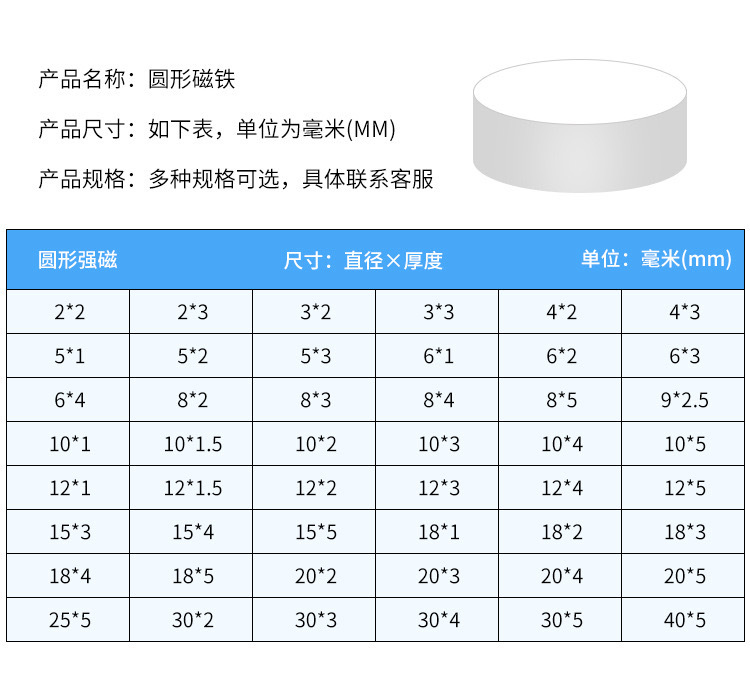 钕铁硼包装磁石冰箱贴磁铁强吸N52圆形强磁吸铁石磁铁强力小圆片