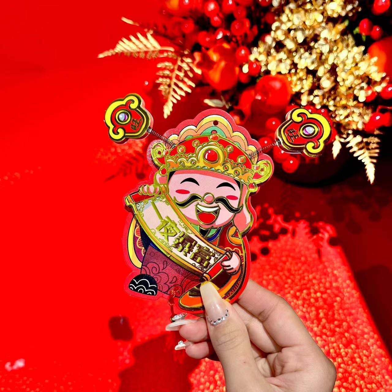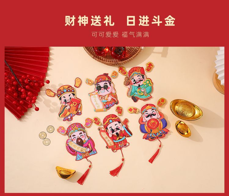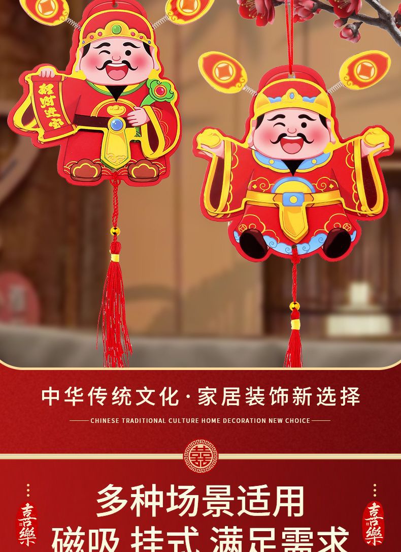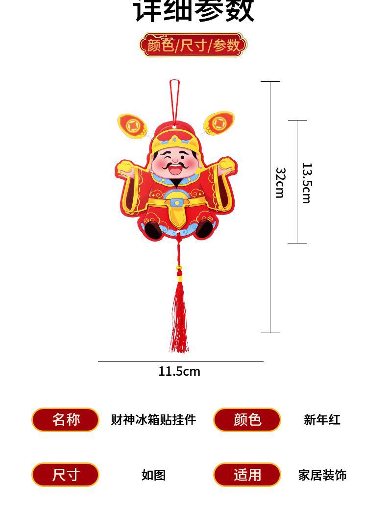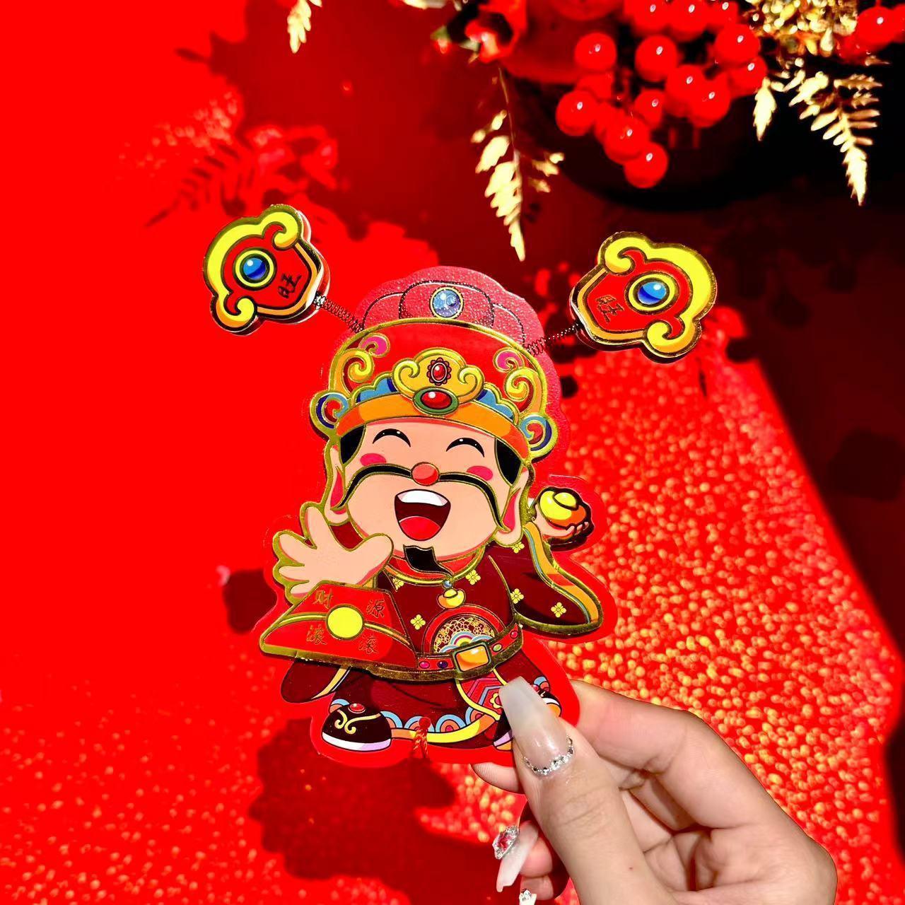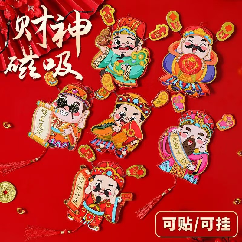 抖音摇耳朵财神爷立体磁吸冰箱贴新年喜庆烫金财神装饰挂件批发