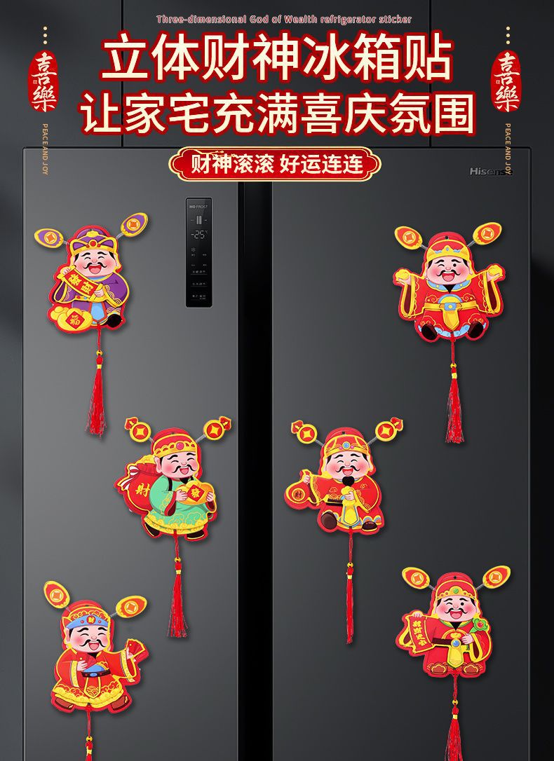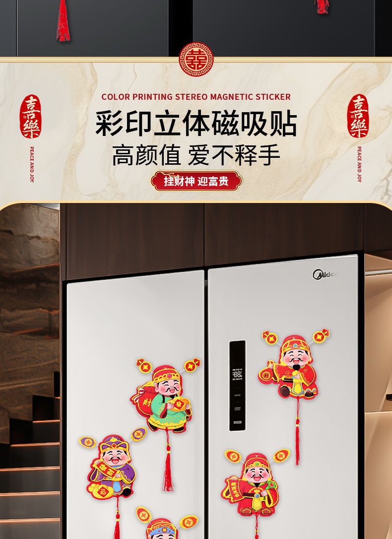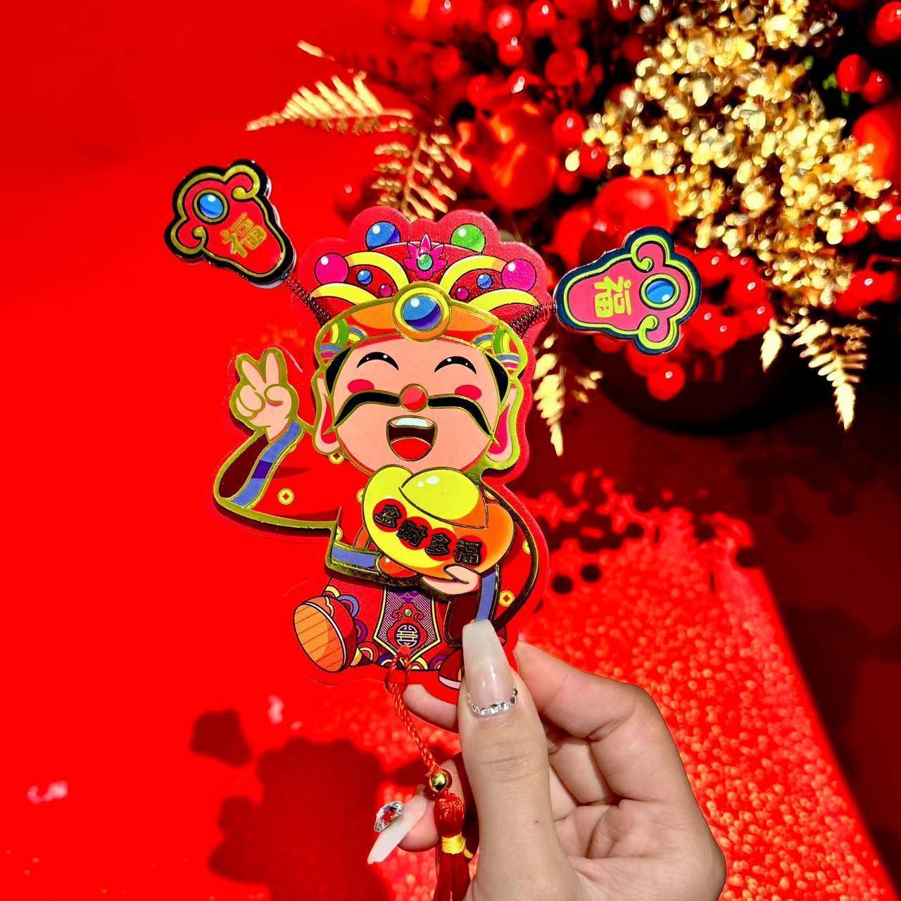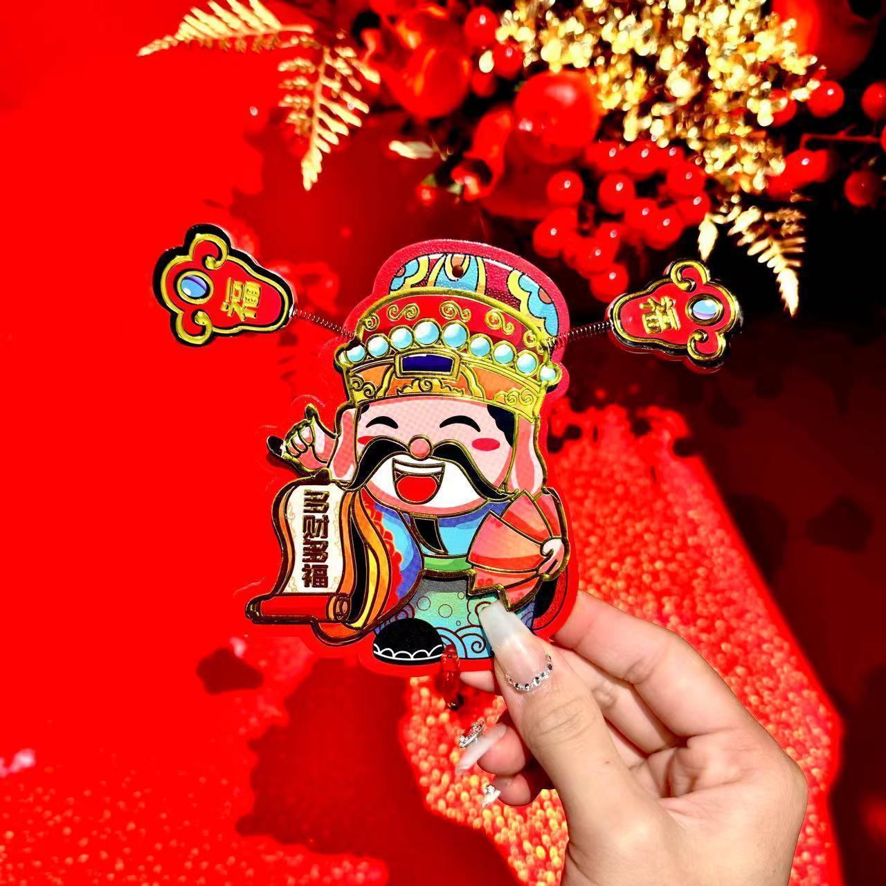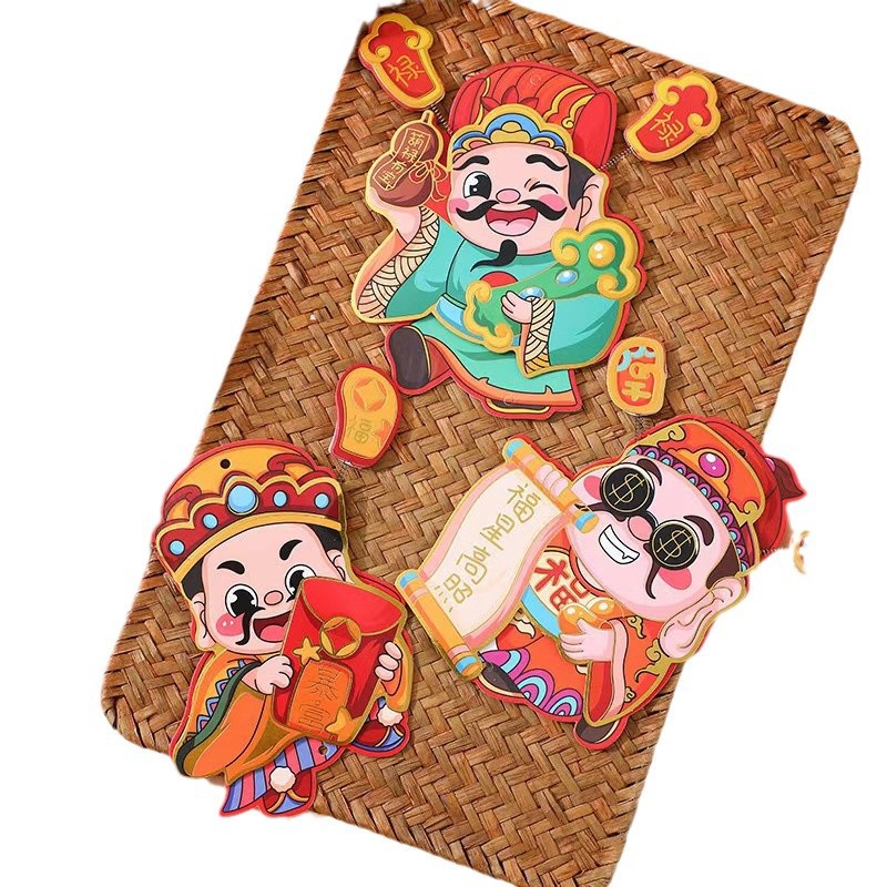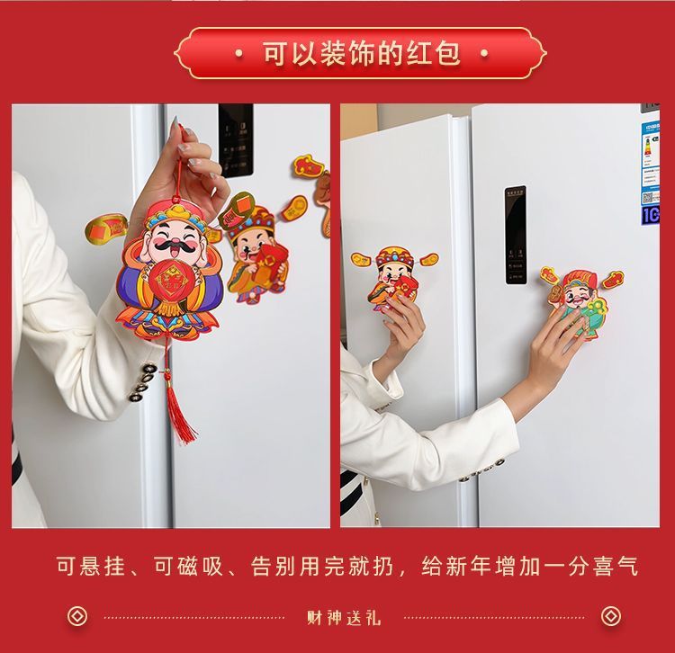 抖音摇耳朵财神爷立体磁吸冰箱贴新年喜庆烫金财神装饰挂件批发