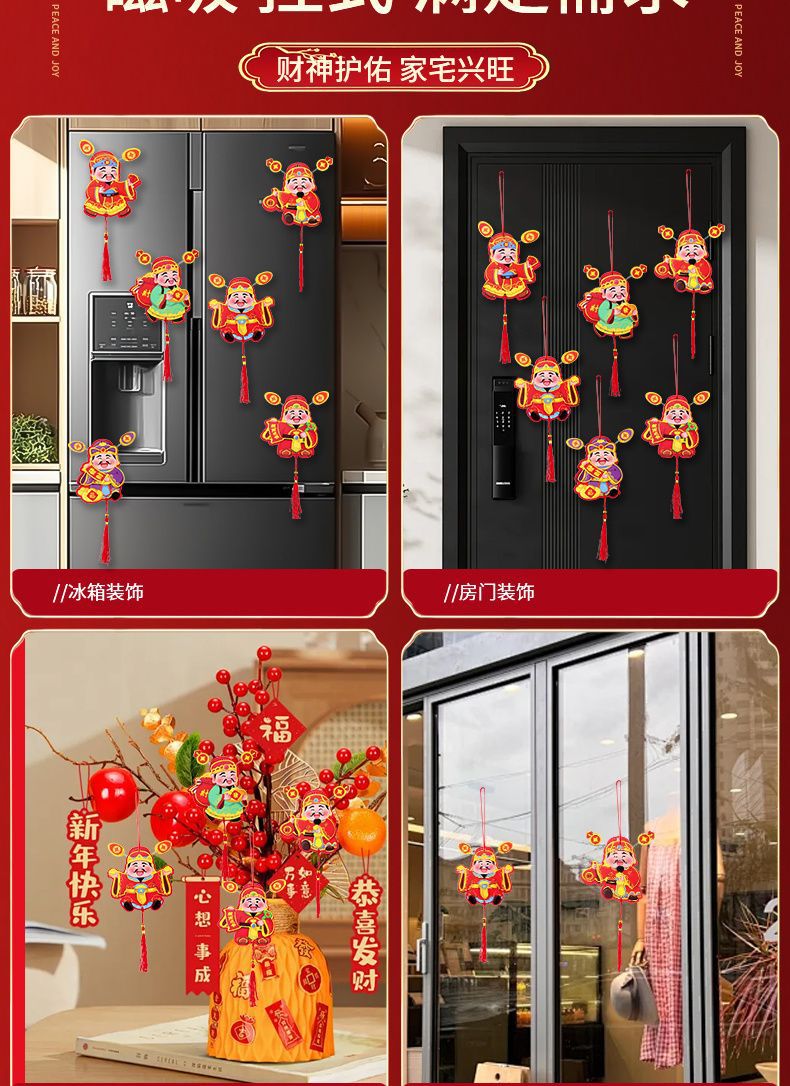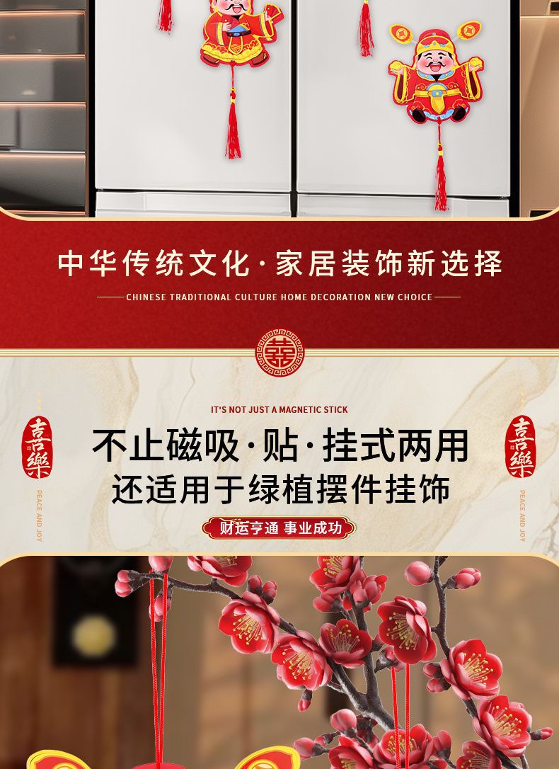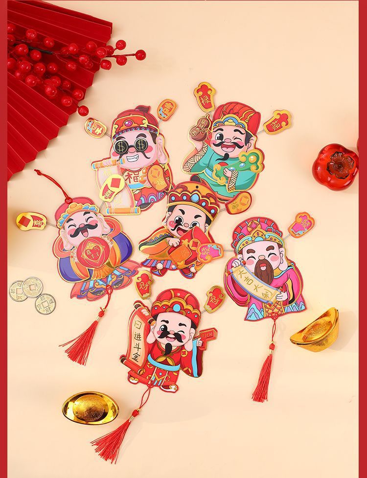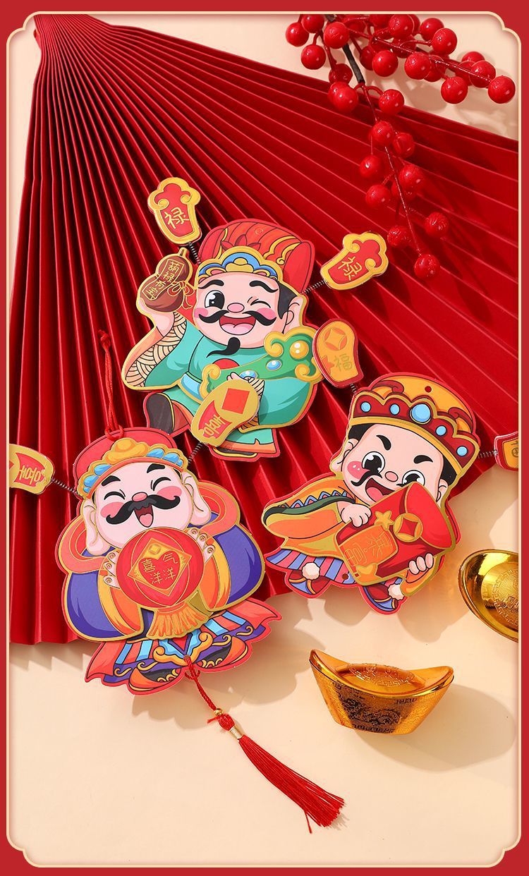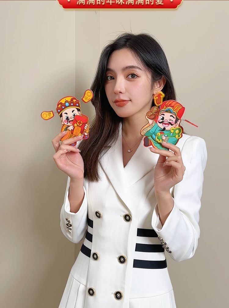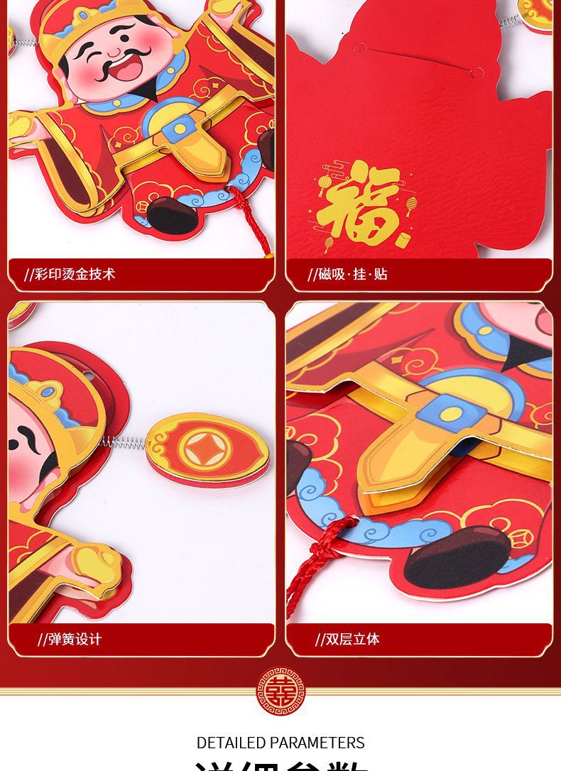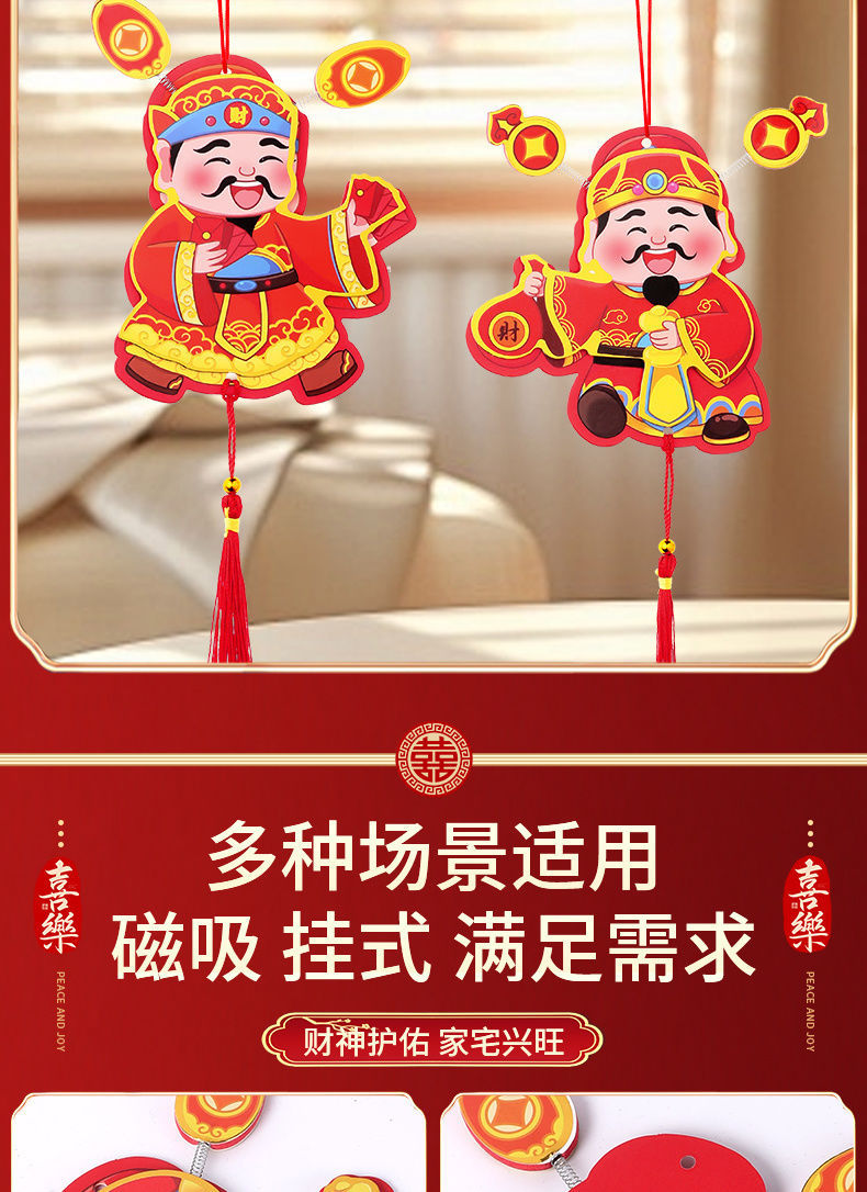 抖音摇耳朵财神爷立体磁吸冰箱贴新年喜庆烫金财神装饰挂件批发