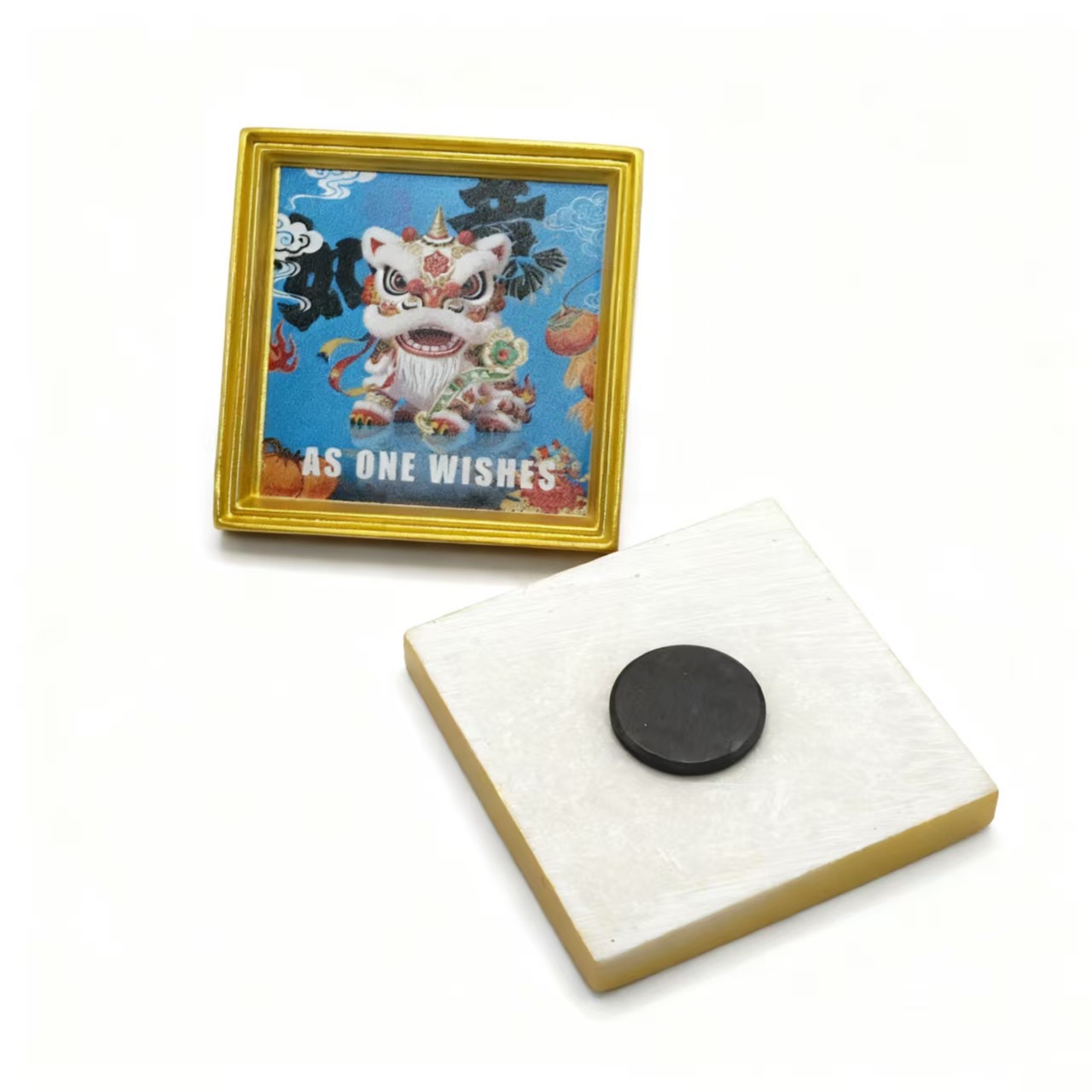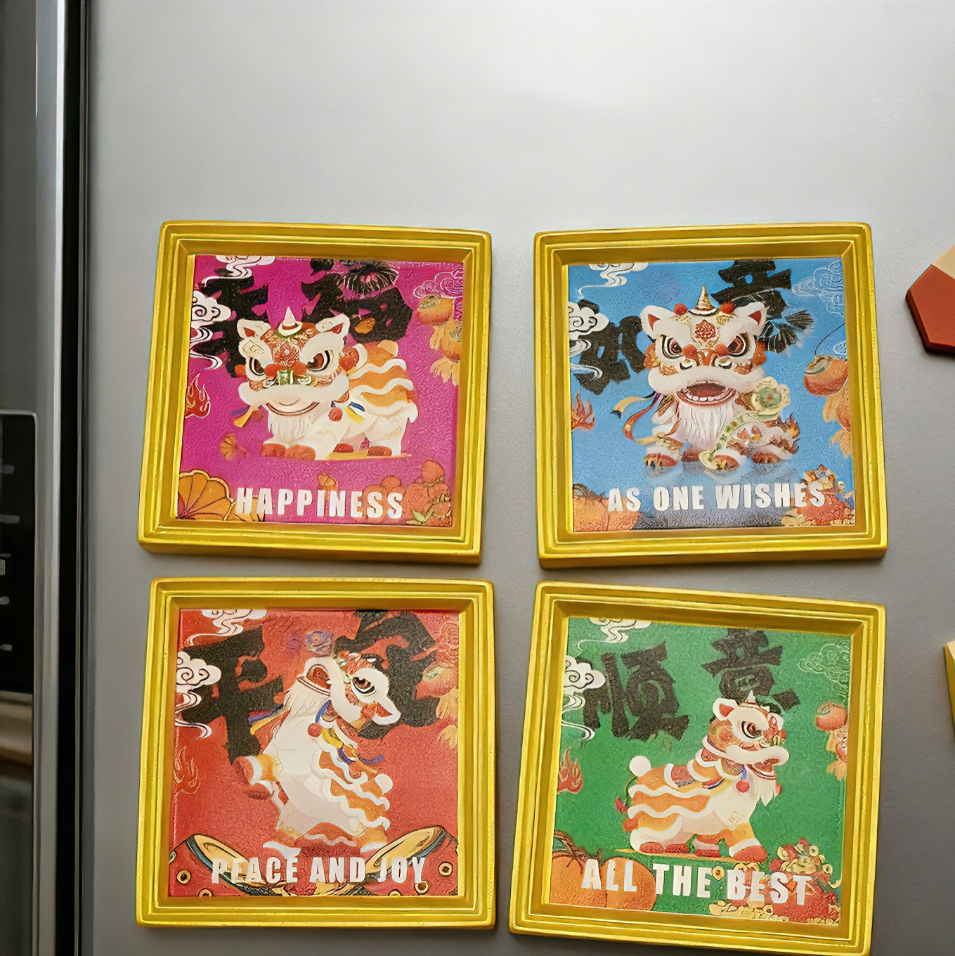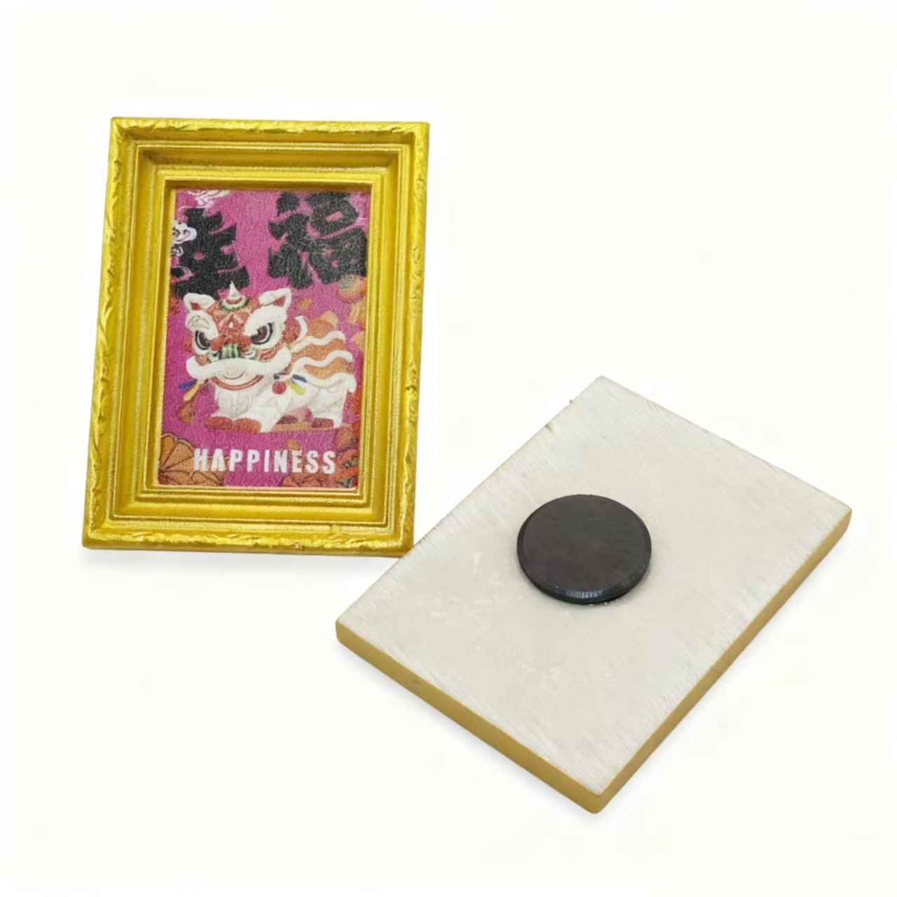 新年创意冰箱贴3d相框醒狮平安顺意冰箱贴喜庆文创春节装饰冰箱贴