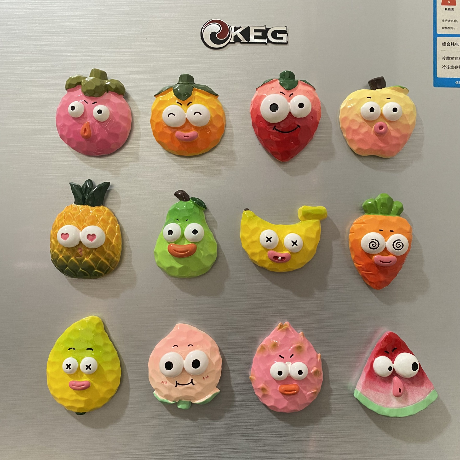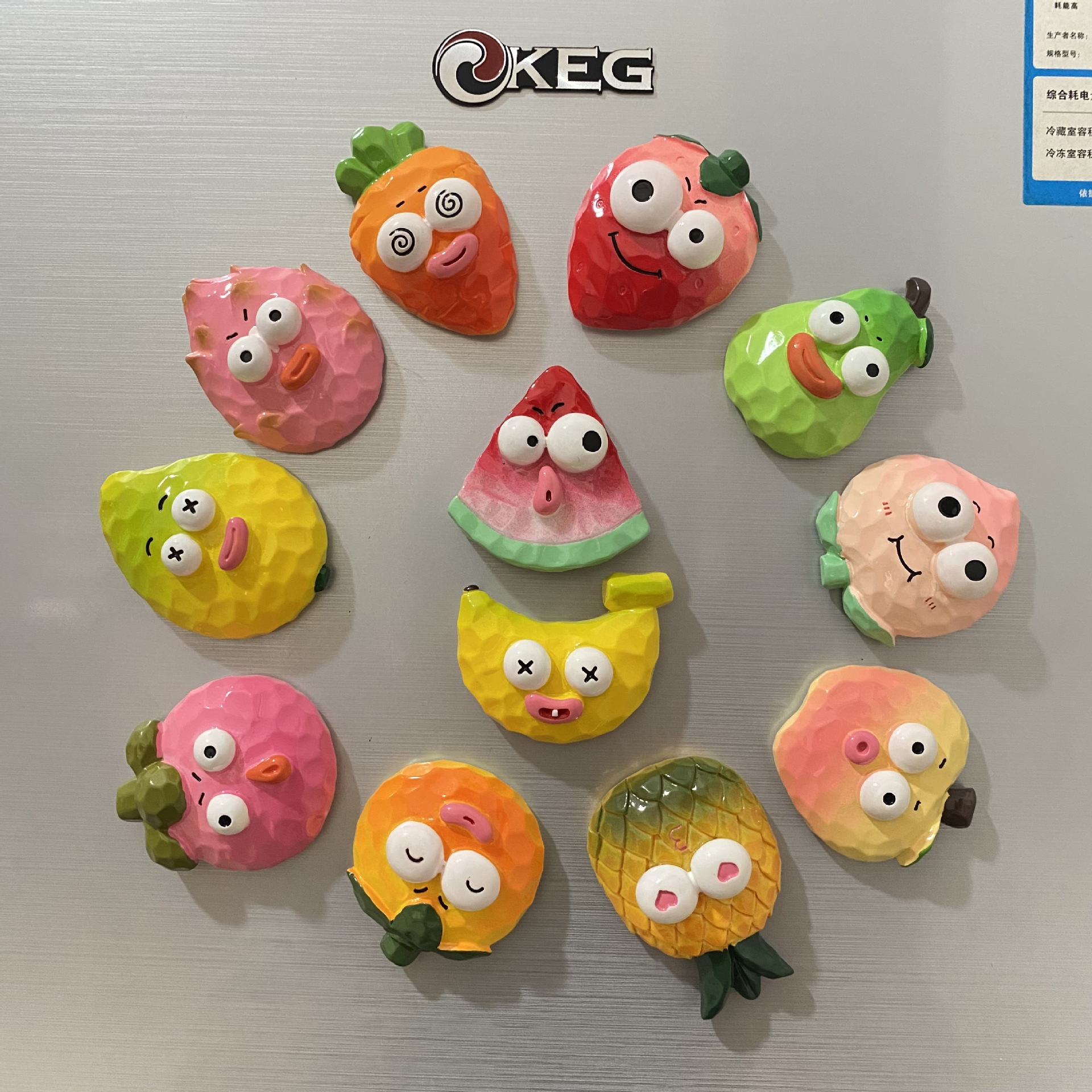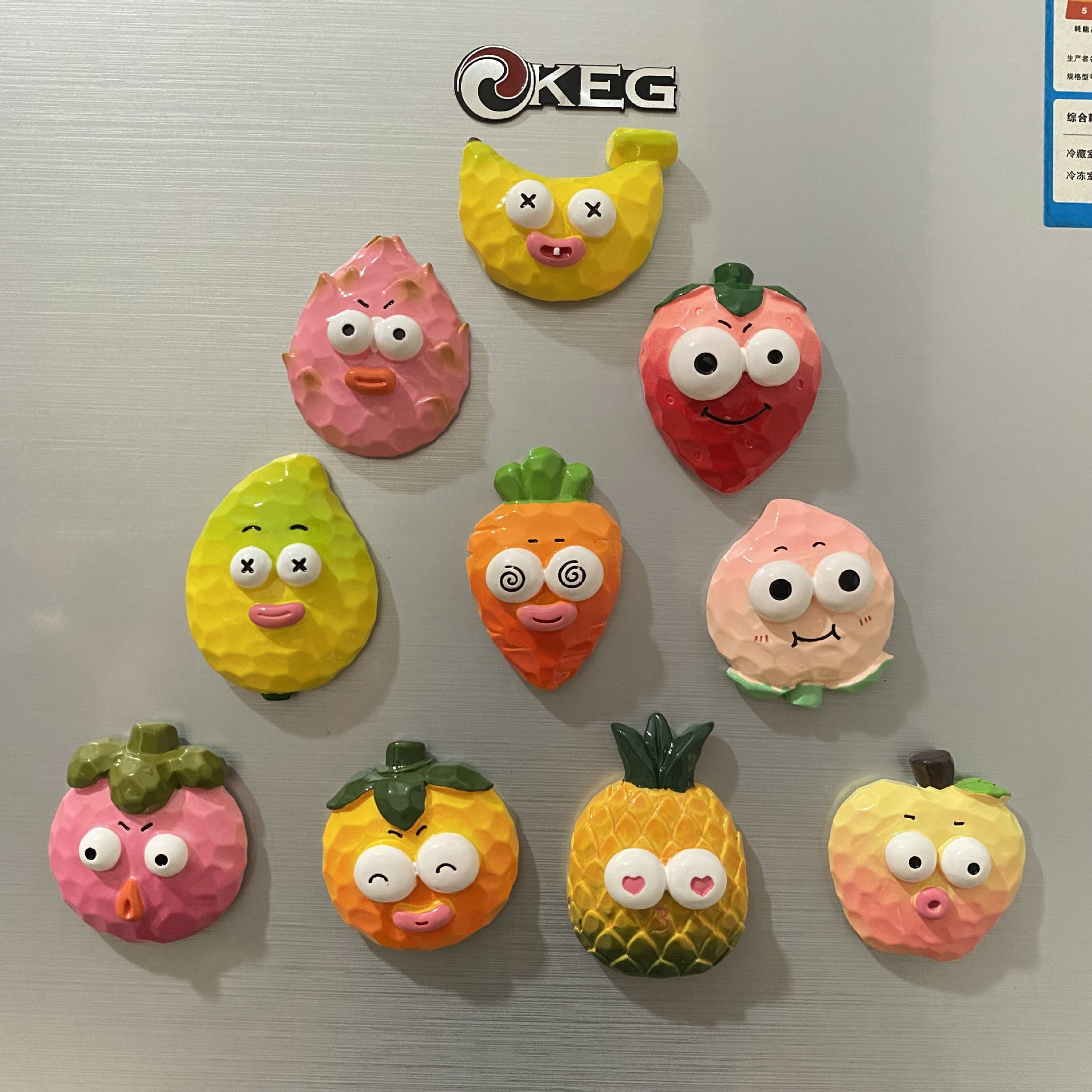 创意树脂冰箱贴磁贴3d立体表情水果苹果冰箱贴稀奇古怪磁吸小物件