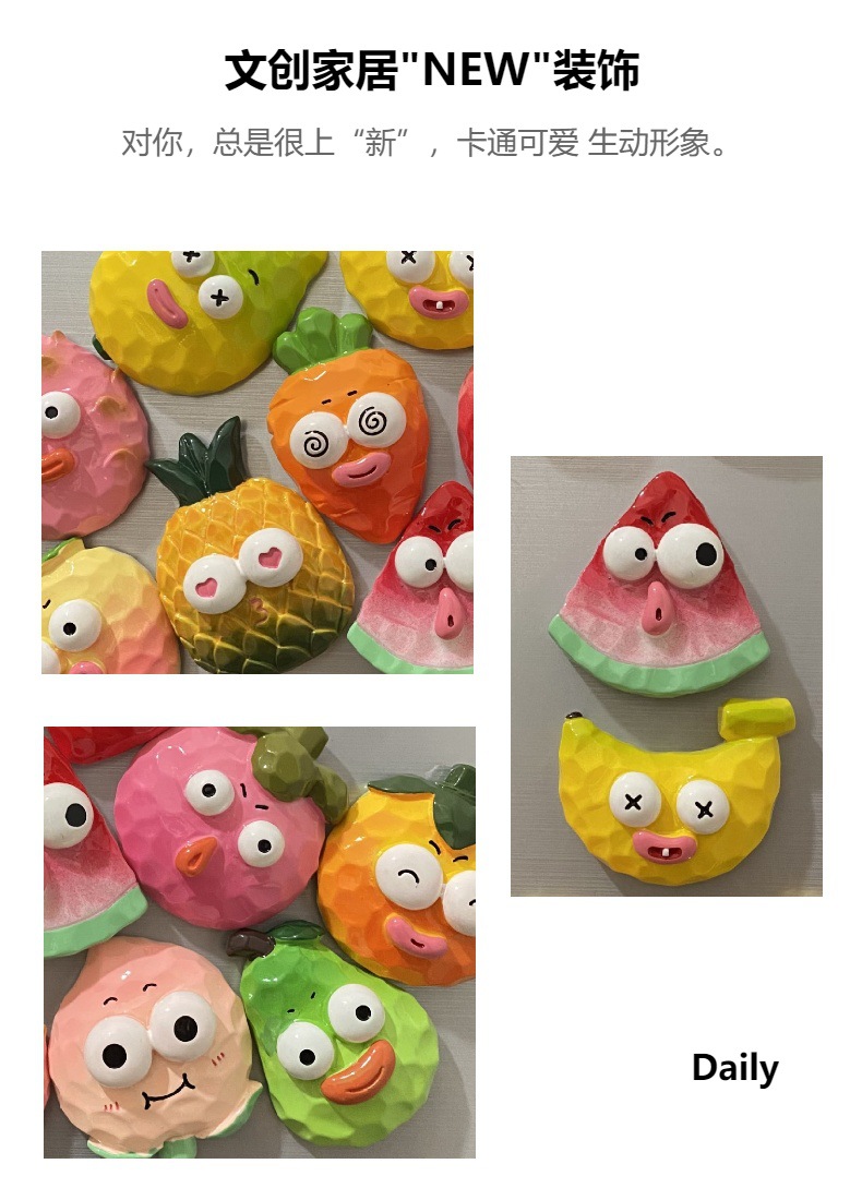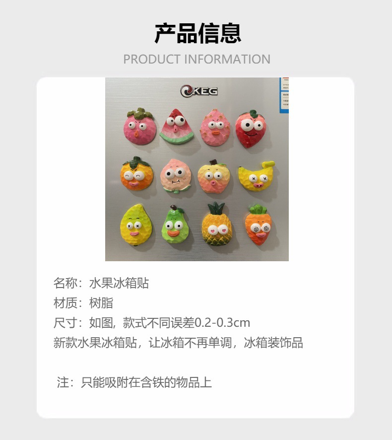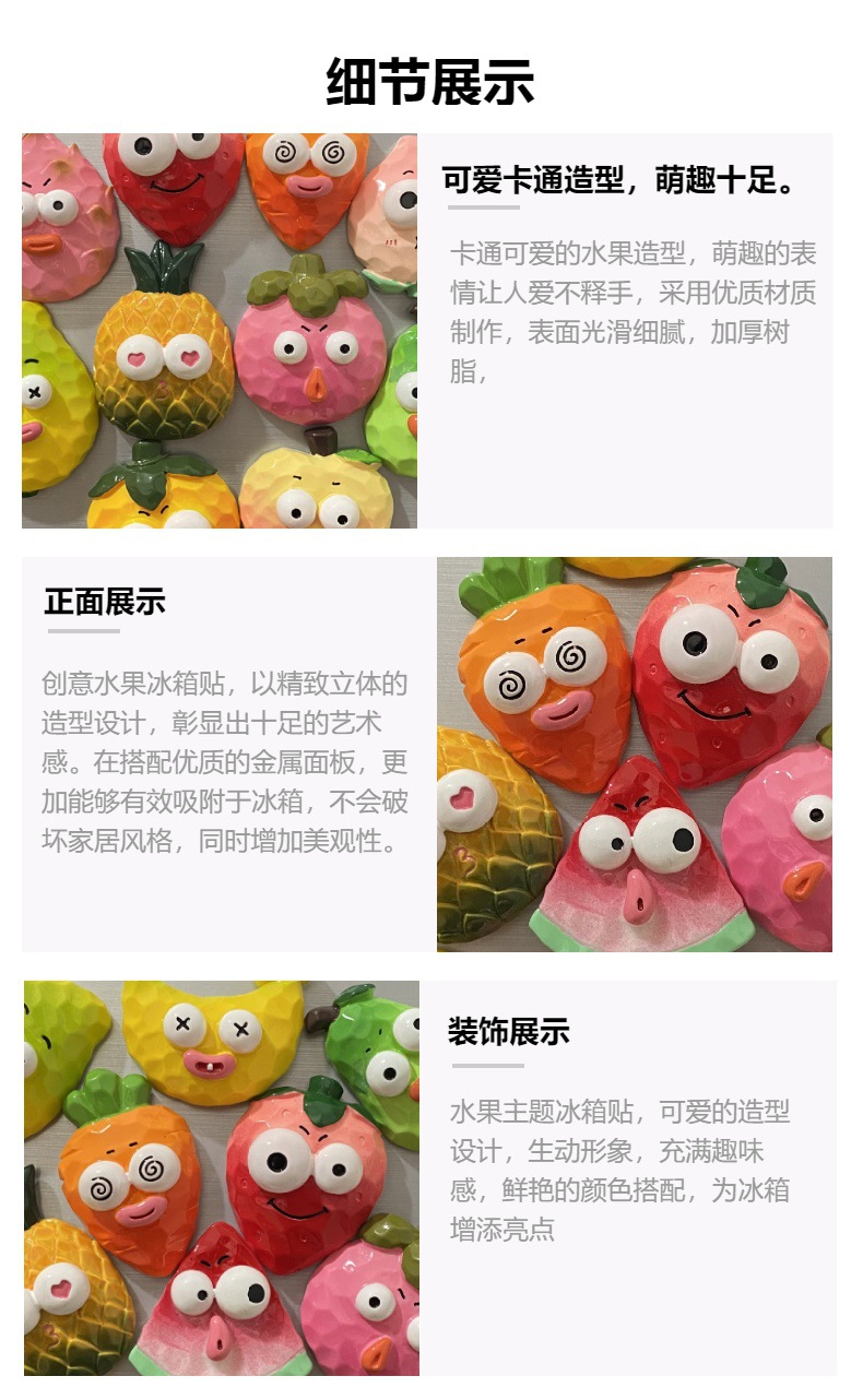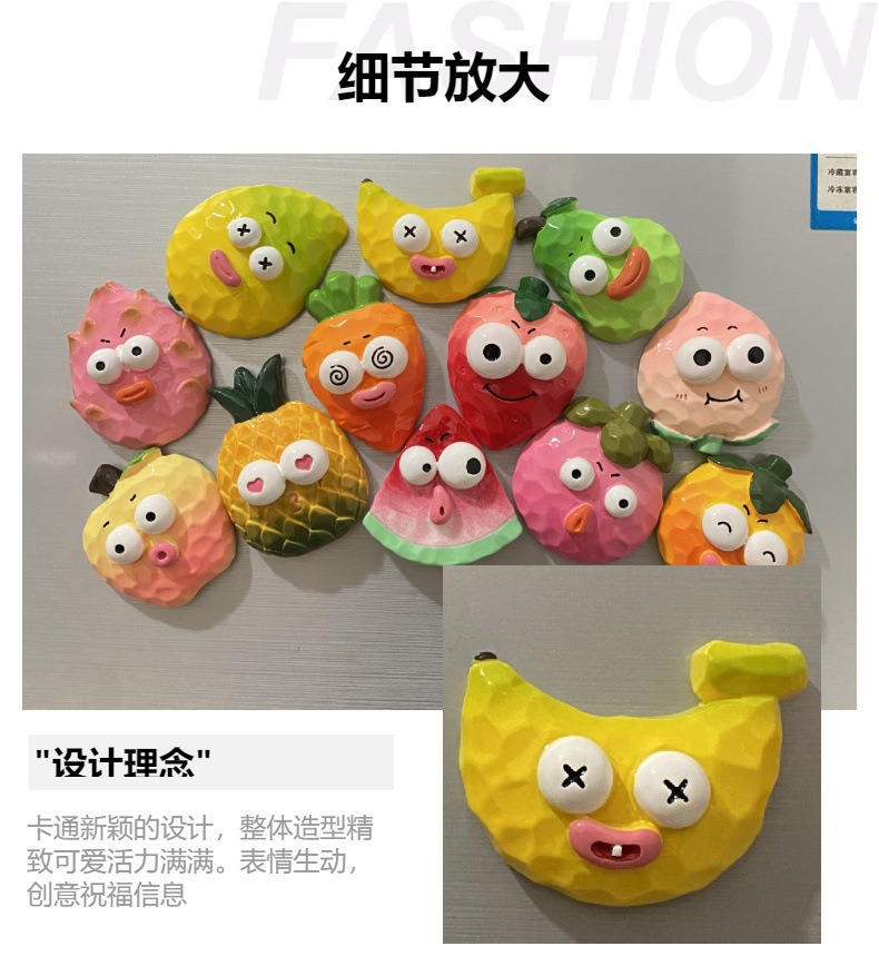 创意树脂冰箱贴磁贴3d立体表情水果苹果冰箱贴稀奇古怪磁吸小物件