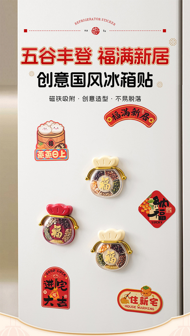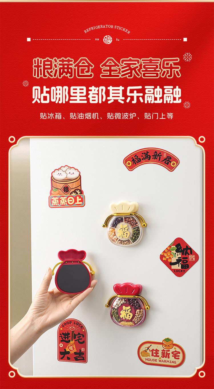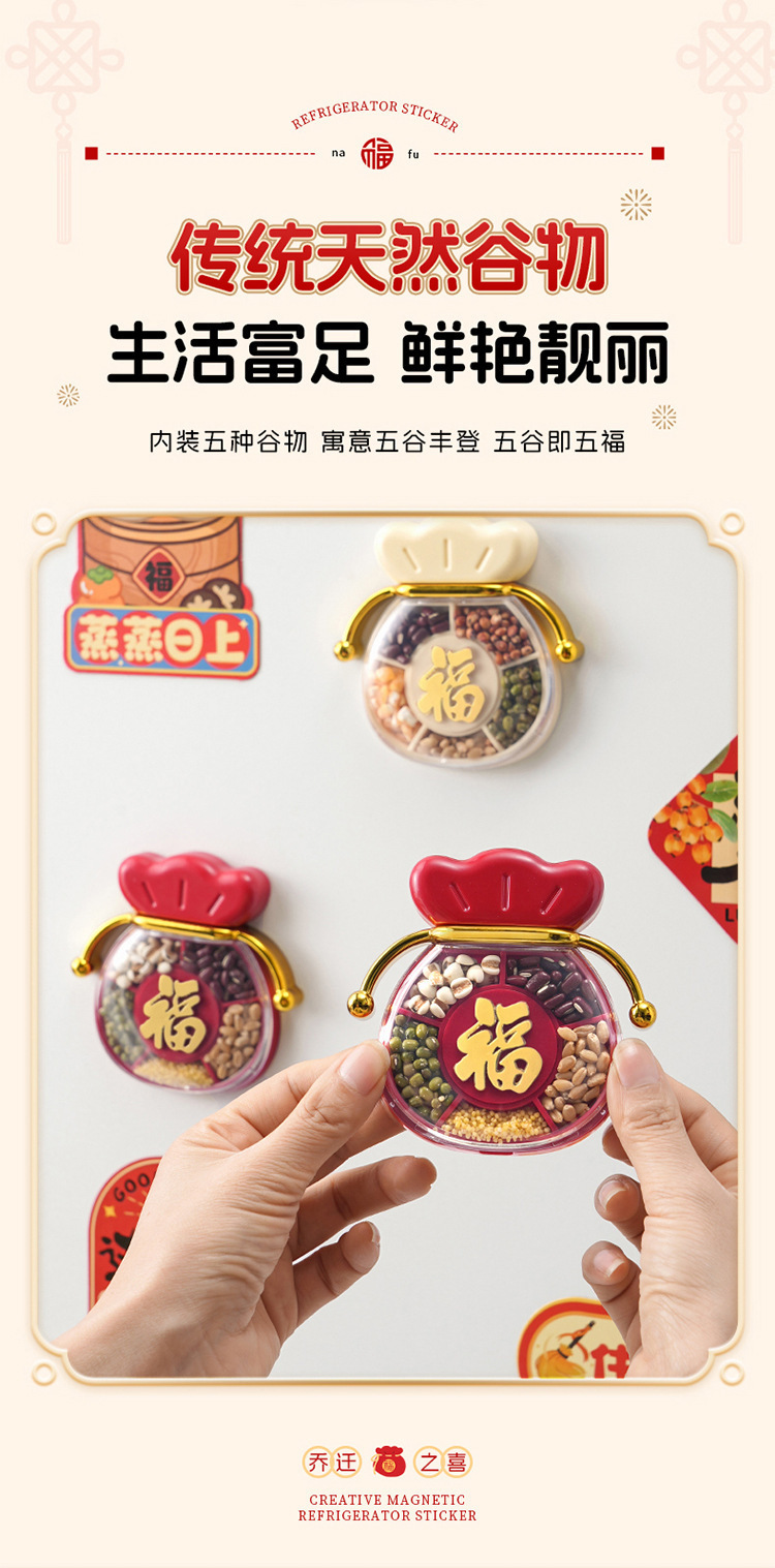 厂家批发五谷丰登福袋磁吸冰箱贴稀奇古怪新年春节喜庆家具装饰