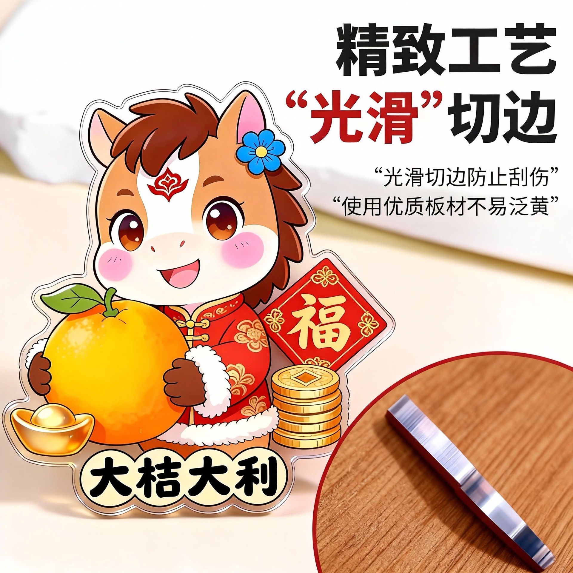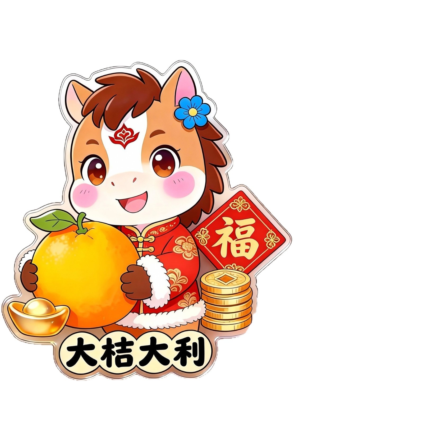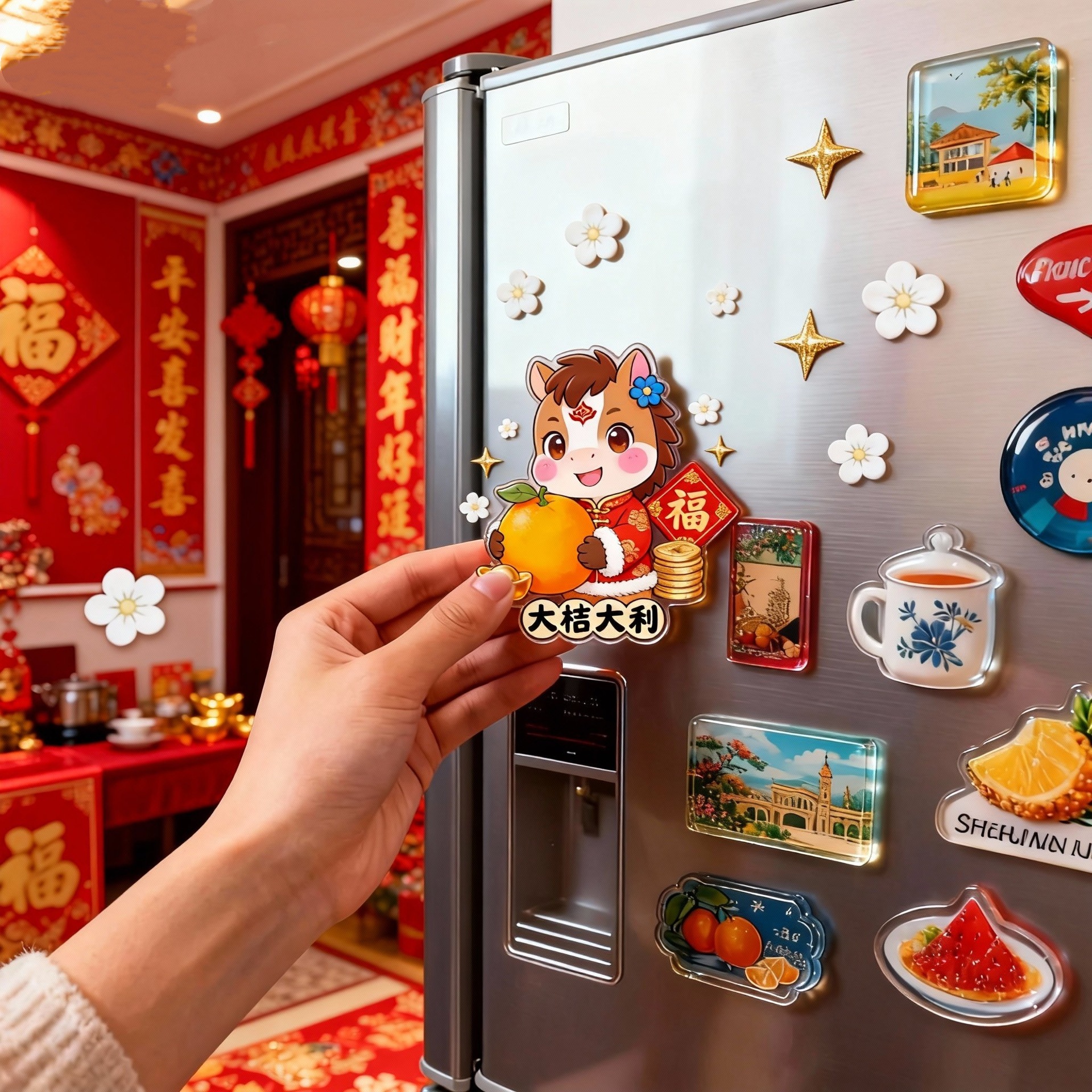 冰箱贴定制马年财神创意北京马上有钱亚克力文创卡通装饰贴磁吸