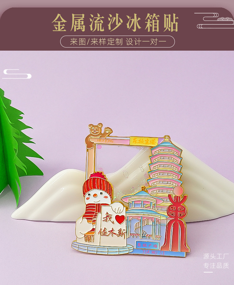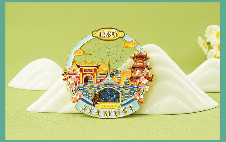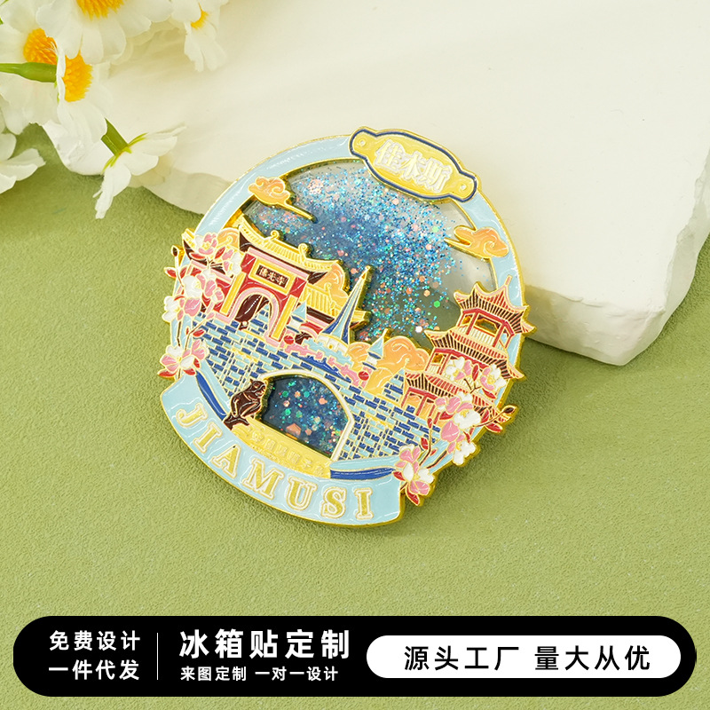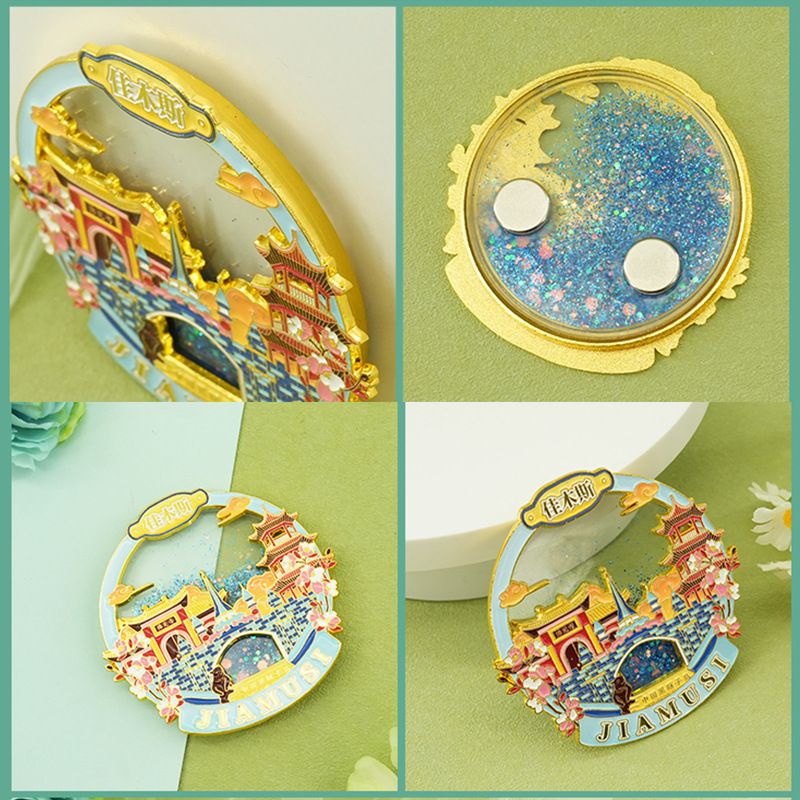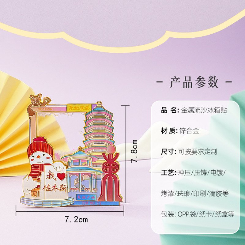 佳木斯金属冰箱贴中国城市黑龙江背吸旅游文创纪念品伴手流沙磁贴