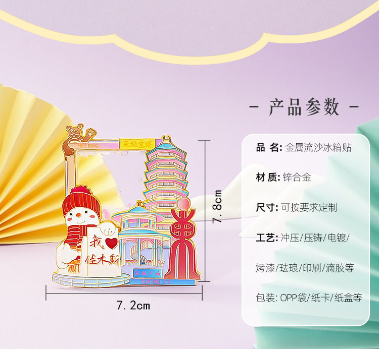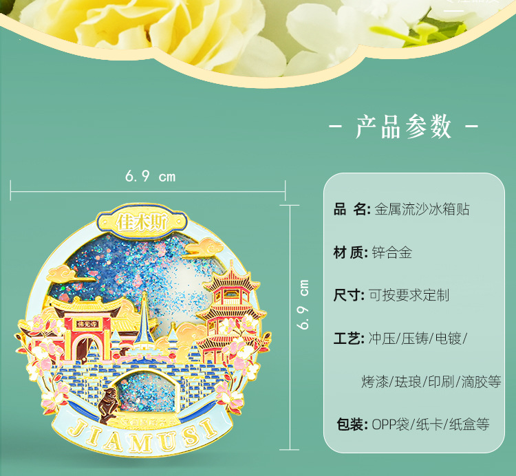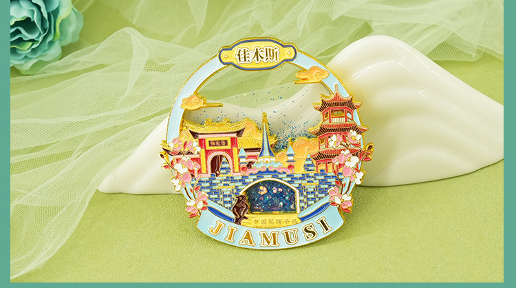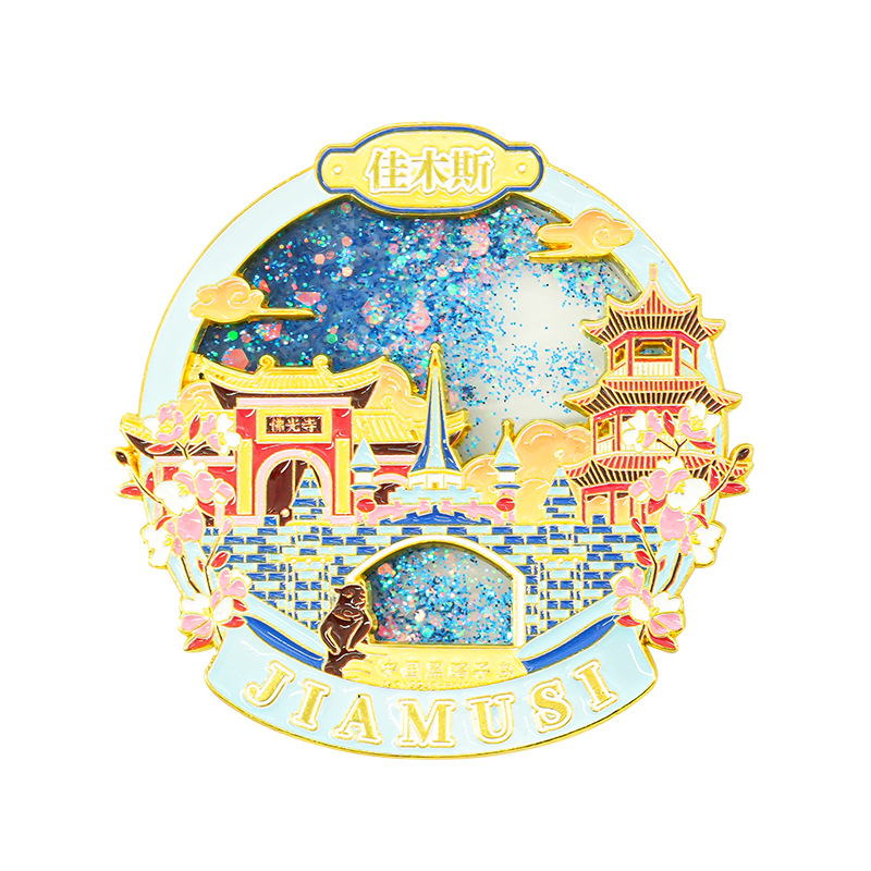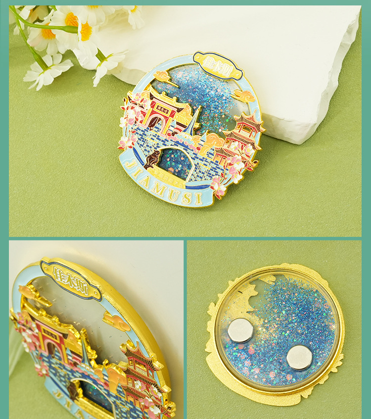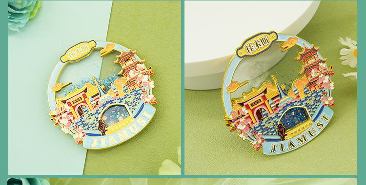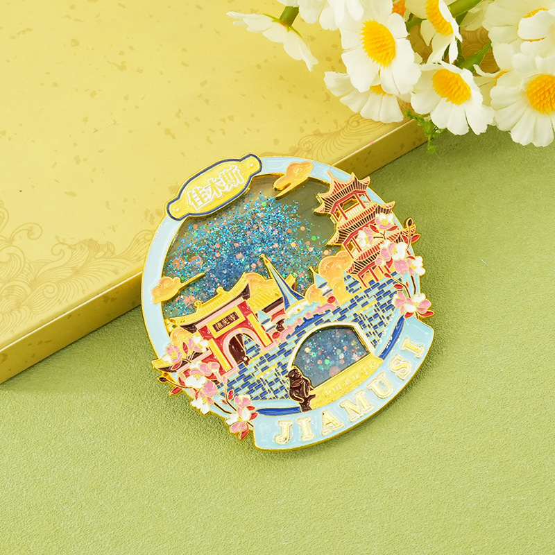 佳木斯金属冰箱贴中国城市黑龙江背吸旅游文创纪念品伴手流沙磁贴