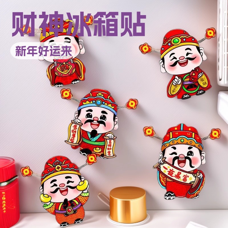 摇头财神冰箱贴装饰挂件乔迁挂饰门贴玻璃贴墙贴春节摆件新年财神