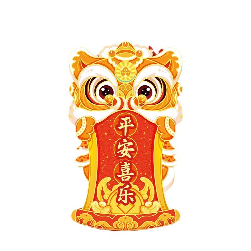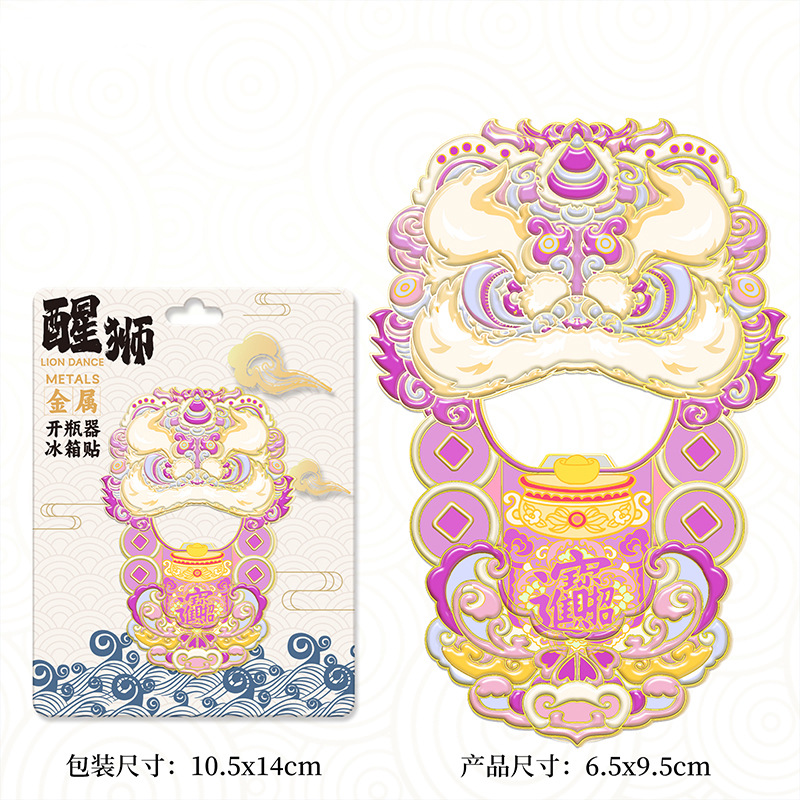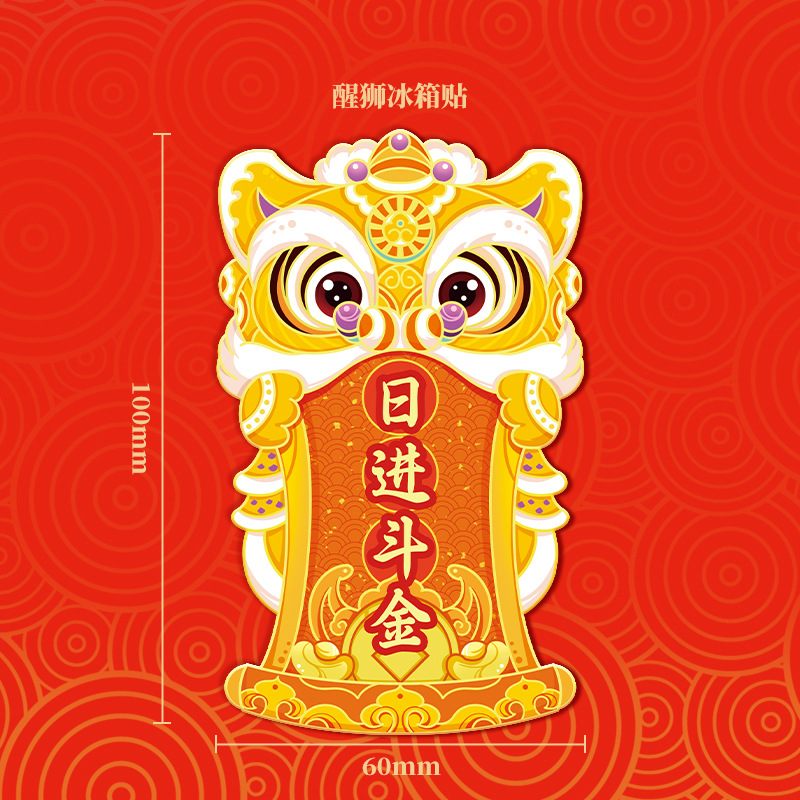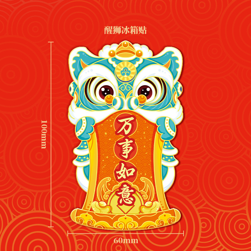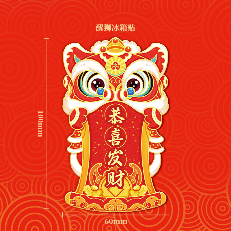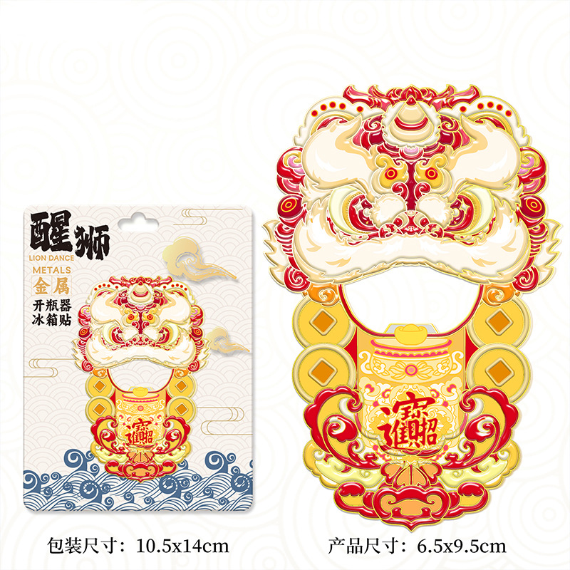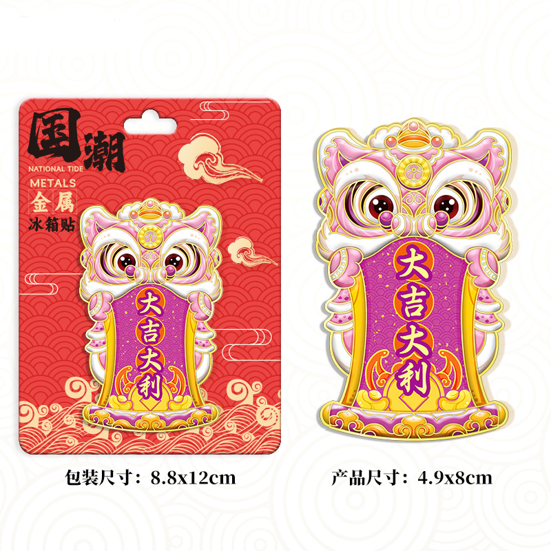 新年春节金属国潮醒狮祝福语喜庆文创家居舞狮装饰冰箱贴摆摊