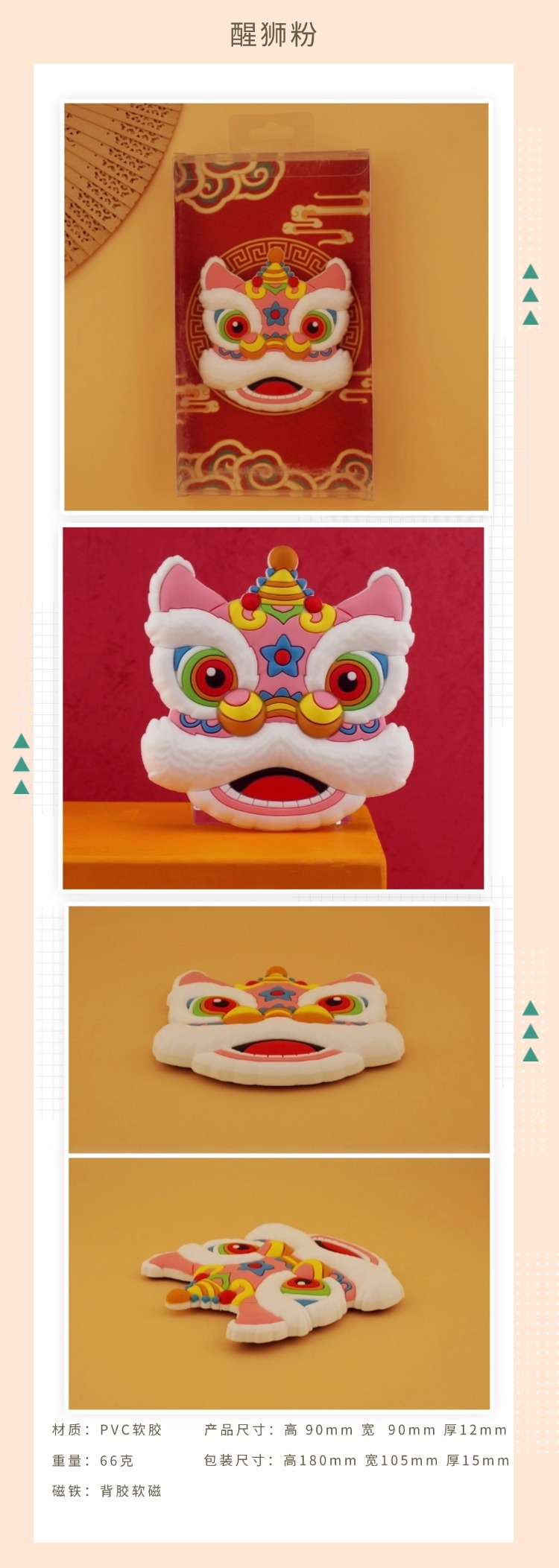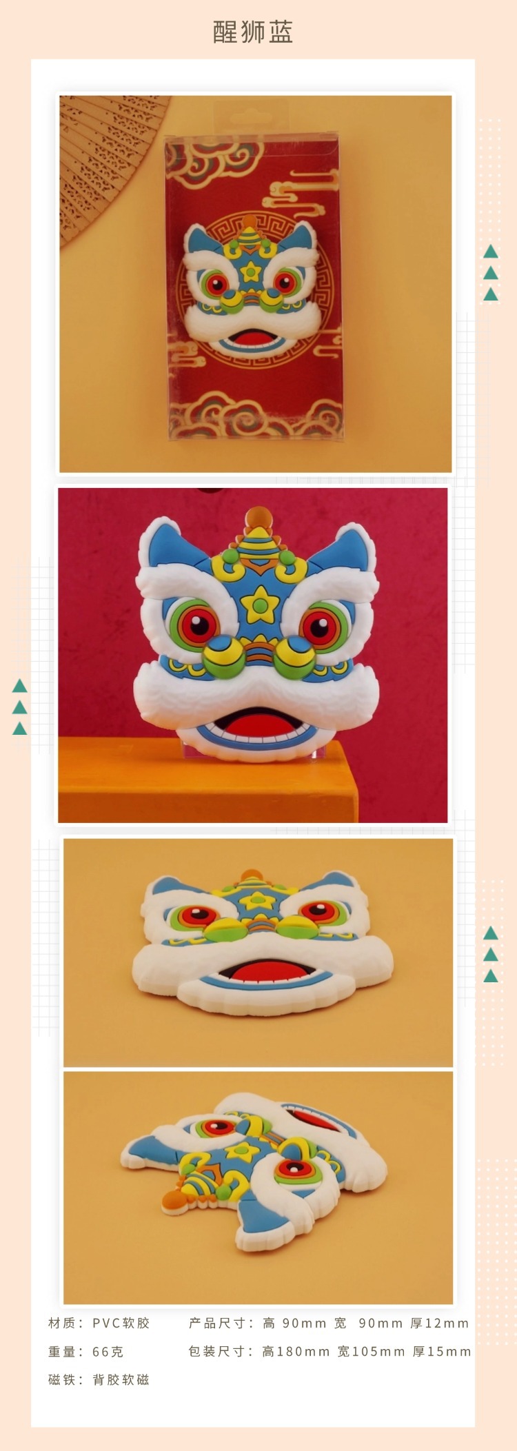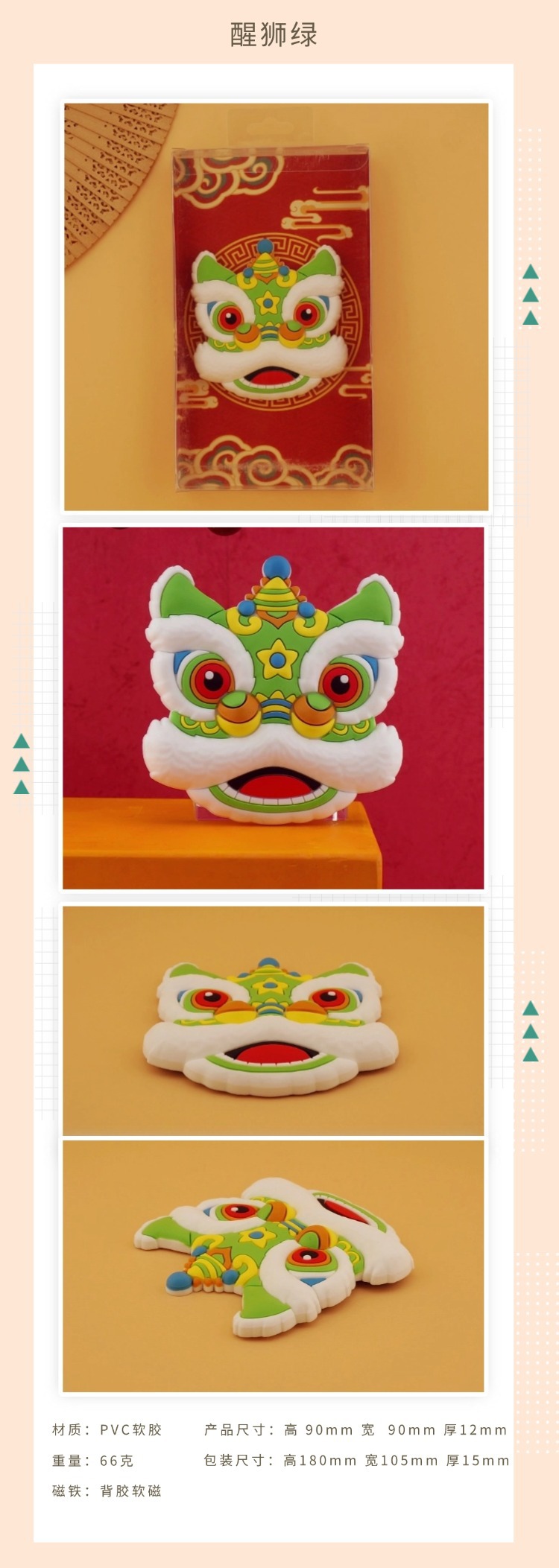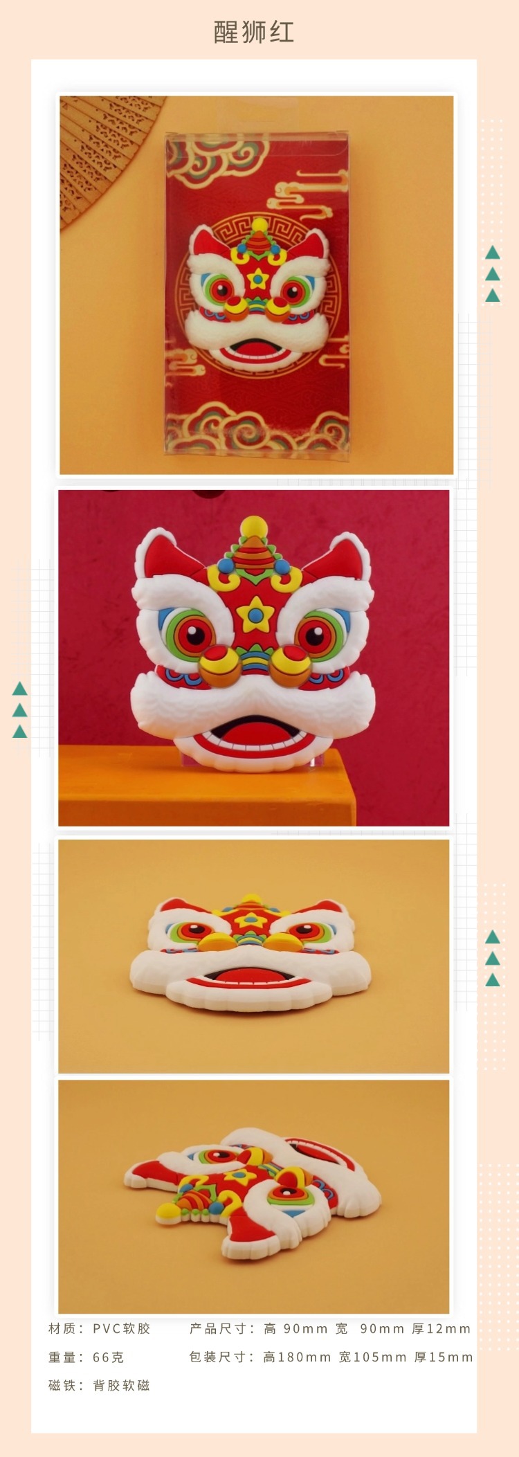 创意吉祥喜庆醒狮文创装饰春节过年特色礼物立体冰箱贴磁贴批发
