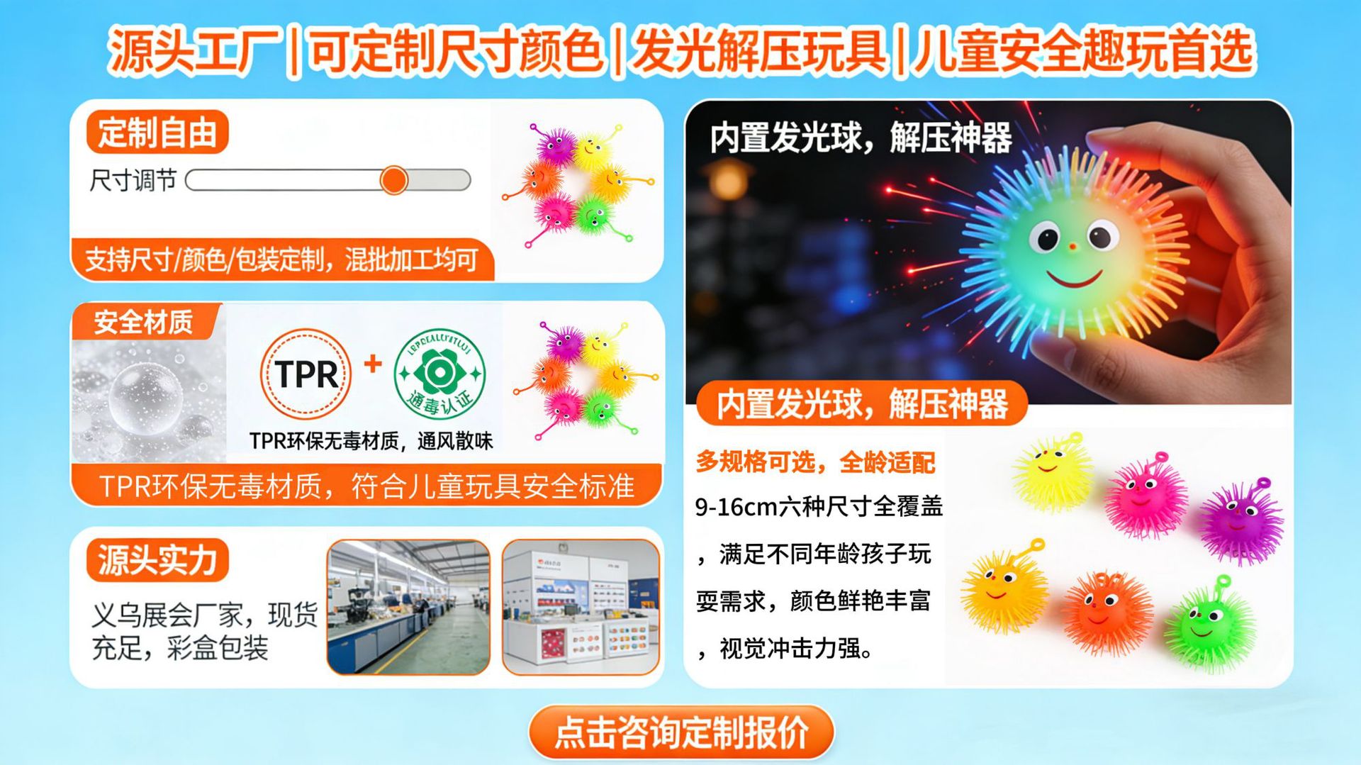 刺猬闪光毛毛球 弹力小丑发光解压玩具夜市摆摊 儿童减压益智玩具