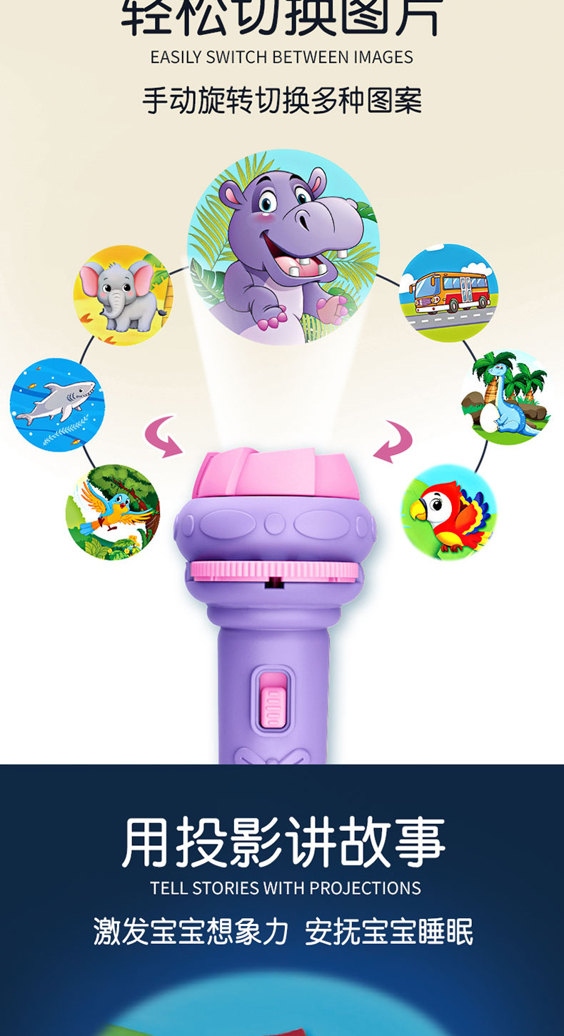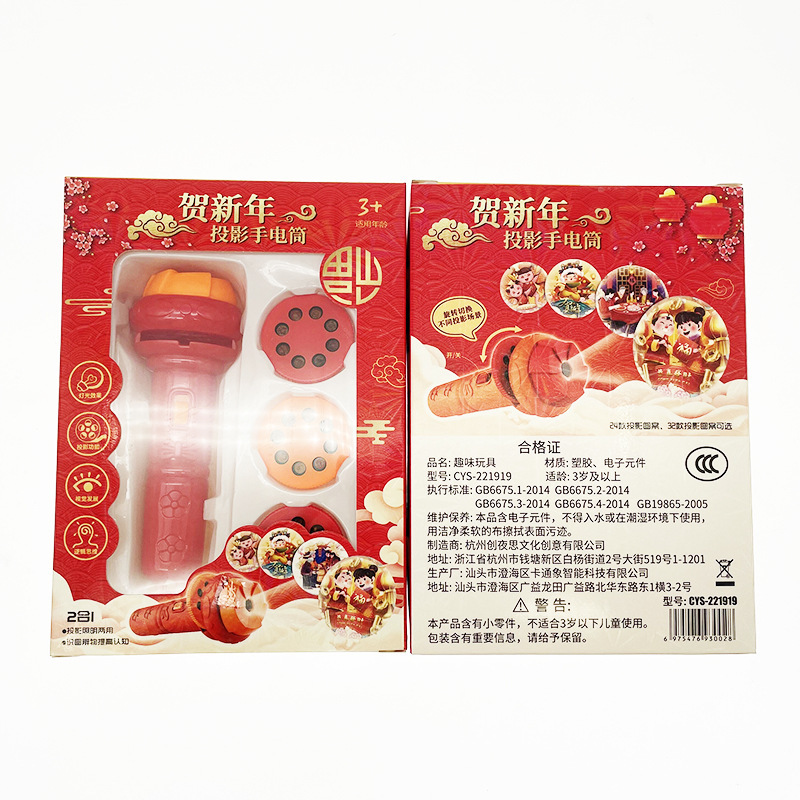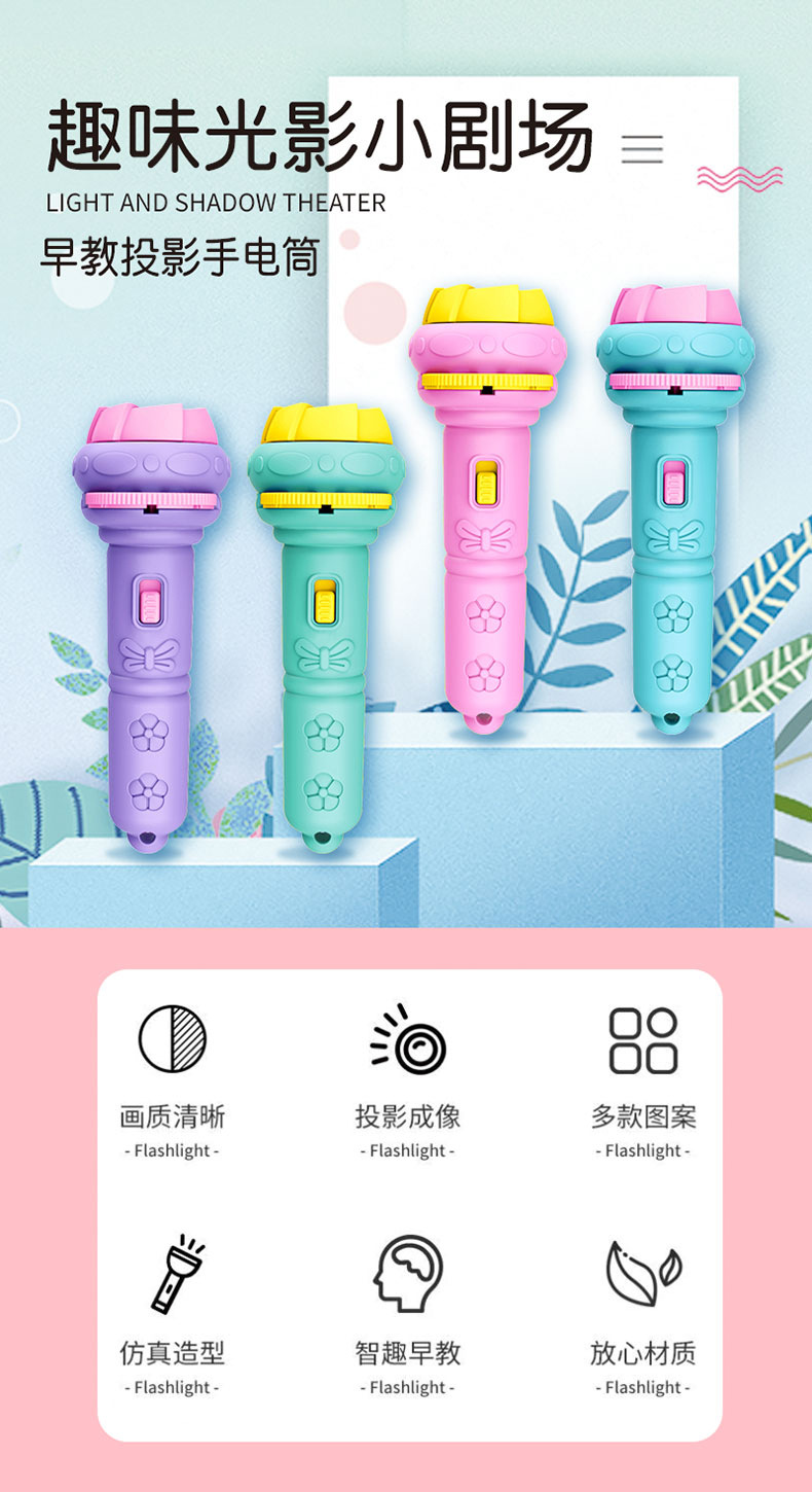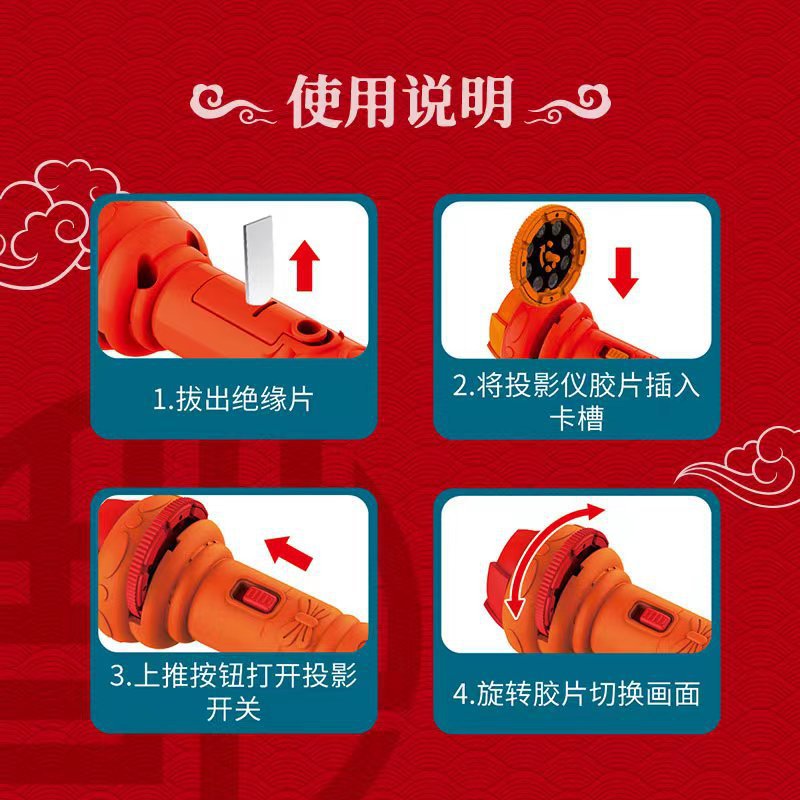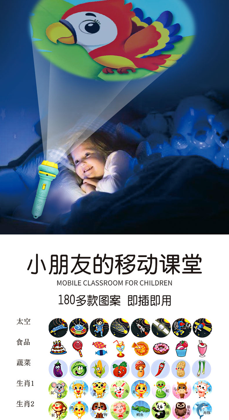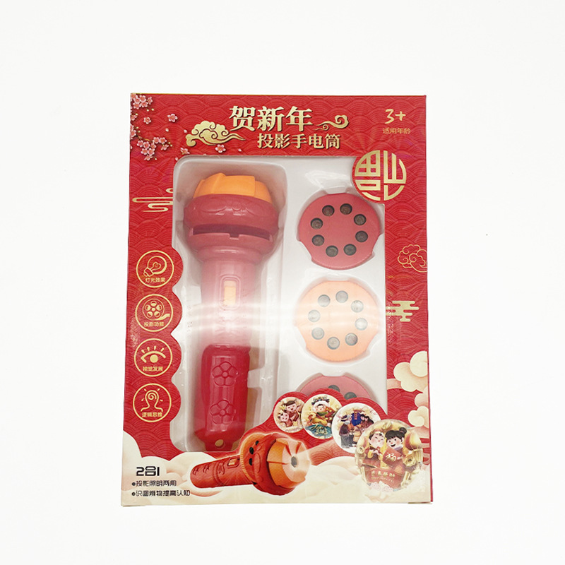 新年礼物春节儿童发光手电筒早教认知睡前玩具多种图案投影手电筒