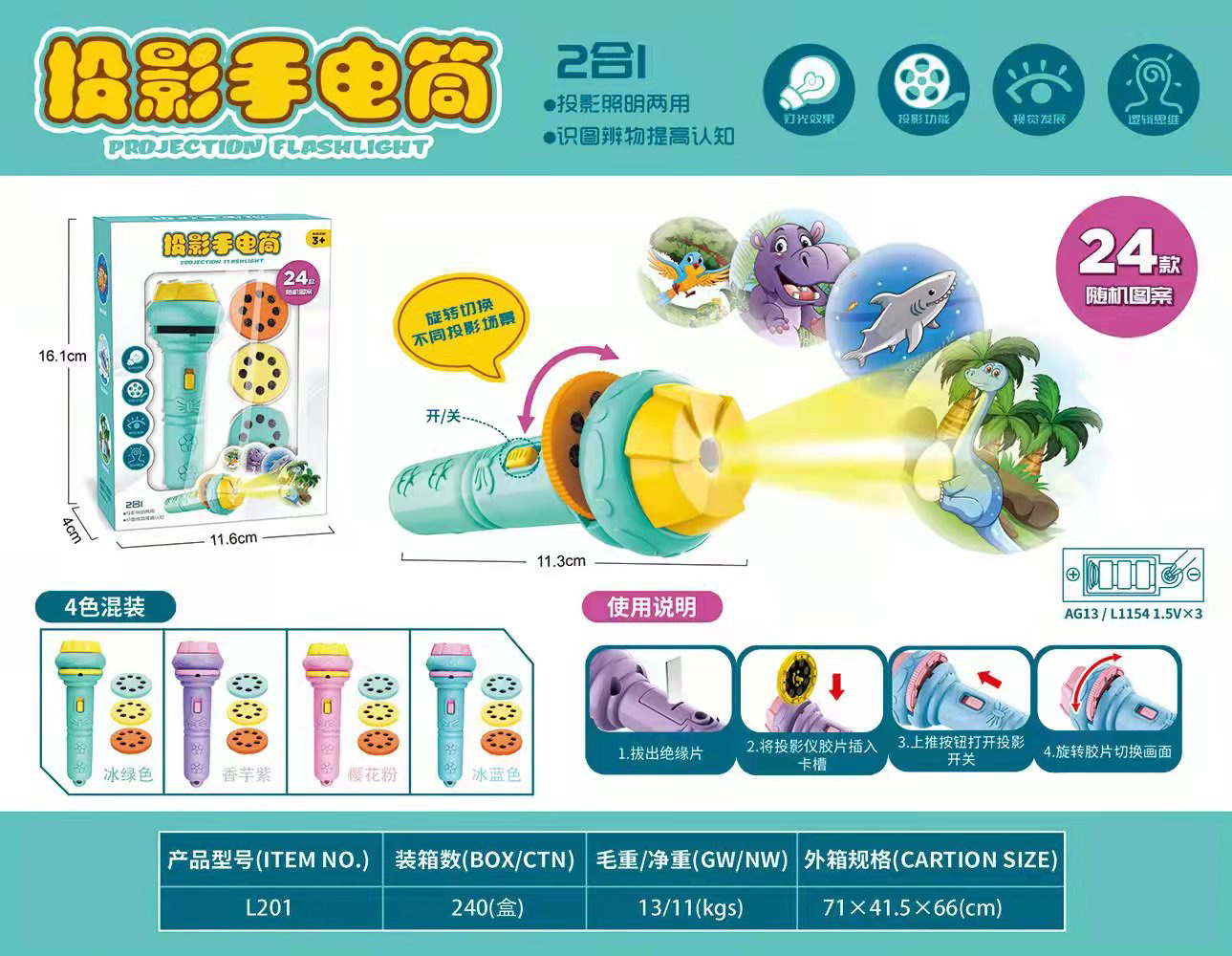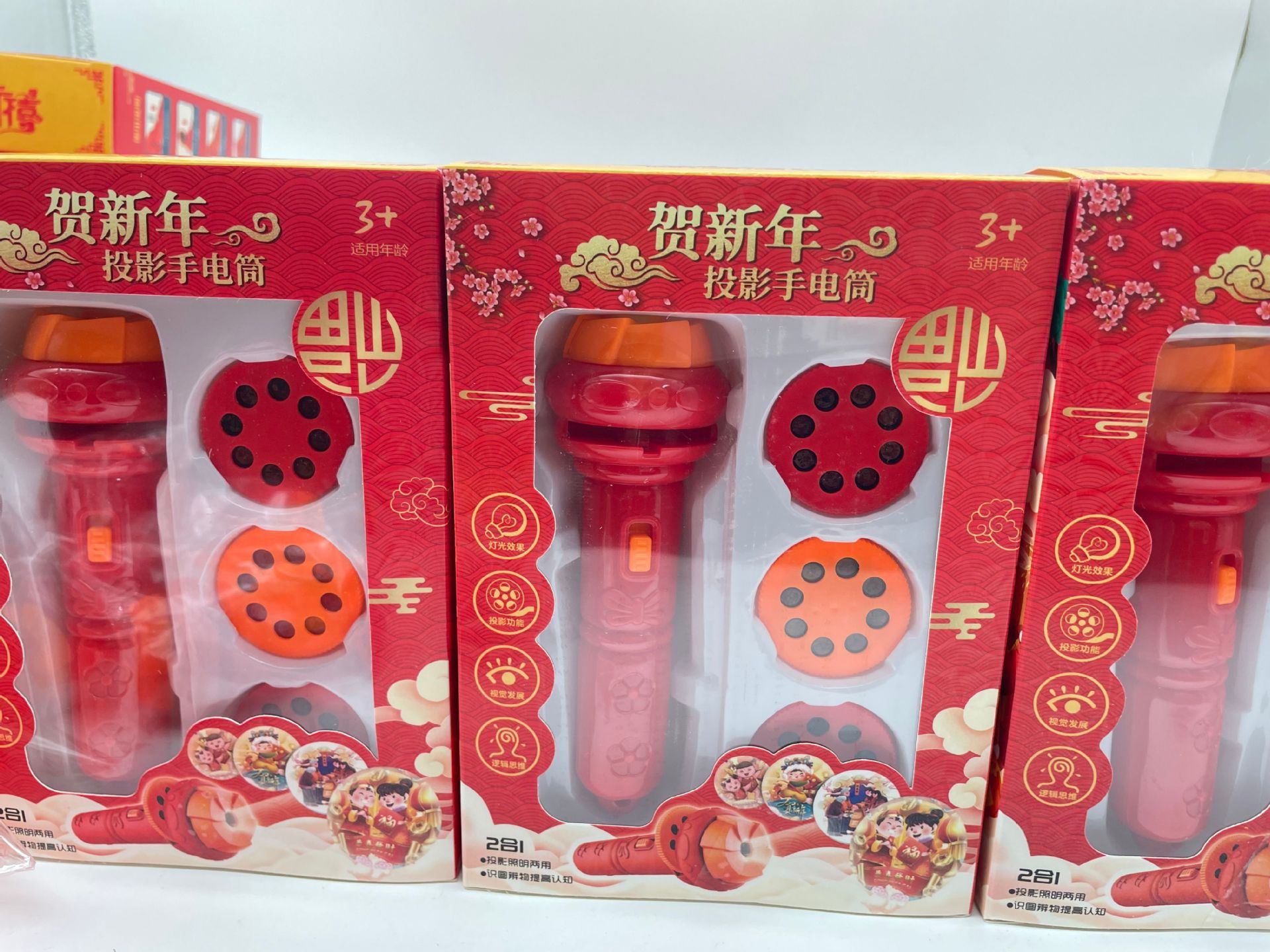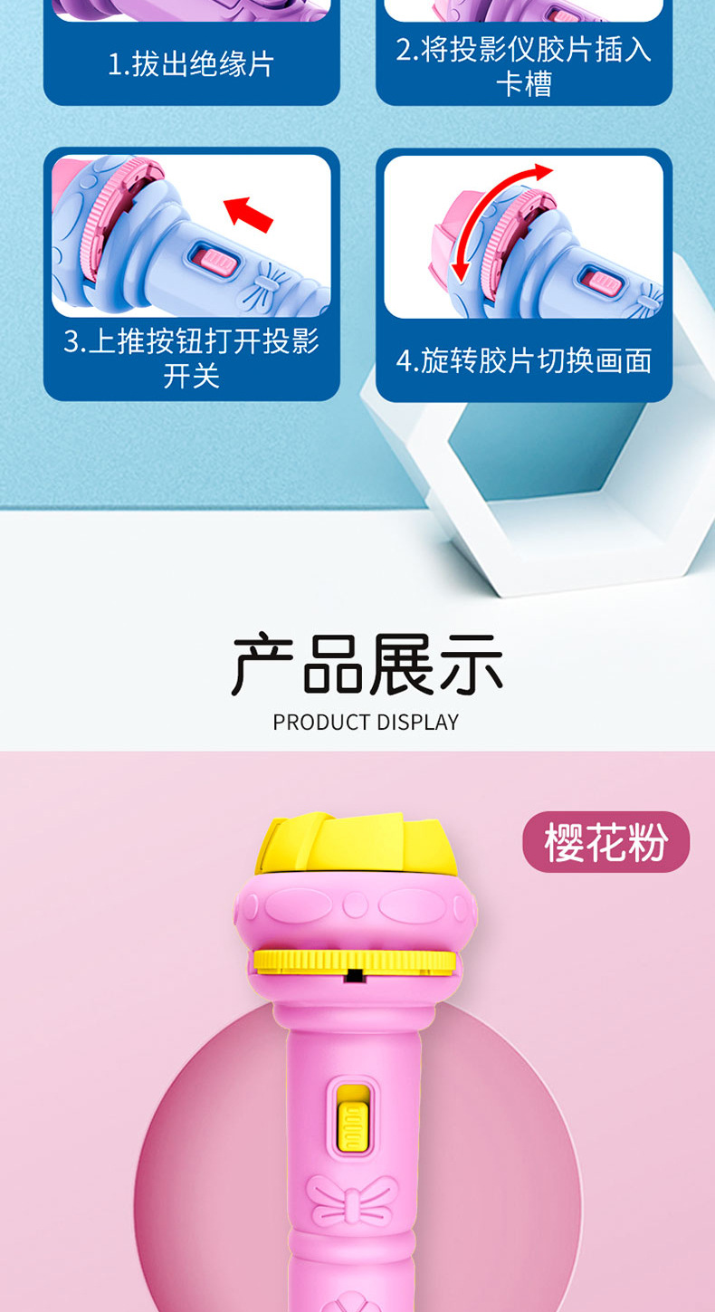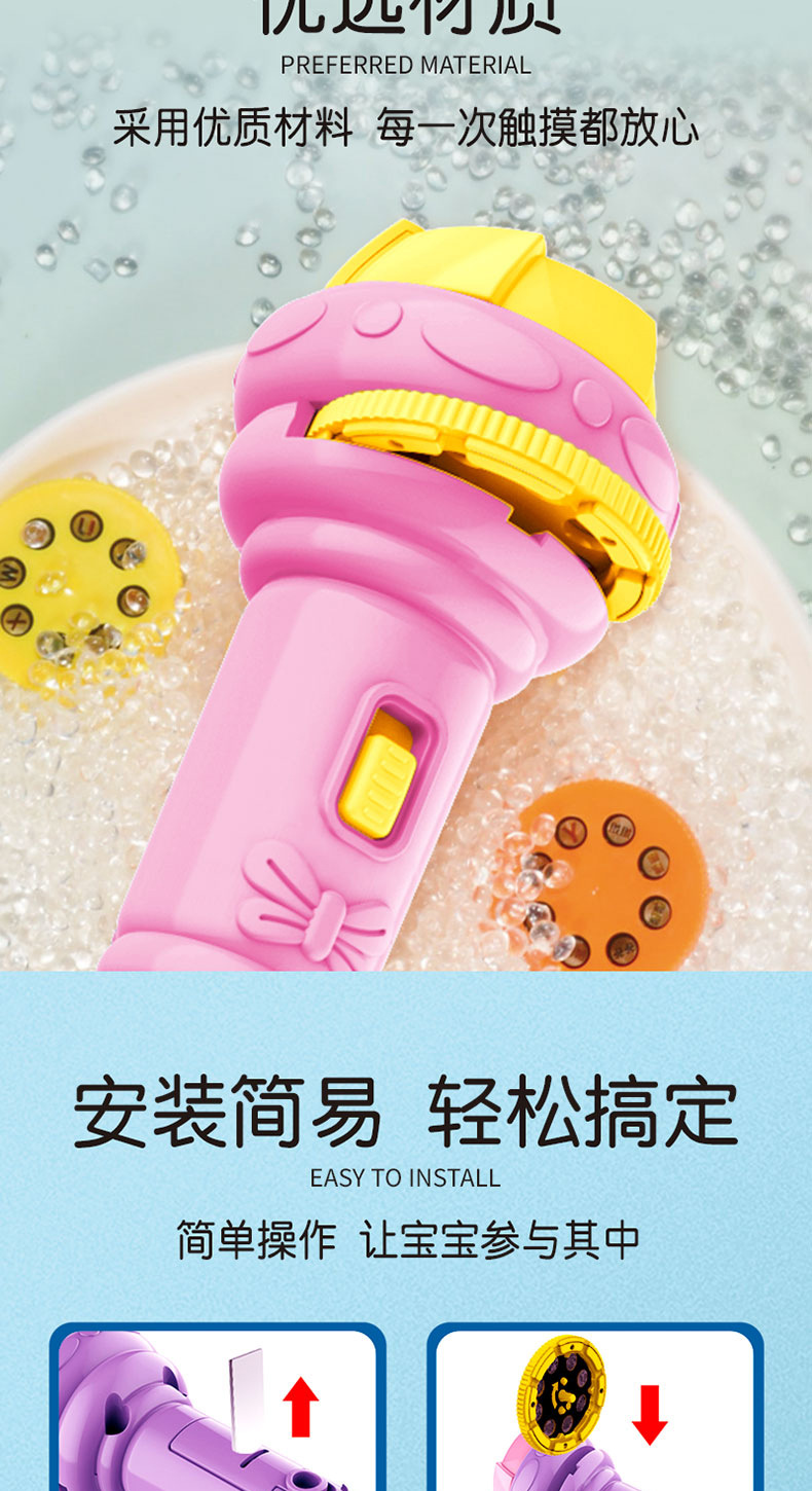 新年礼物春节儿童发光手电筒早教认知睡前玩具多种图案投影手电筒