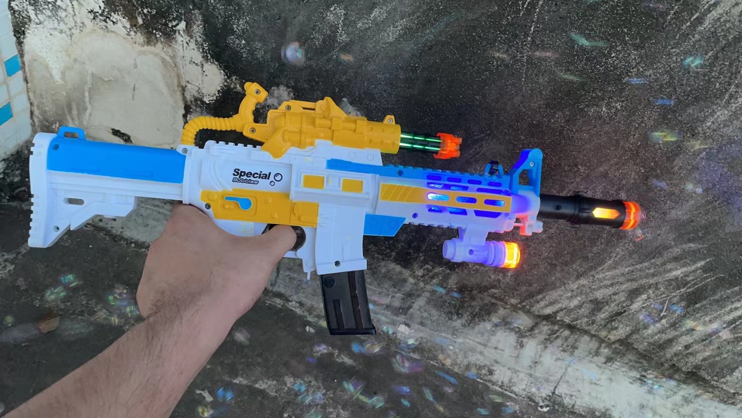 网红抖音泡泡枪电动发光音乐同款地摊广场夜市户外男女孩玩具
