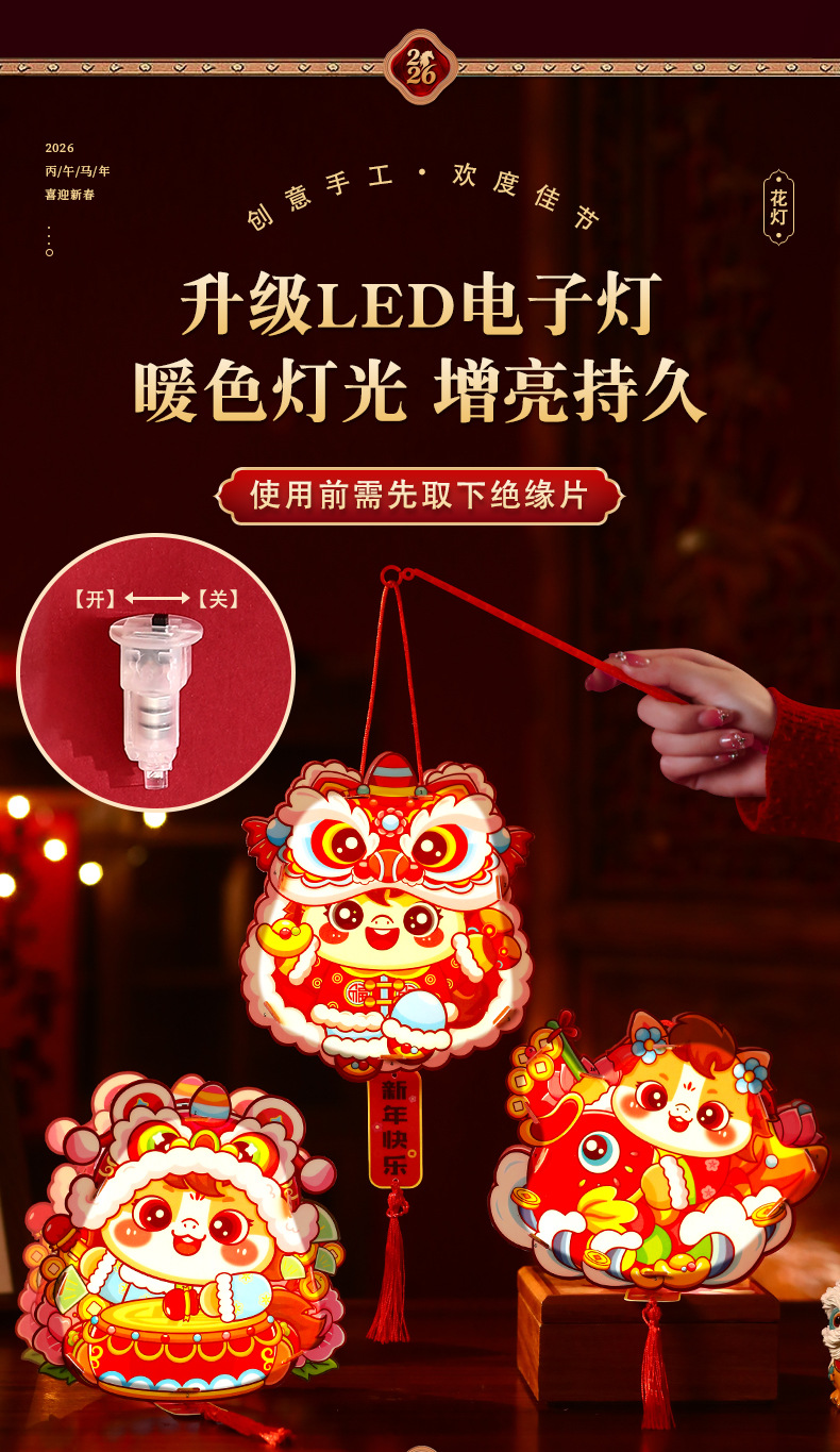 新年儿童手工diy马年发光灯笼材料包幼儿园新年节日礼物益智玩具