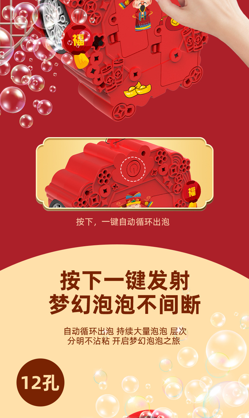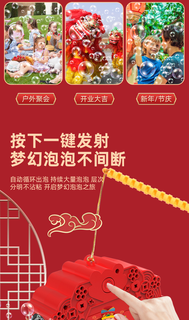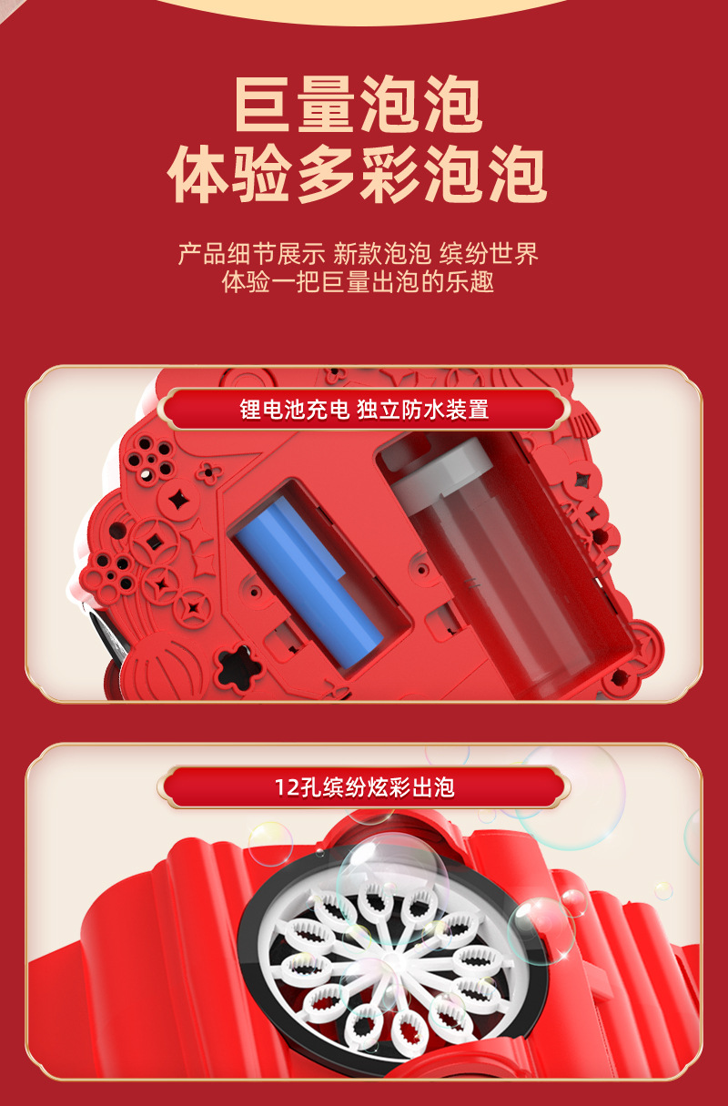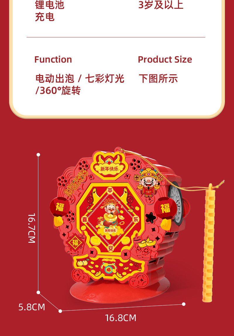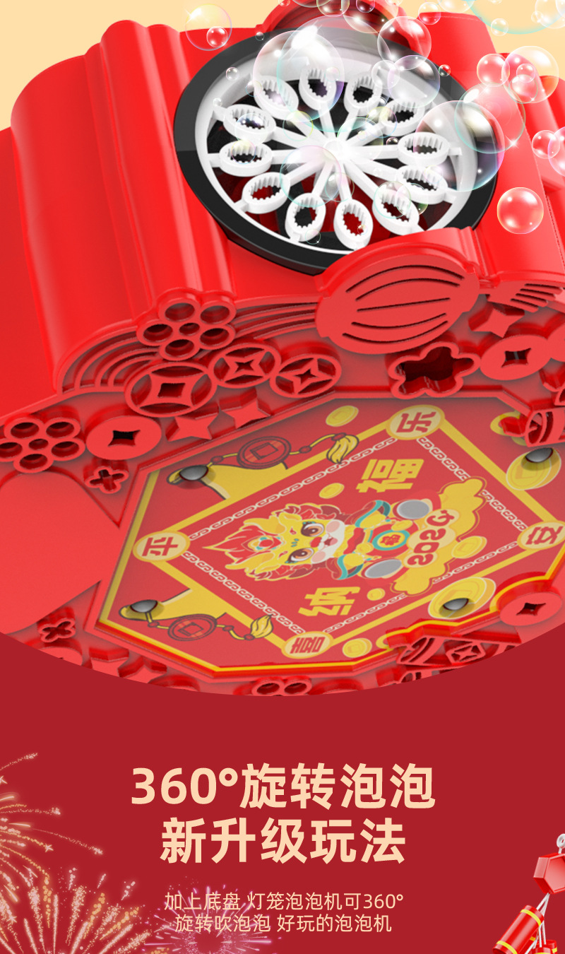 网红新年灯笼泡泡机鞭炮全自动旋转出泡发光春节氛围儿童玩具礼物