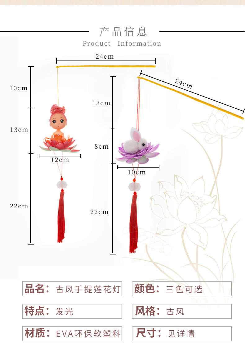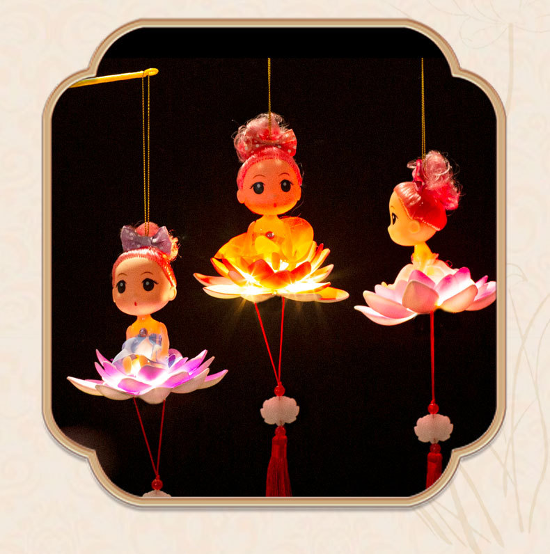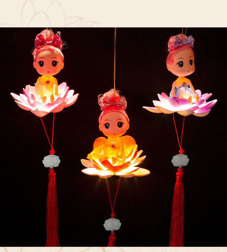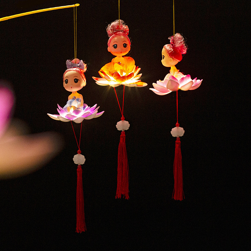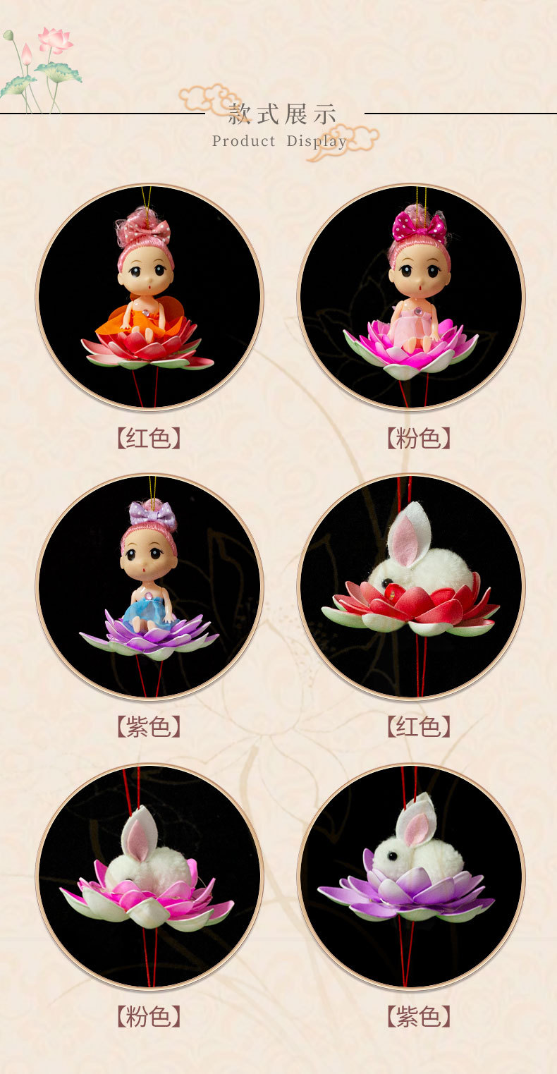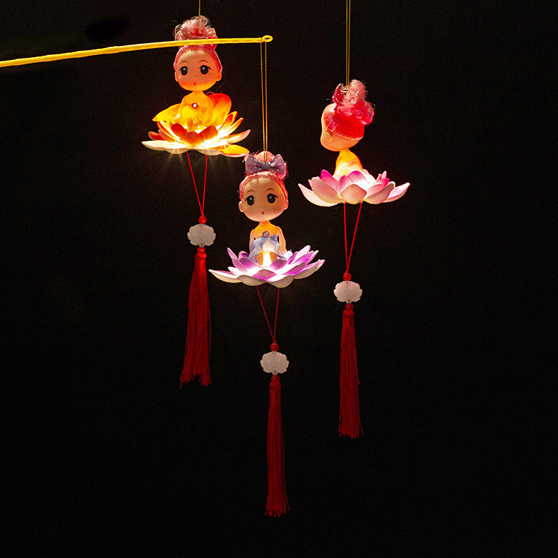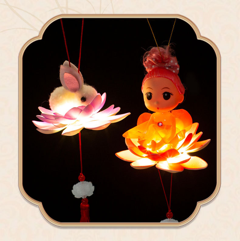 中秋节春节元宵手提荷花灯笼发光儿童卡通小灯笼夜市摆地摊小玩具