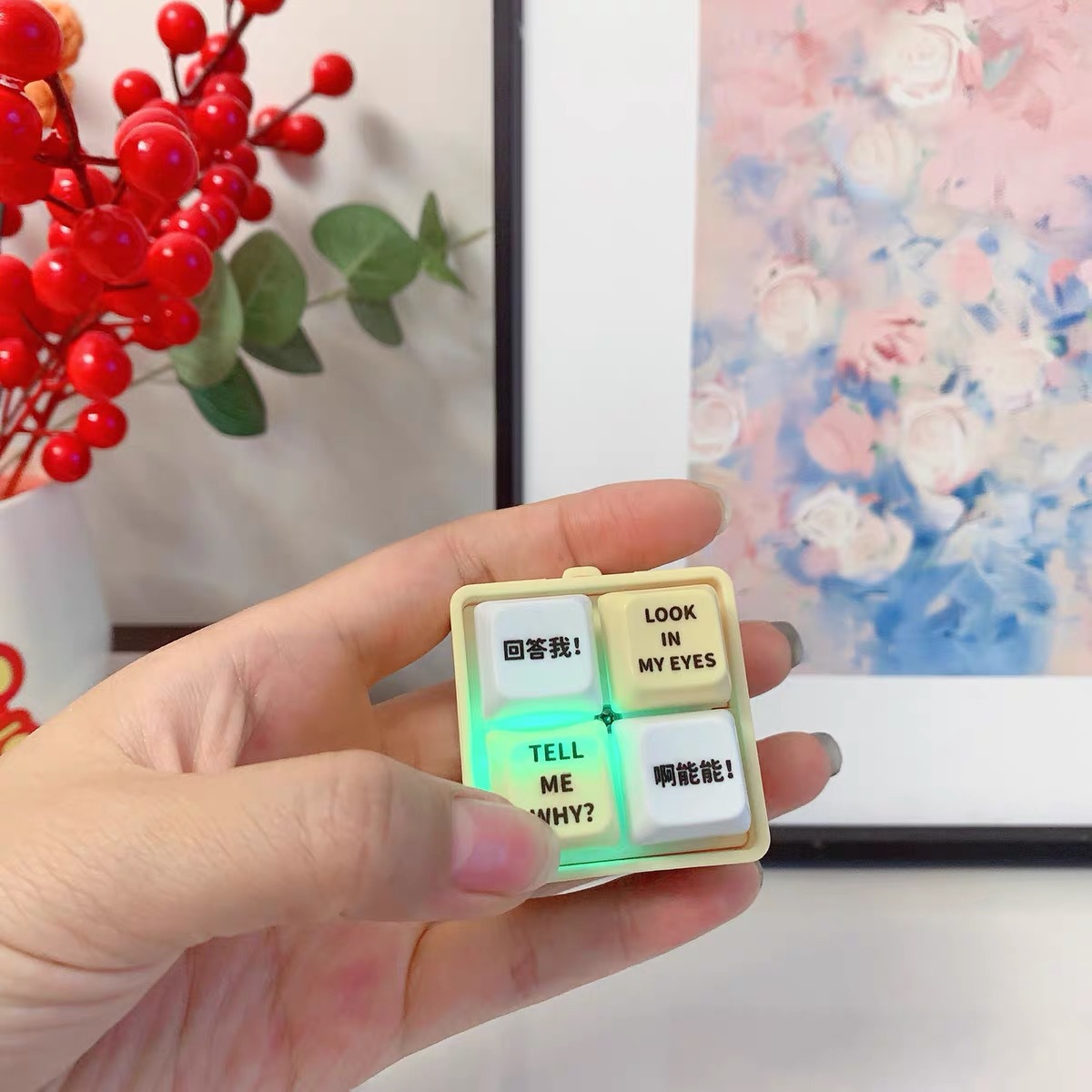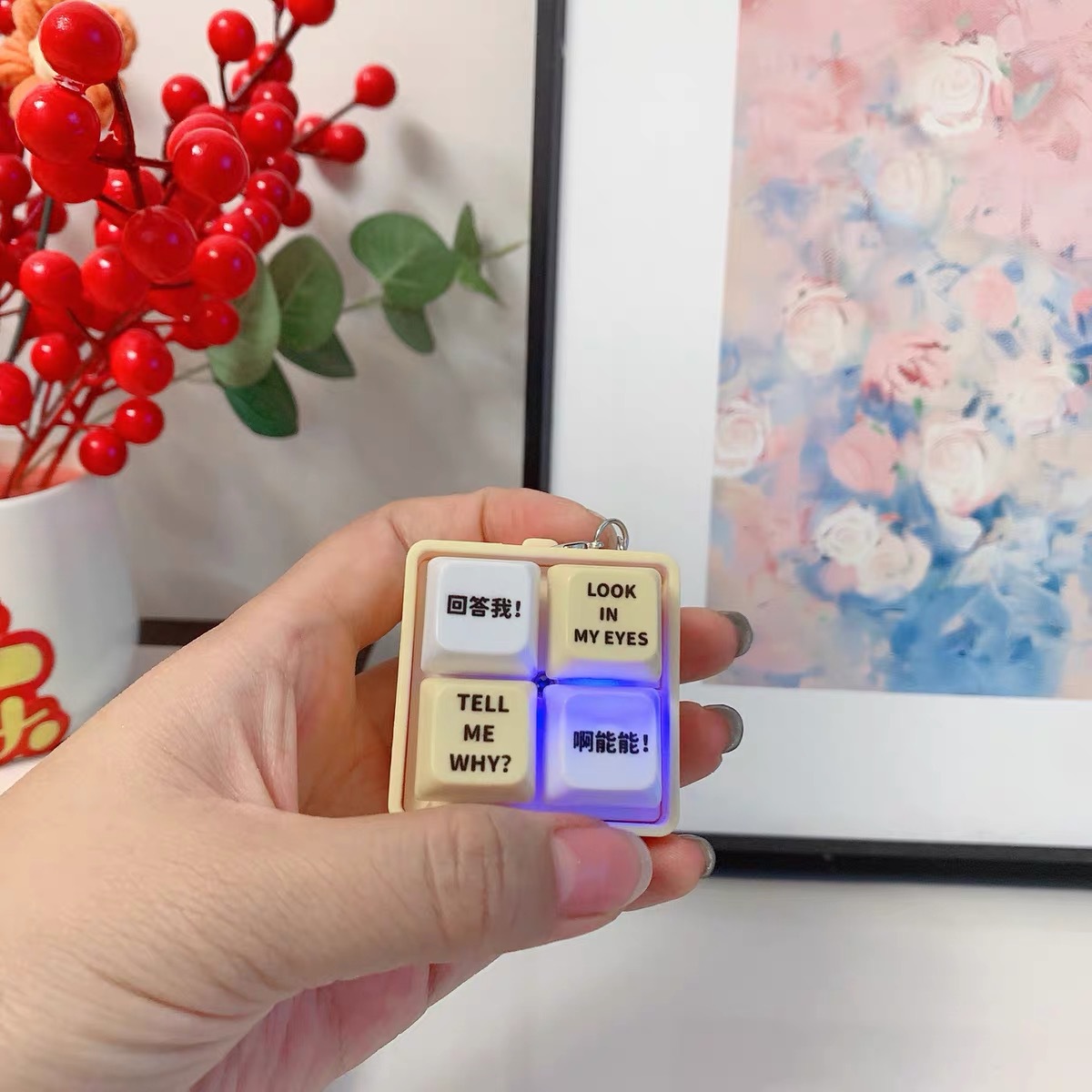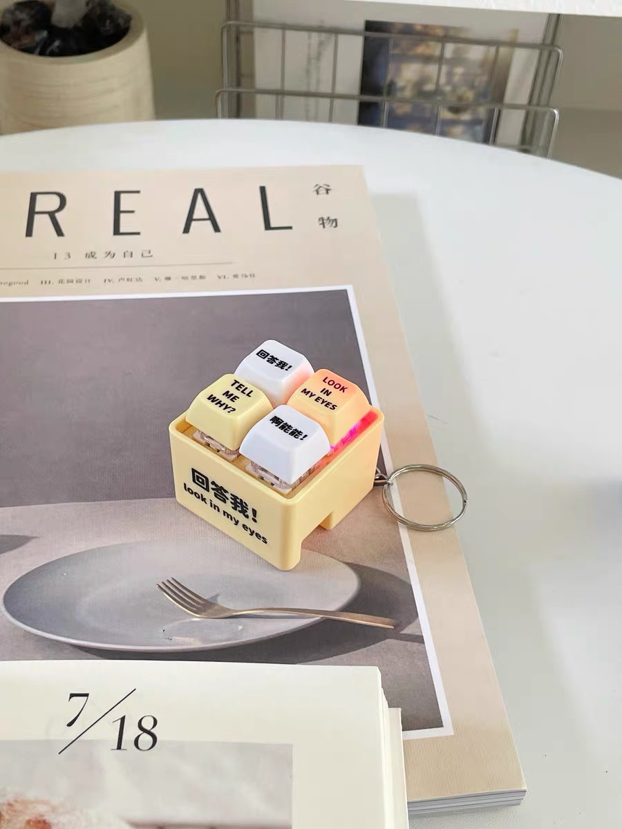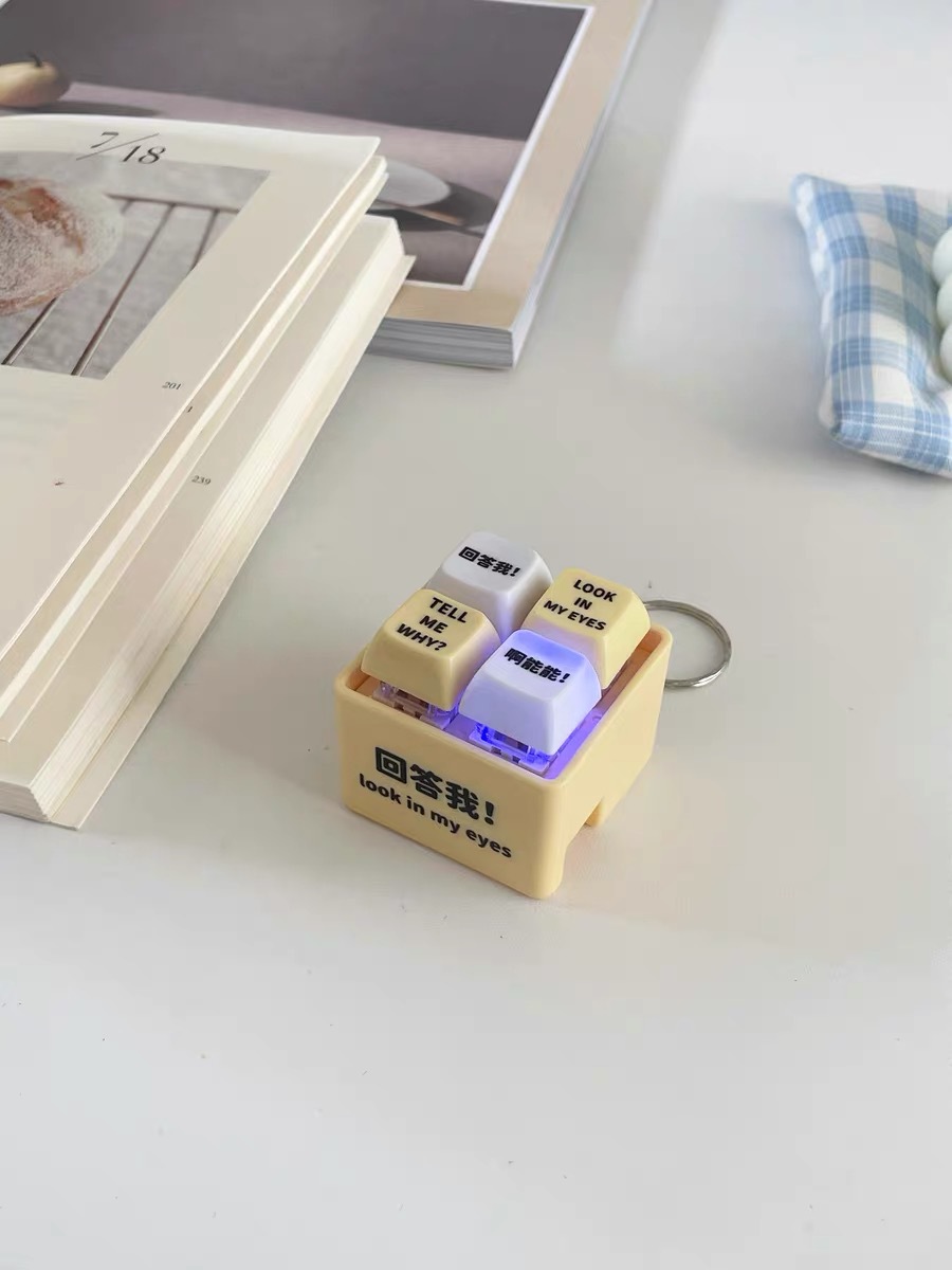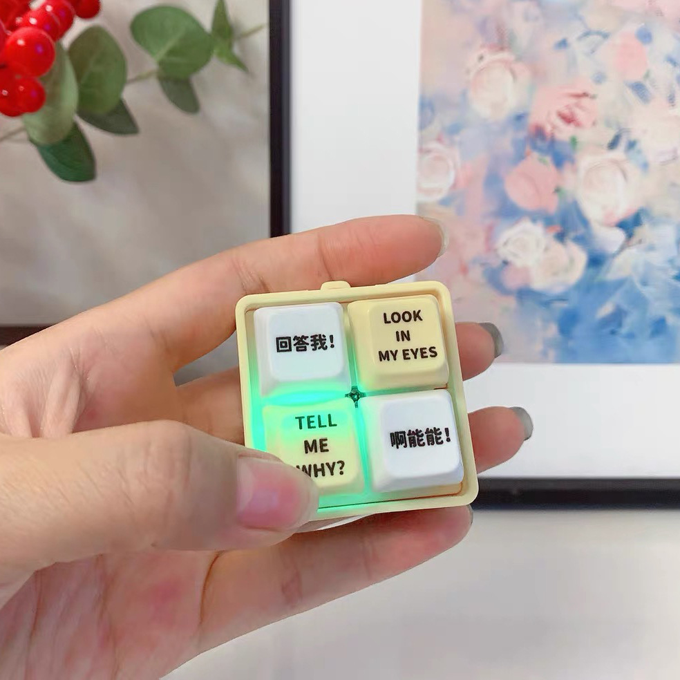 网红回答我发声玩具小明四宫格发光语音按键解压抖音爆款创意挂件