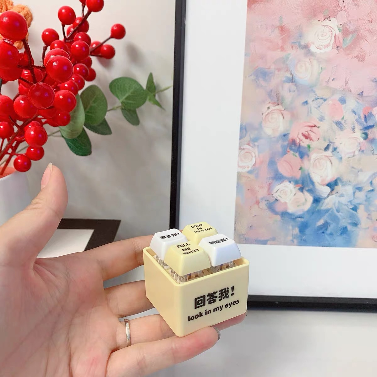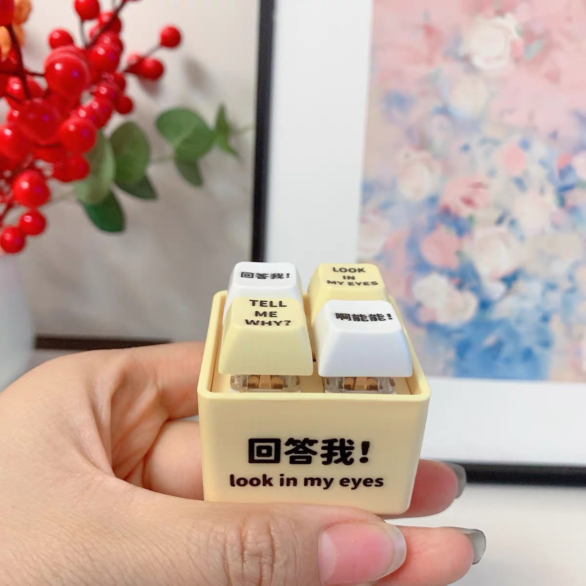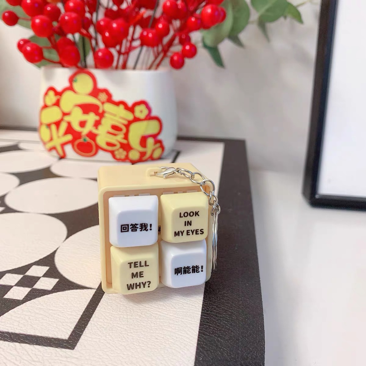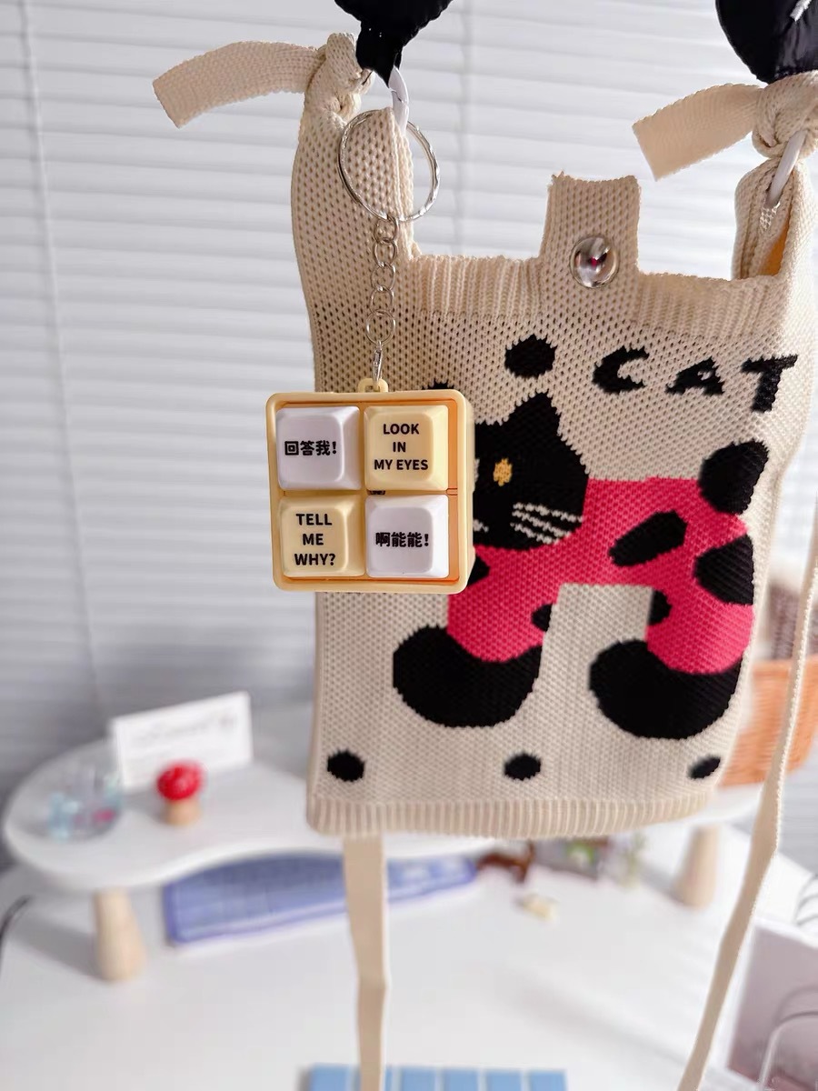 网红回答我发声玩具小明四宫格发光语音按键解压抖音爆款创意挂件