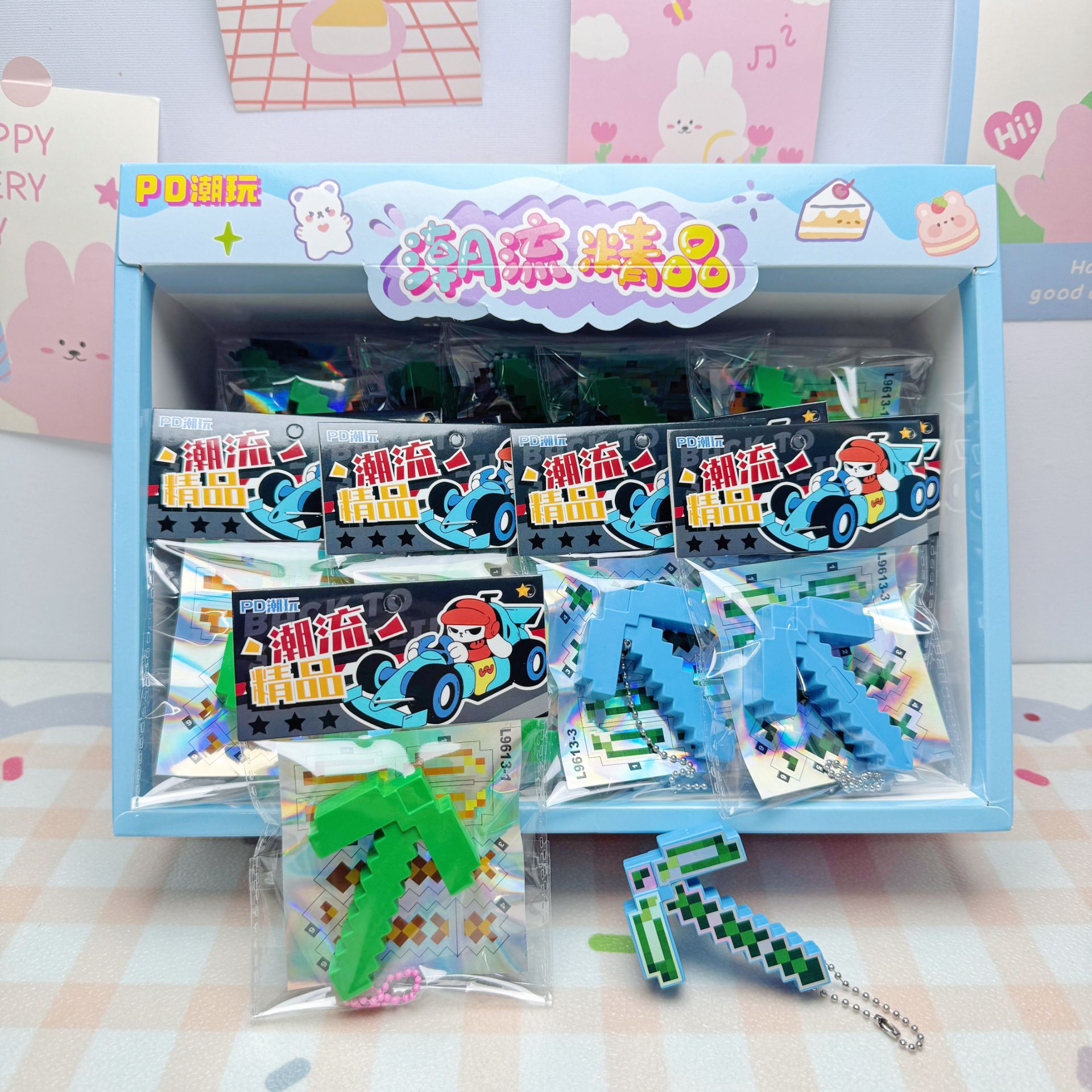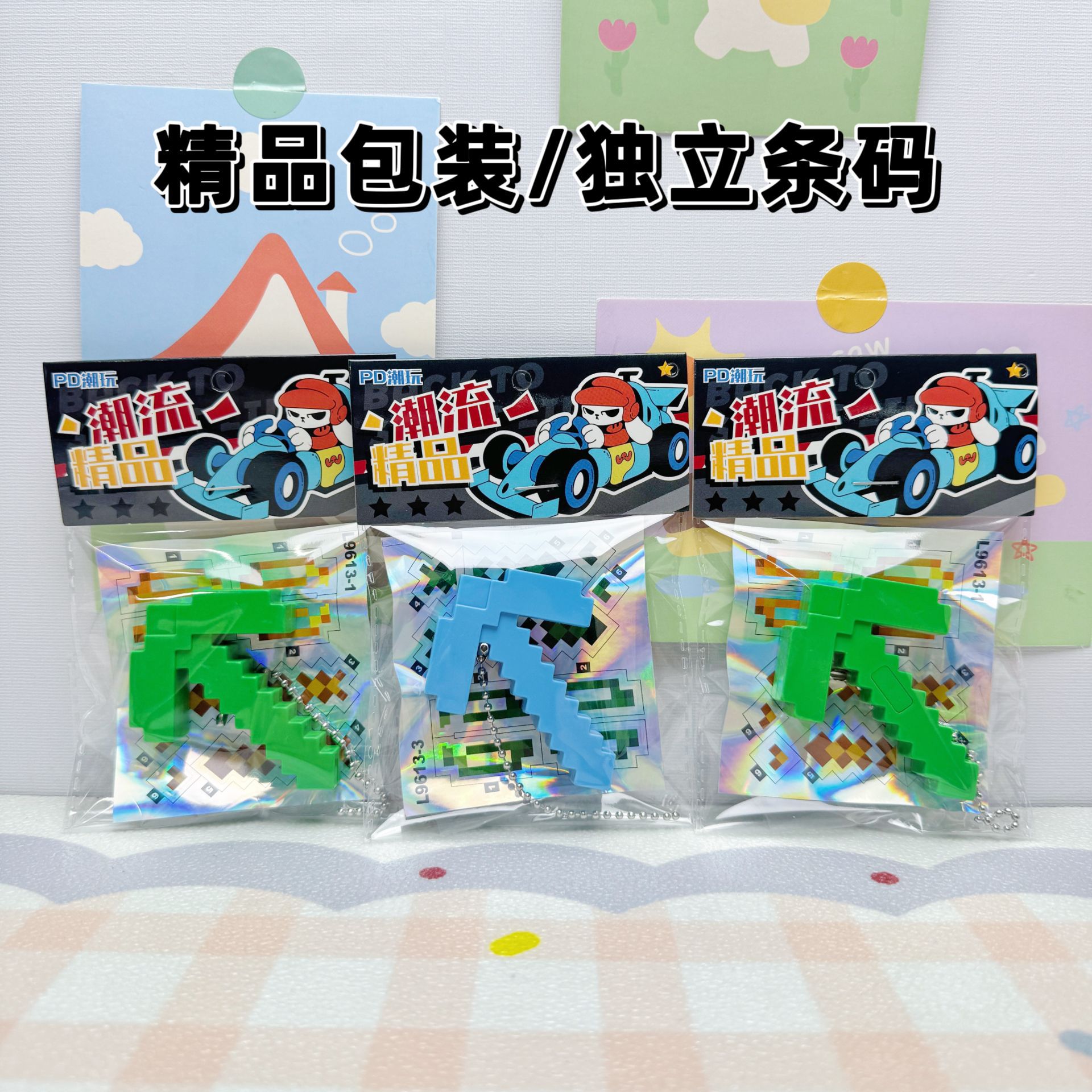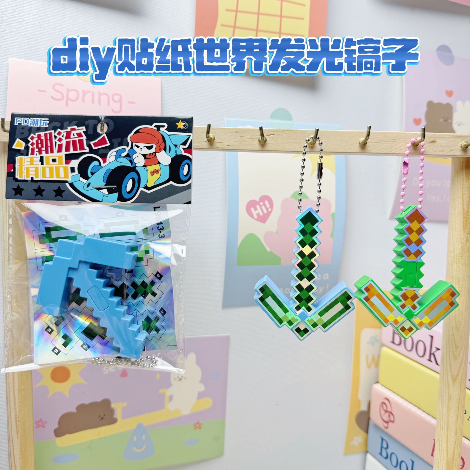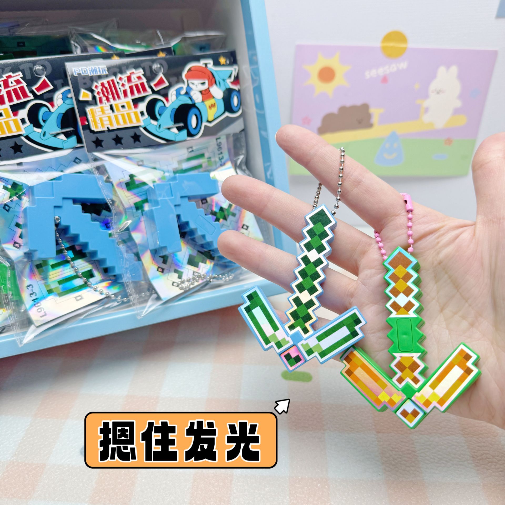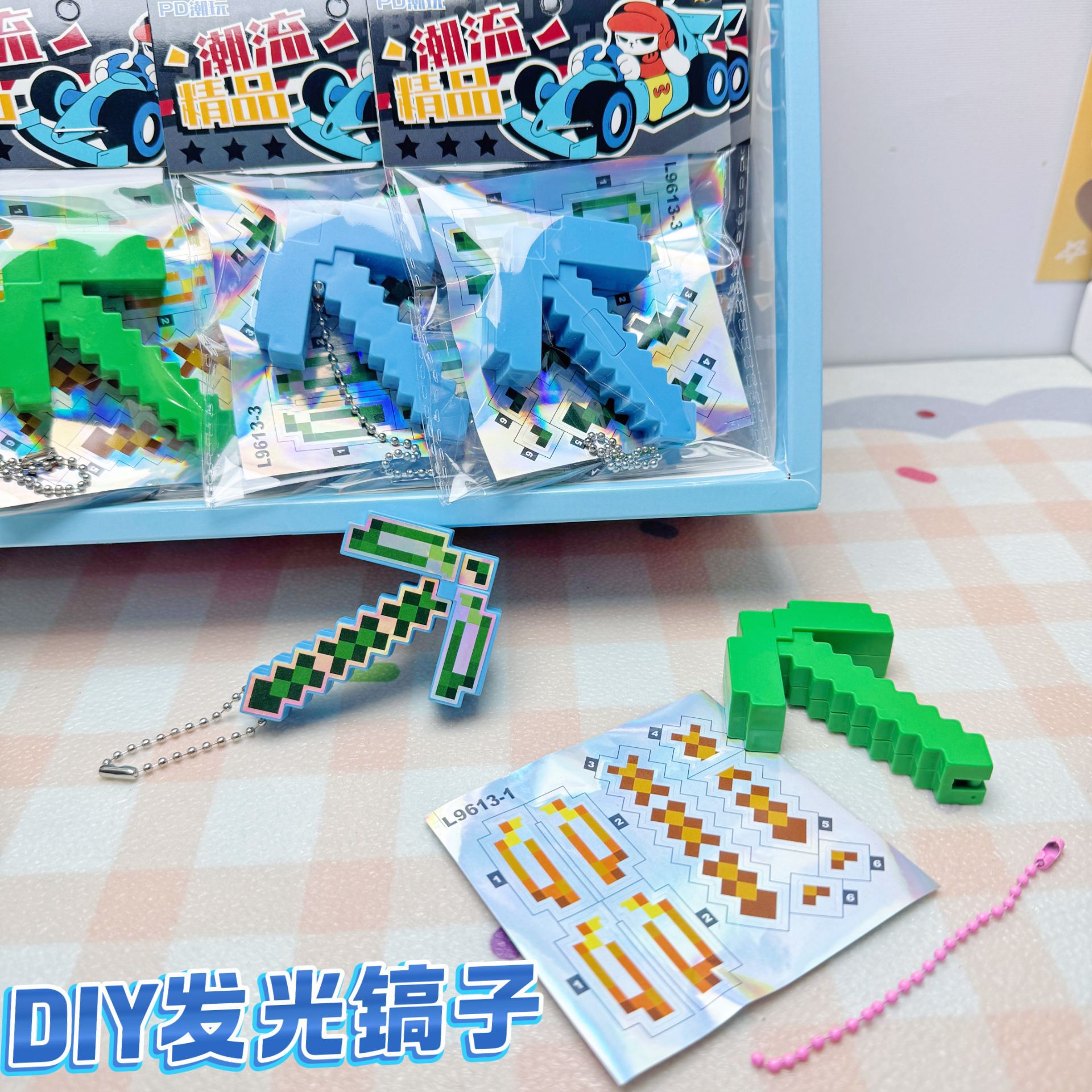 30入diy世界发光镐子挂件爆款网红游戏周边带灯儿童玩具书包装饰