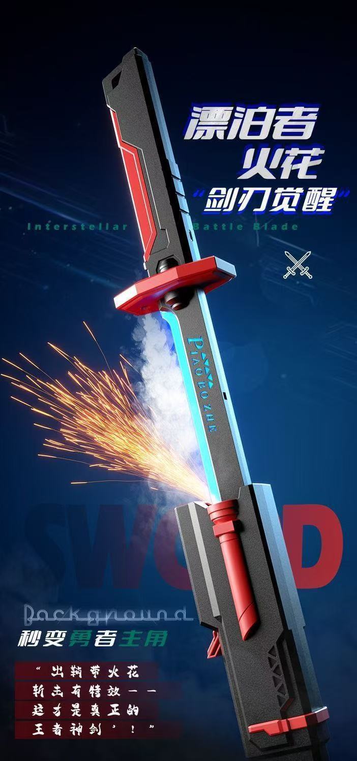 抖音网红爆款火花光剑带灯光喷雾星际火花战刀战刃新奇特儿童玩具