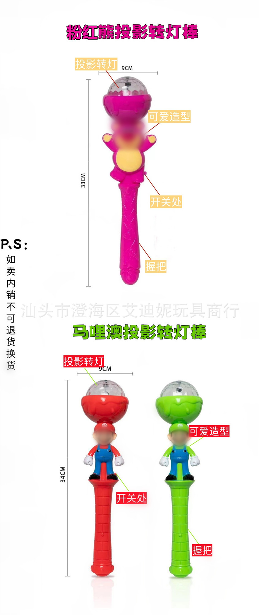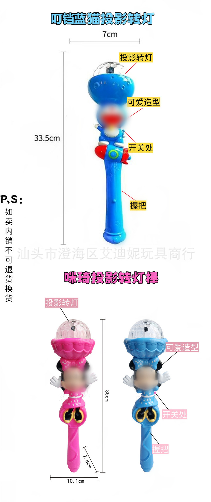 跨境新款发光发亮闪光棒儿童声光投影卡通棒玩具夜市广场地摊景区