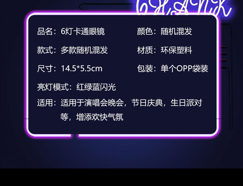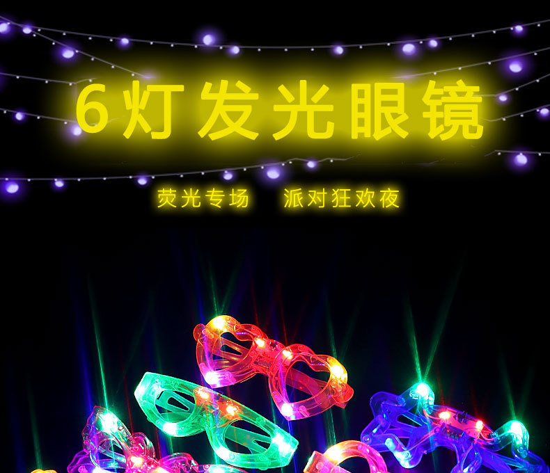 网红新品跨境热卖LED发光眼镜 闪光六灯眼镜 新款儿童6灯眼镜玩具