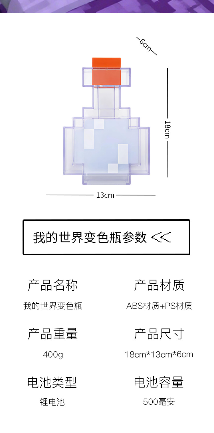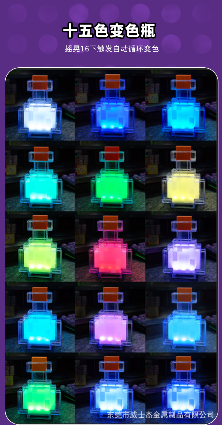 跨境爆款我的世界十五色变光药水瓶发光玩具儿童玩具爆款网红中秋