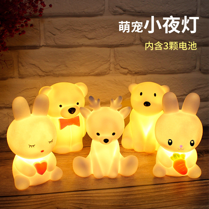 定制LED搪胶小夜灯卡通ins夜市地摊套圈货源批发儿童发光玩具台灯