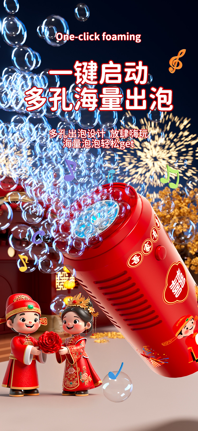 新款烟花泡泡机婚礼自动吹泡泡网红爆款玩具发光道具气氛儿童礼品