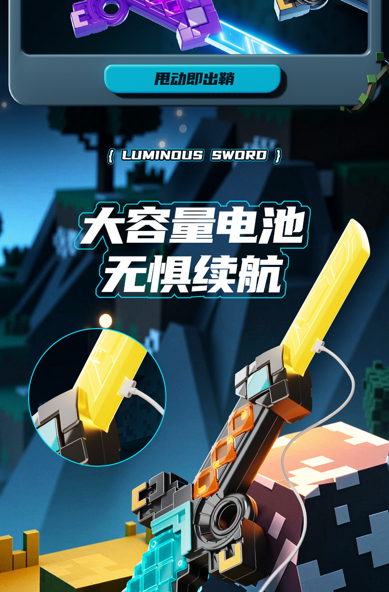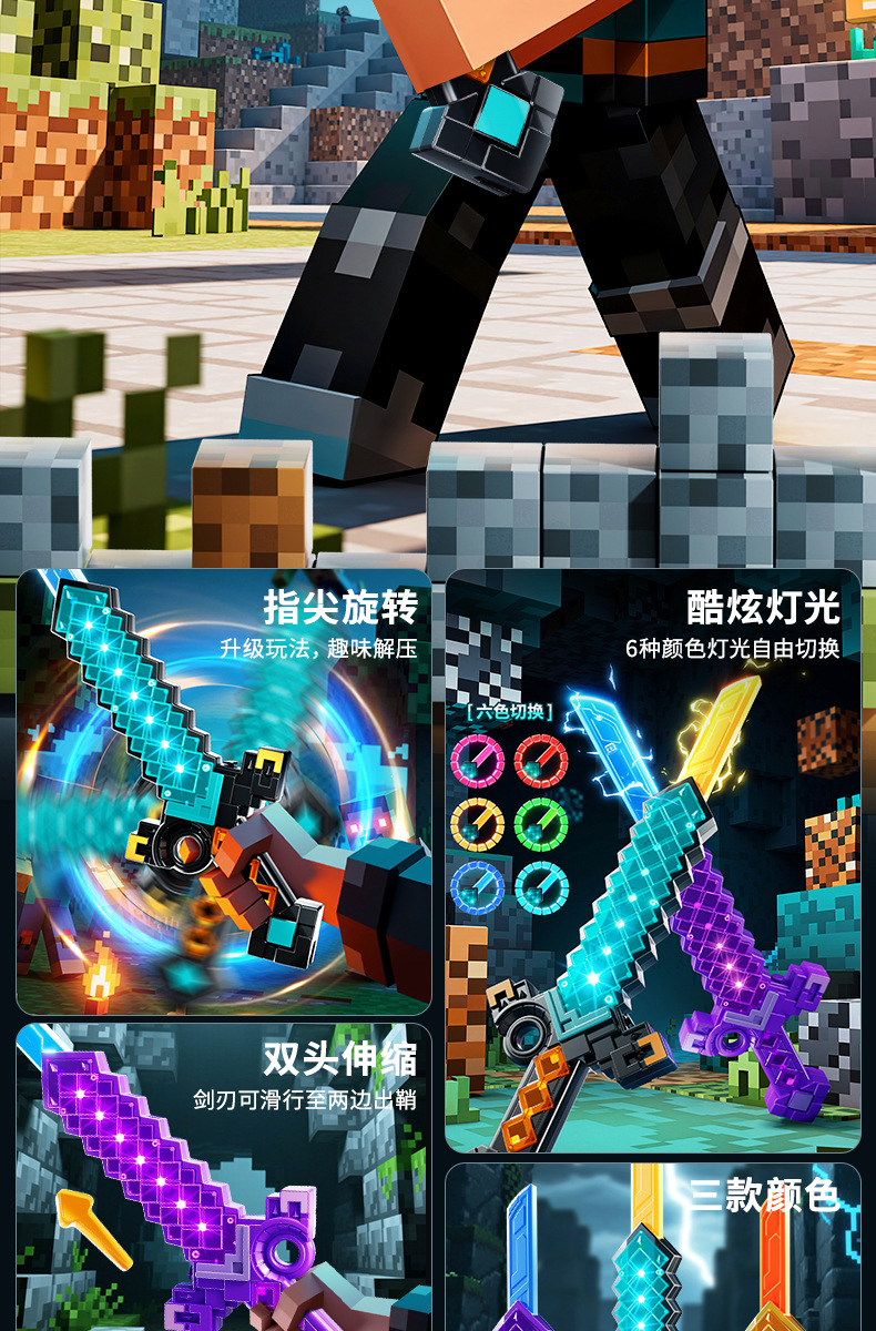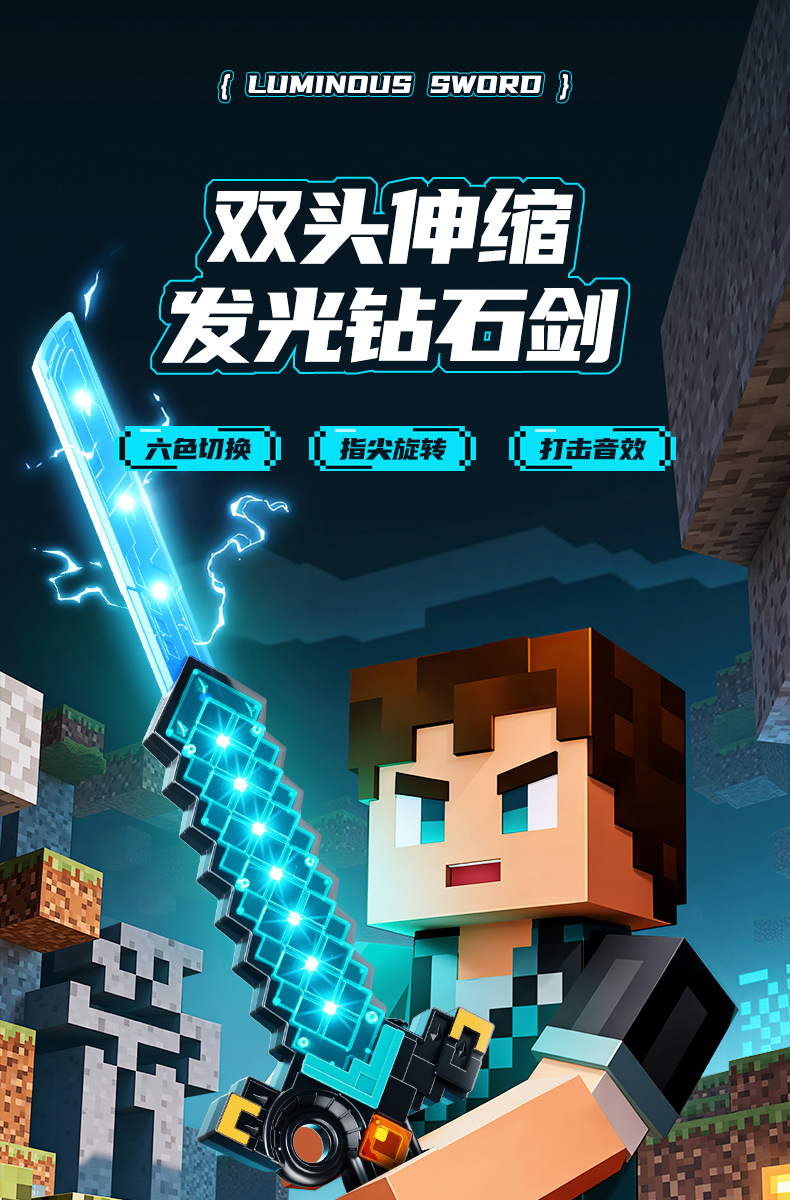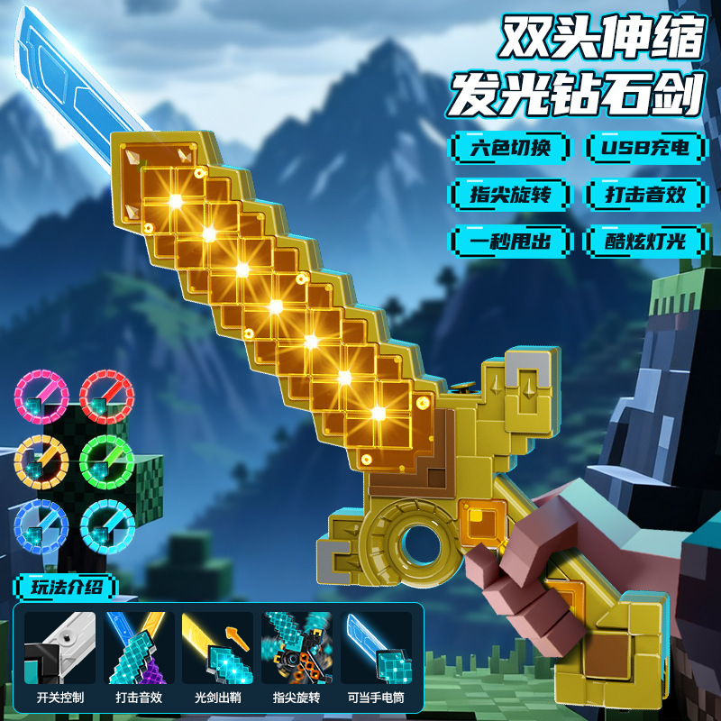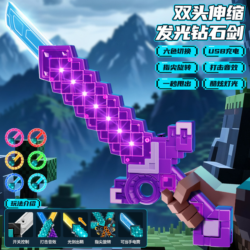 我的双刃伸缩钻石刀世界儿童武器玩具发光光剑玩具爆款网红批发