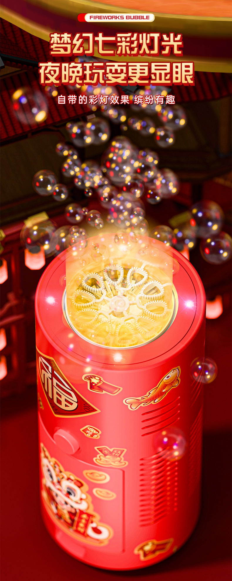 抖音同款儿童户外鞭炮泡泡机自动仿吹泡泡网红爆款玩具发光氛围感
