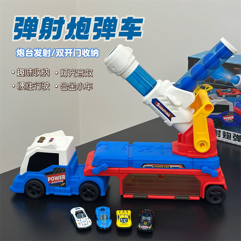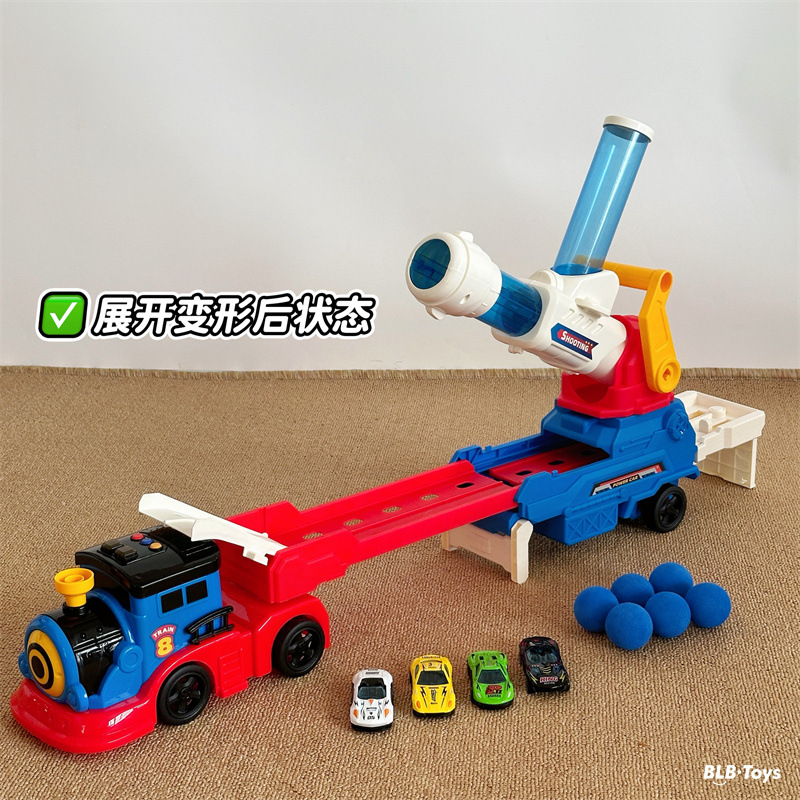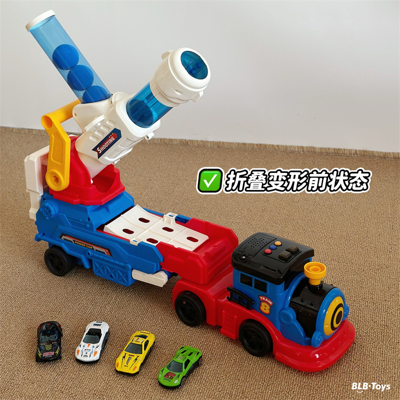 儿童益智弹射炮弹轨道火车变形可折叠大卡车合金小车玩具礼物