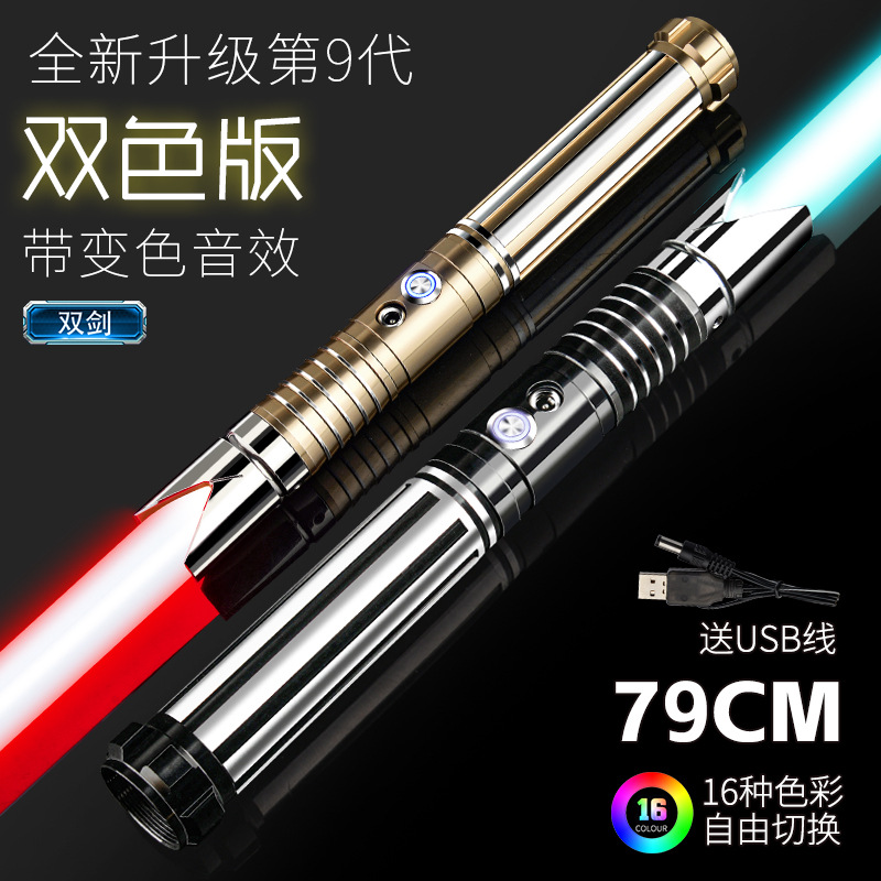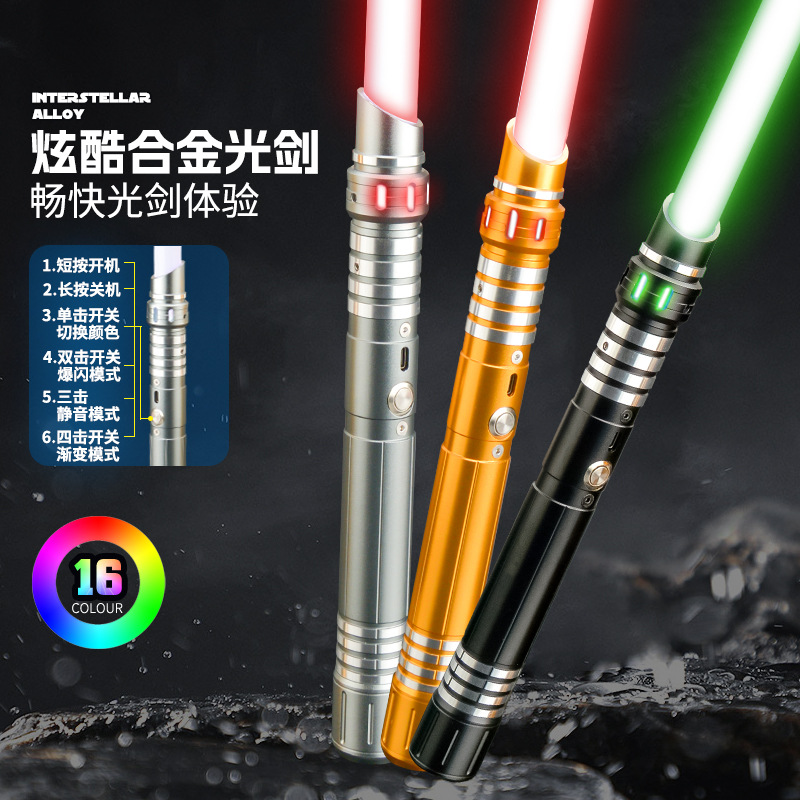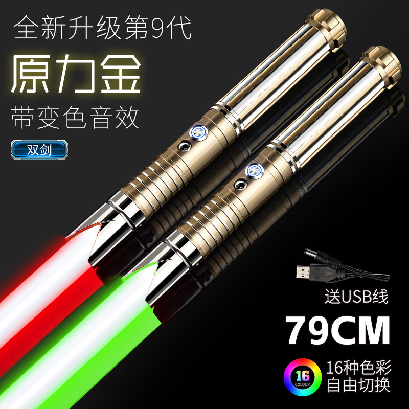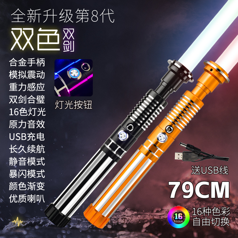 跨境星球大战激光剑二合一金属光剑炫彩儿童发光震动激光剑玩具