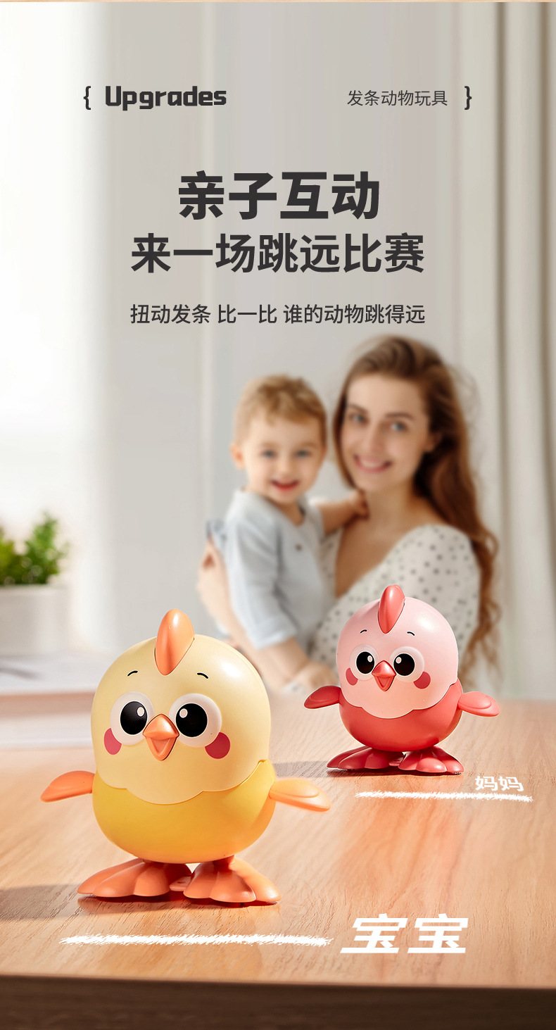 跳跳小鸡上链发条会跑会跳卡通小鸭子儿童1-3岁夜市地摊玩具批发