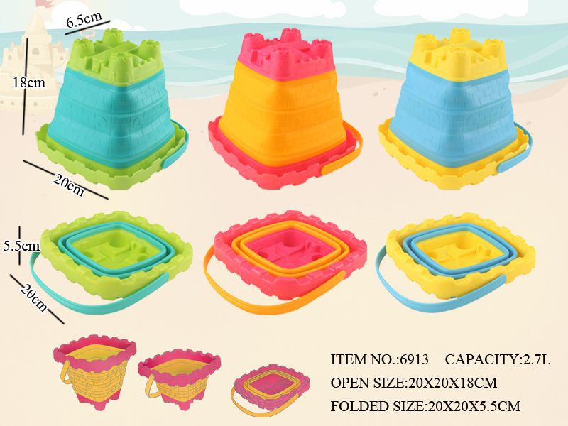 跨境户外新品2L方型城堡折叠桶装水装沙儿童沙滩玩具户外亲子互动
