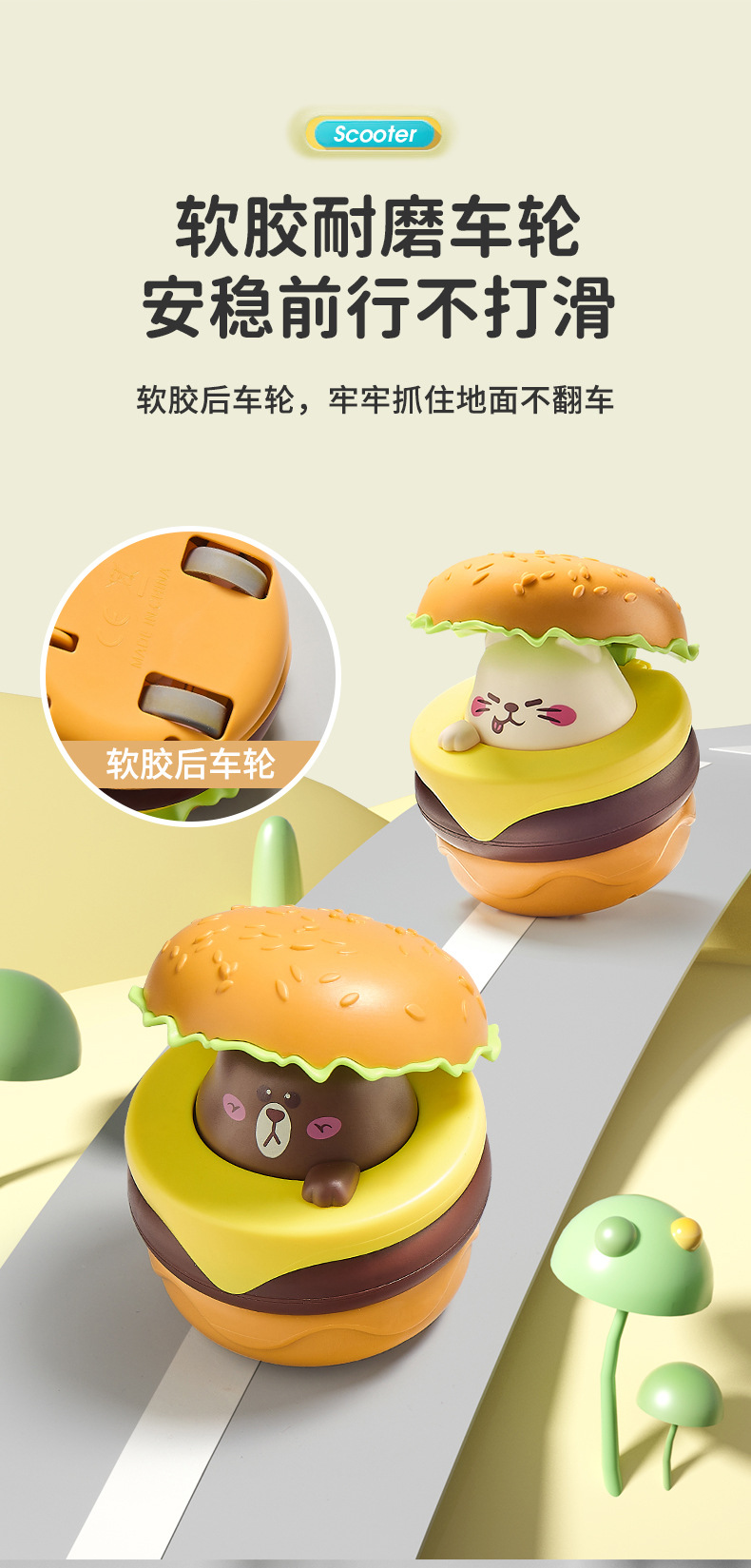 抖音爆款汉堡车玩具儿童惯性回力男女孩按压滑行可爱节日礼物萌趣