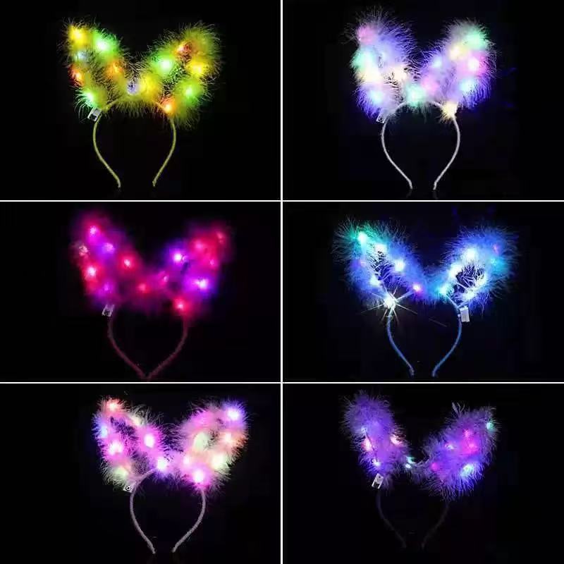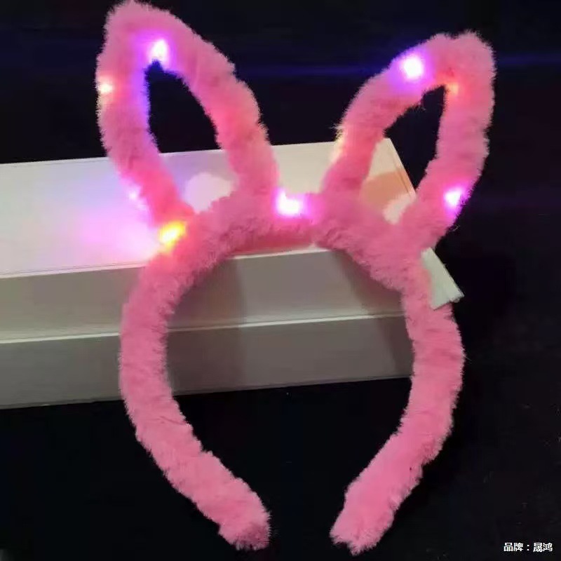 10灯毛绒发光米奇头箍闪光熊耳朵女发箍景区地摊夜市热卖儿童玩具