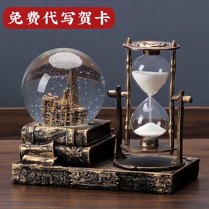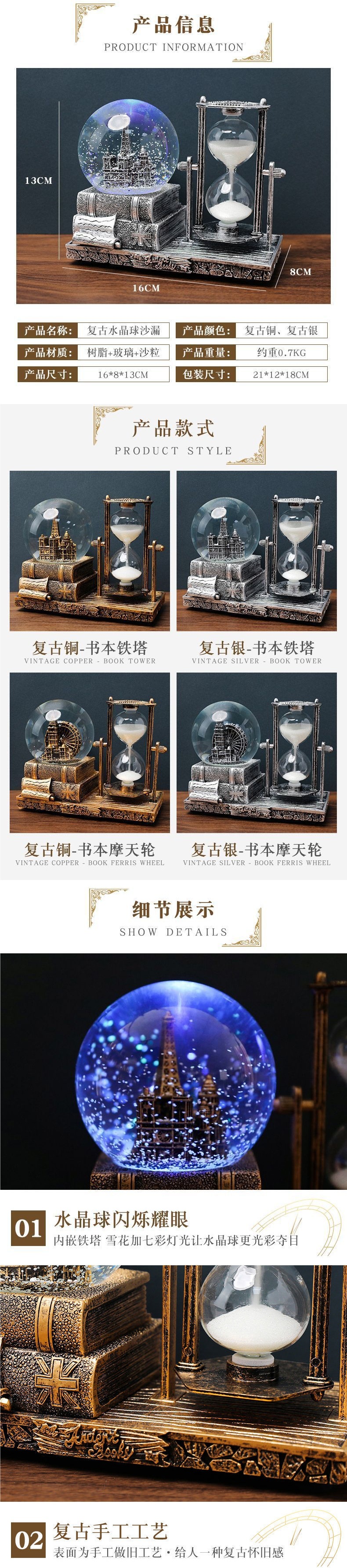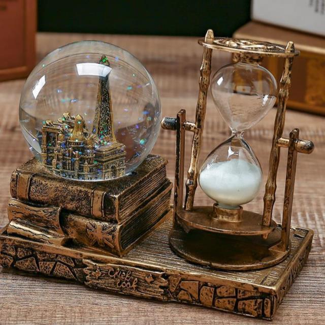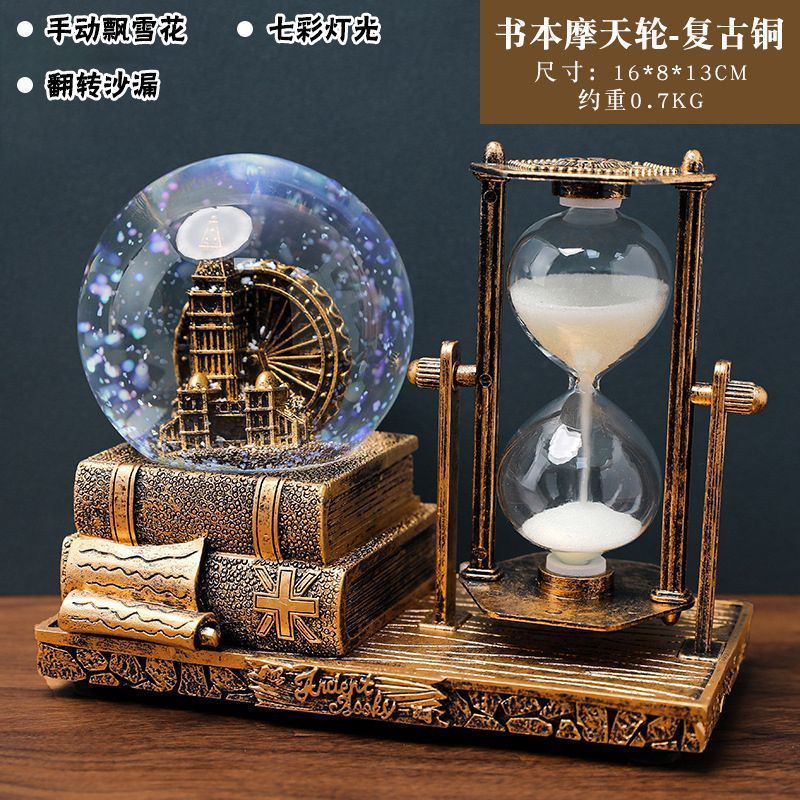 复古铁塔沙漏计时器水晶球八音盒发光桌面摆件学生毕业高级感礼物