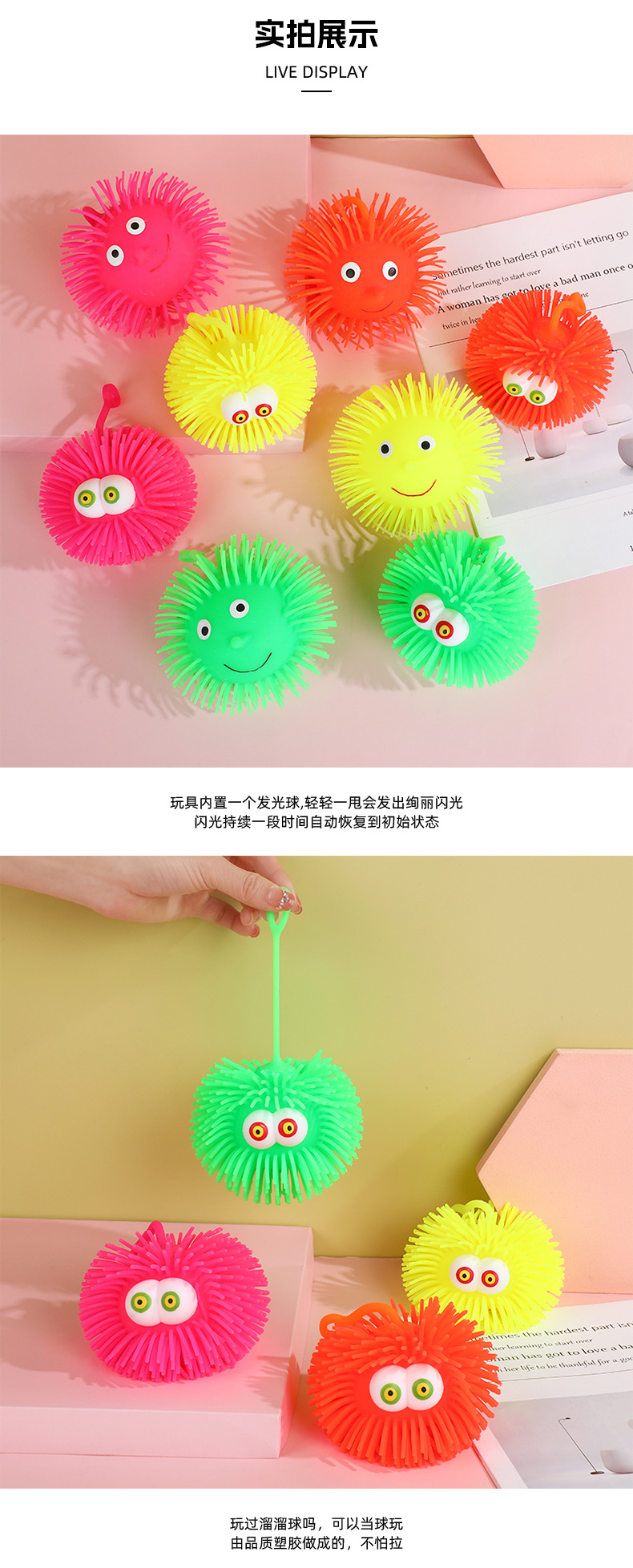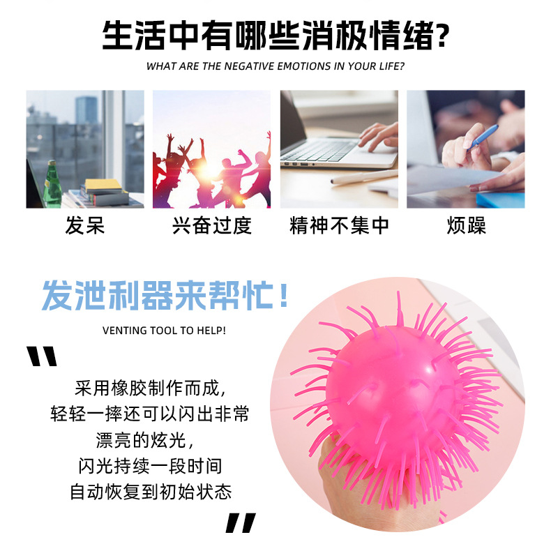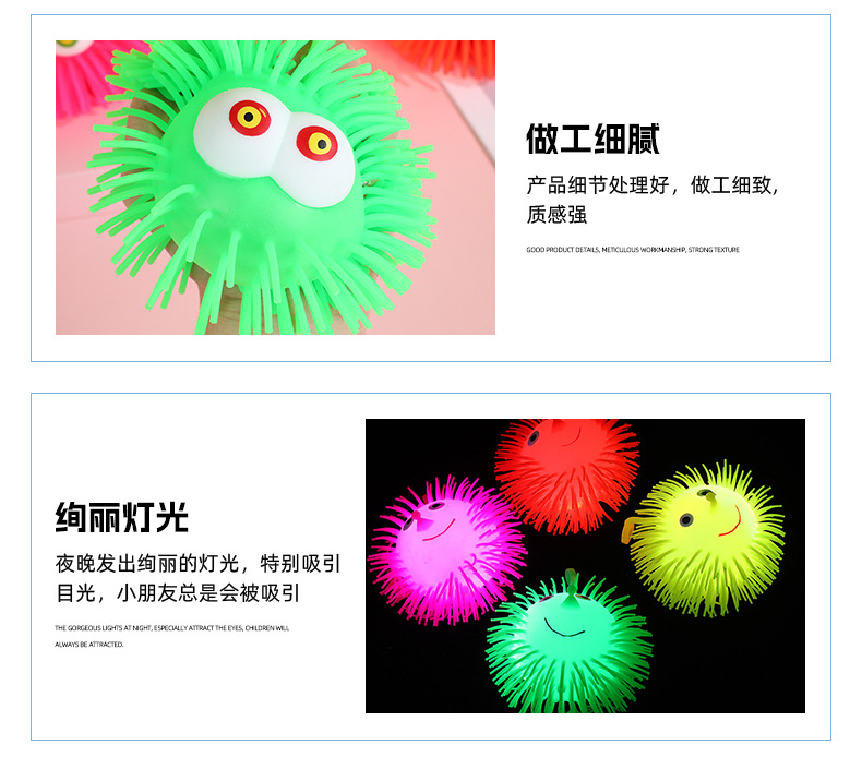 儿童刺猬毛毛球解压捏捏玩具发光突眼海胆球弹力减压发泄神器批发
