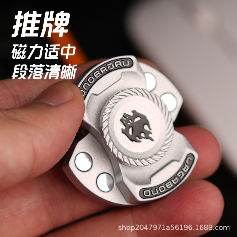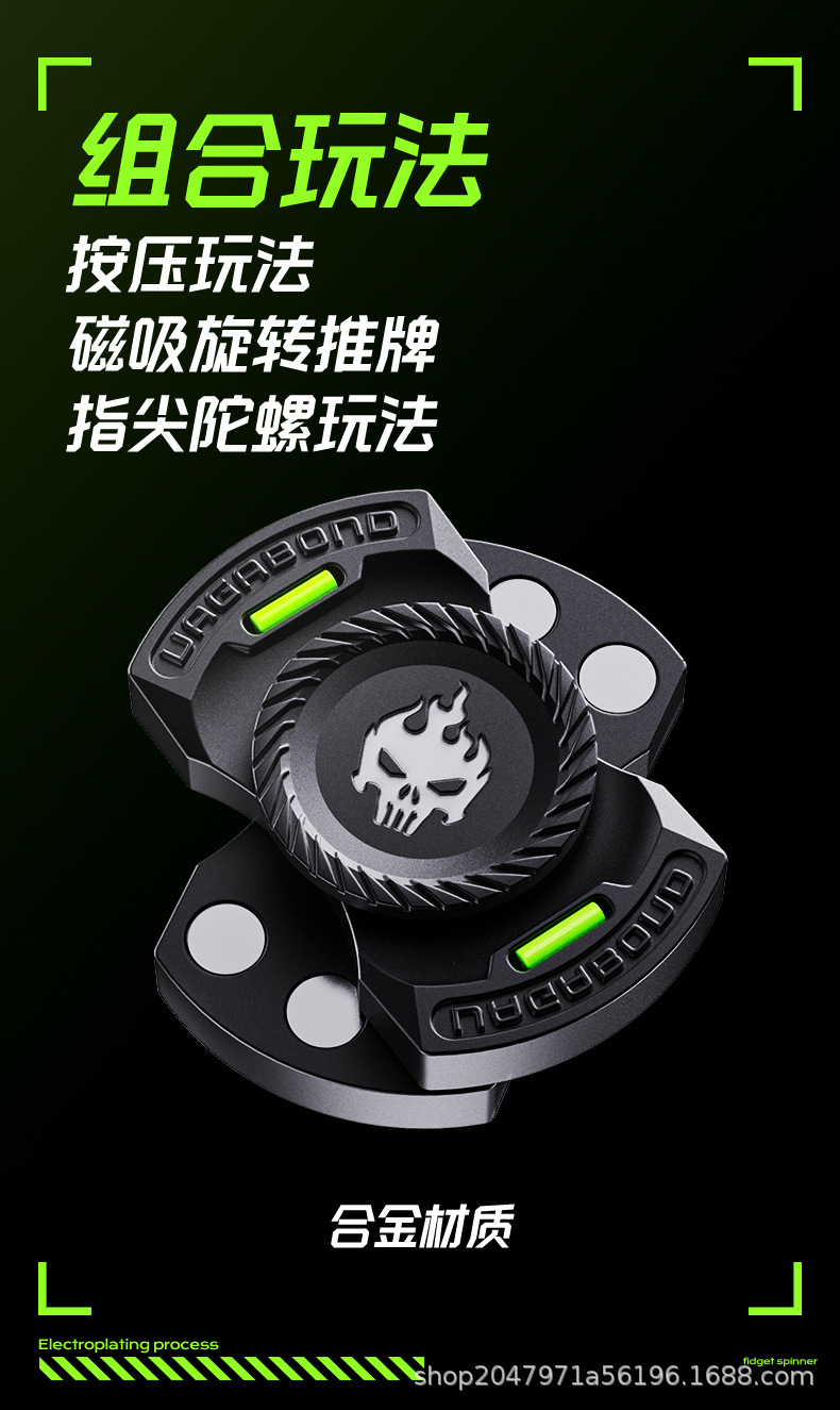 异爵减压三合一指尖陀螺磁力推牌按压金属旋转发光手指解压玩具