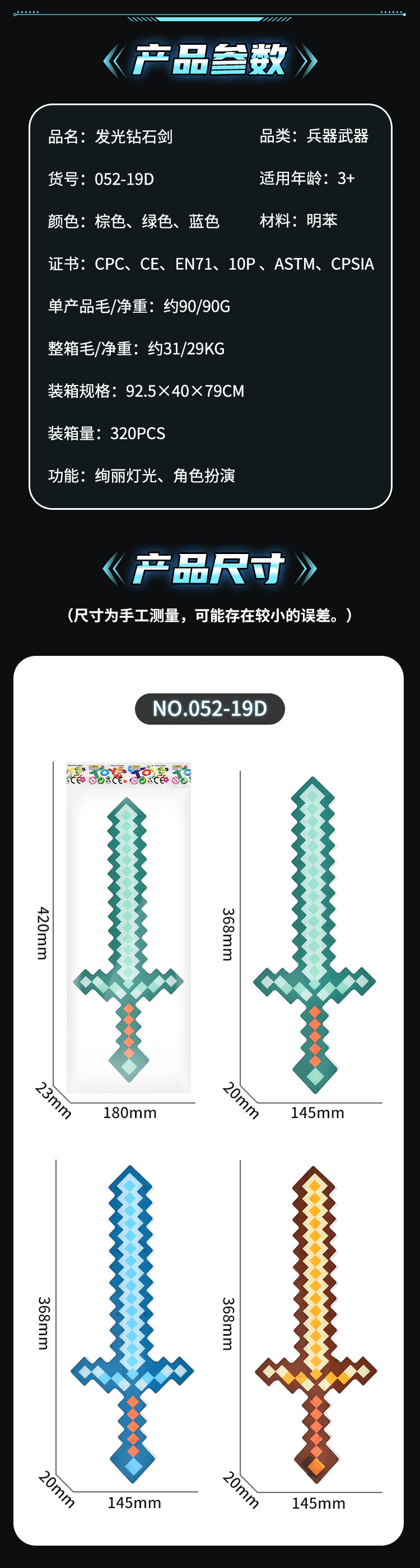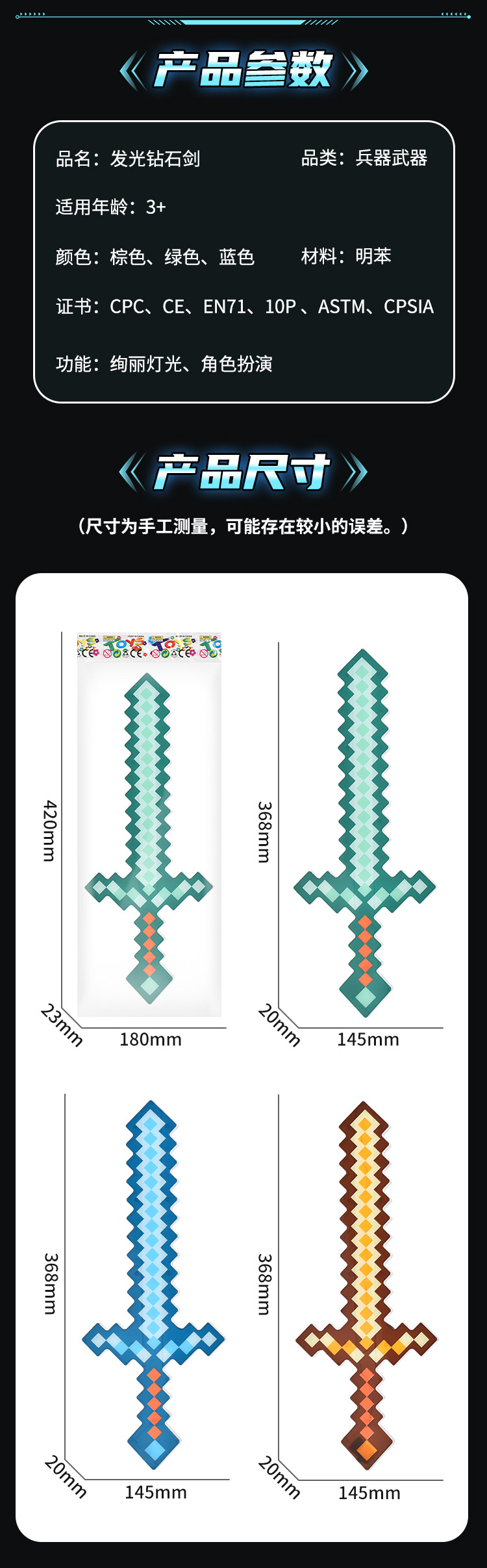 我的MC世界钻石剑玩具武器游戏迷你世界马赛克发光剑水晶剑解压