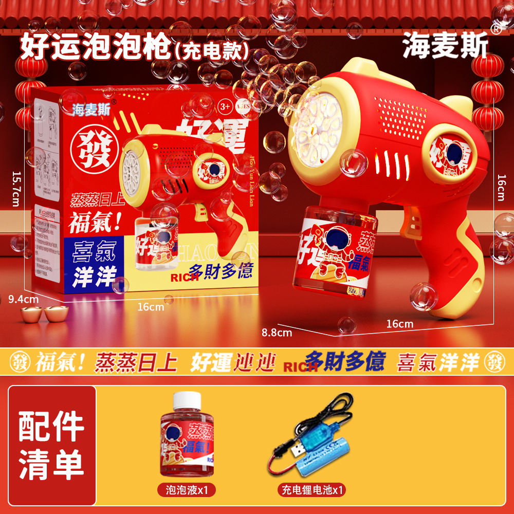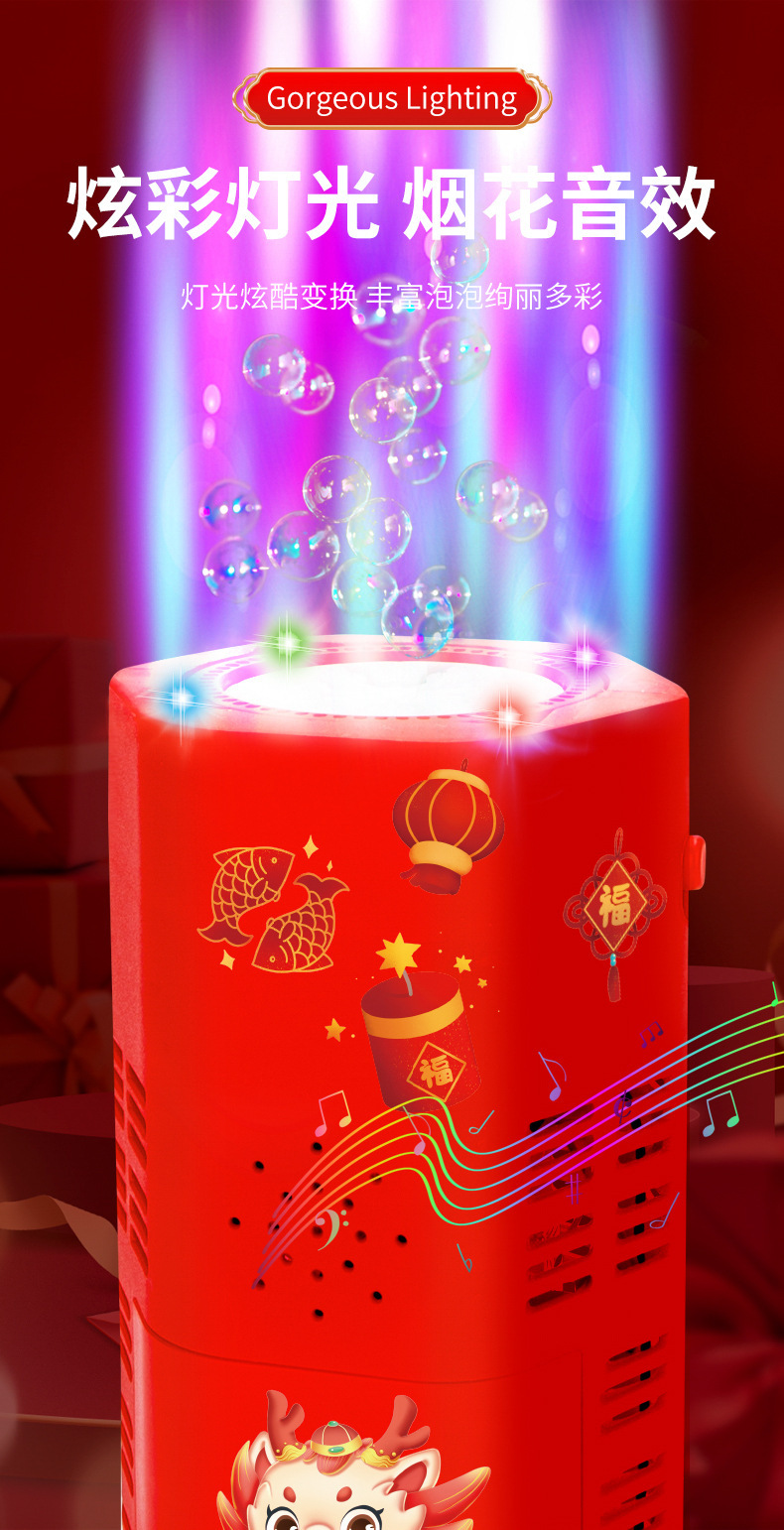 2026跨境烟花泡泡机新年爆竹发光加特林泡泡枪儿童过年玩具摆地摊