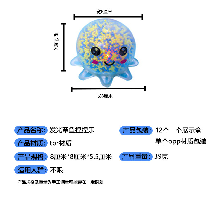 卡通泡沫八爪章鱼捏捏乐玩具批发儿童解压TPR发光捏捏摆摊小玩具
