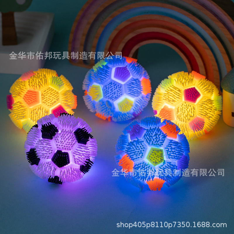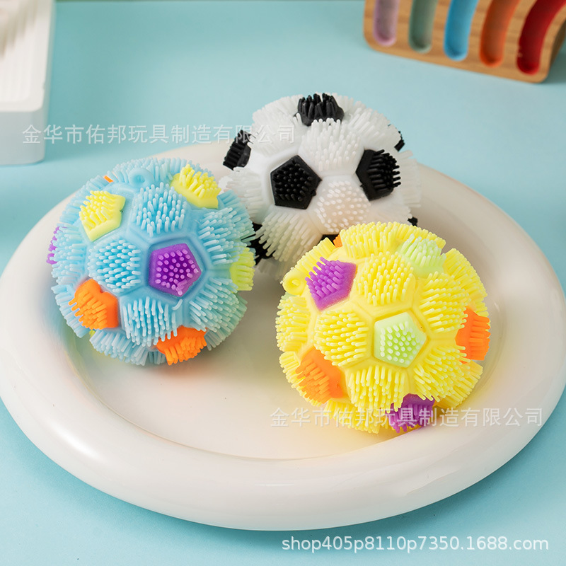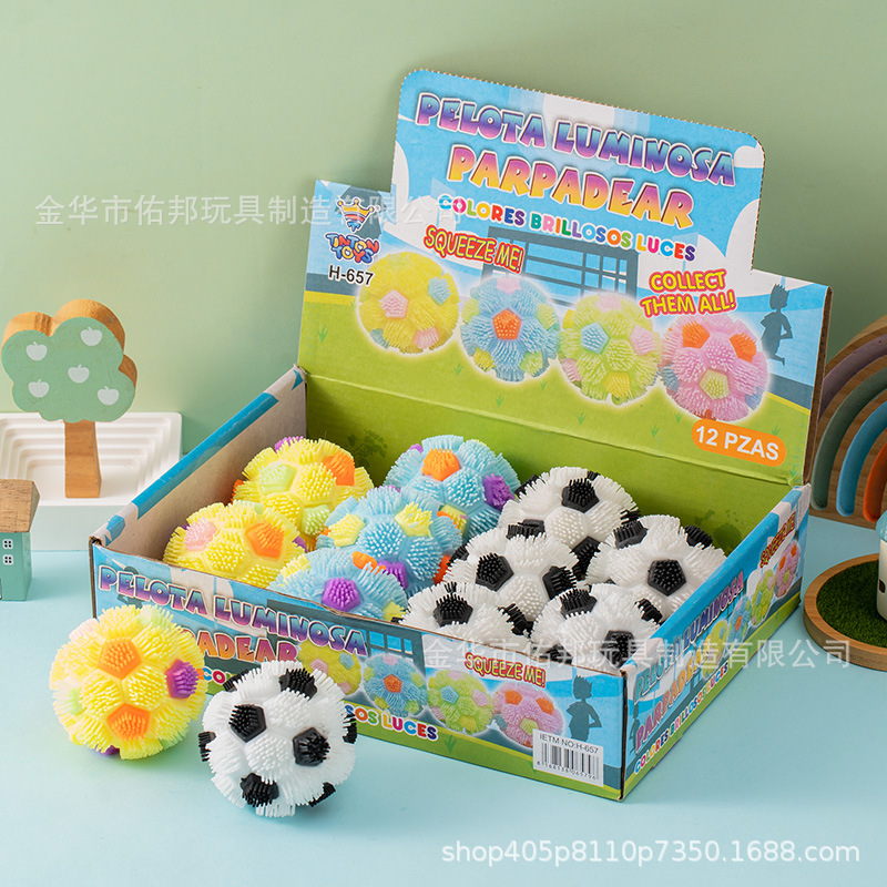 跨境热销解压闪光足球儿童捏捏乐毛毛发光足球义乌地摊小玩具批发