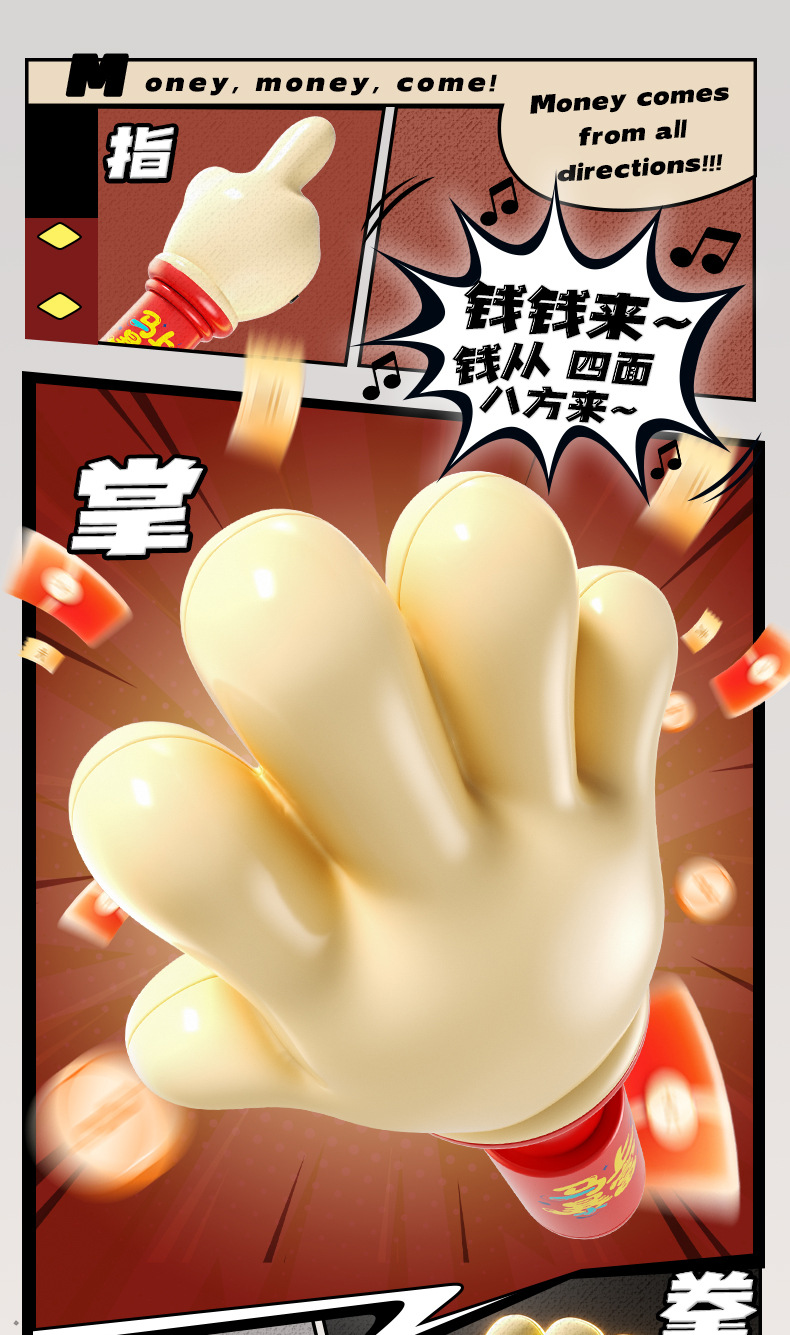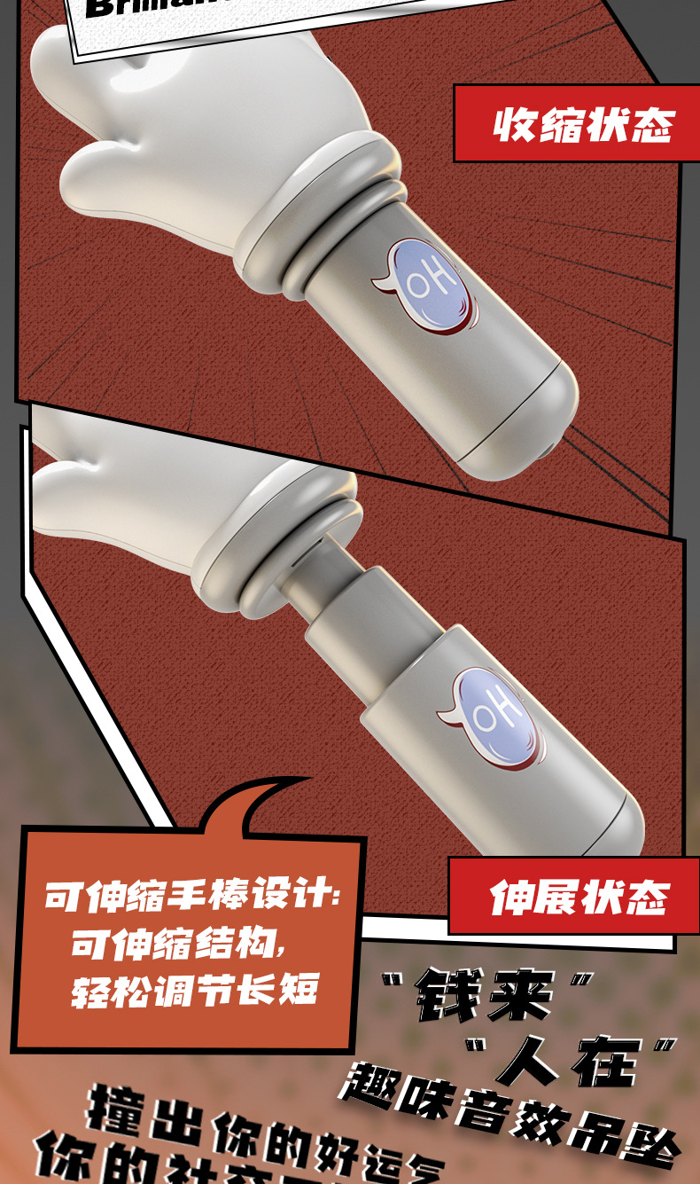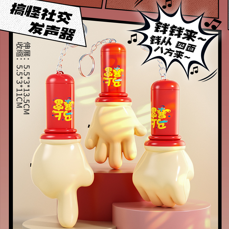 益智感应迷你手指手掌拳头创意发光音乐整蛊玩具可伸缩解压小挂件