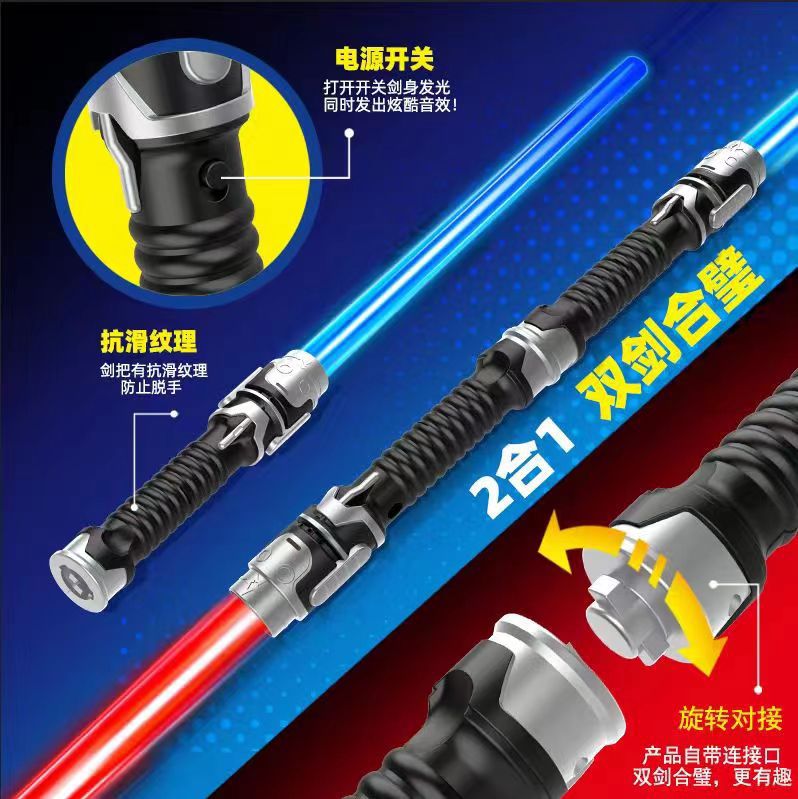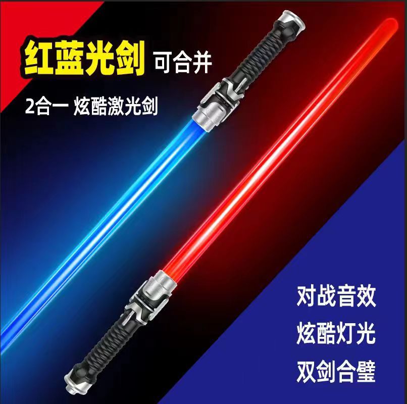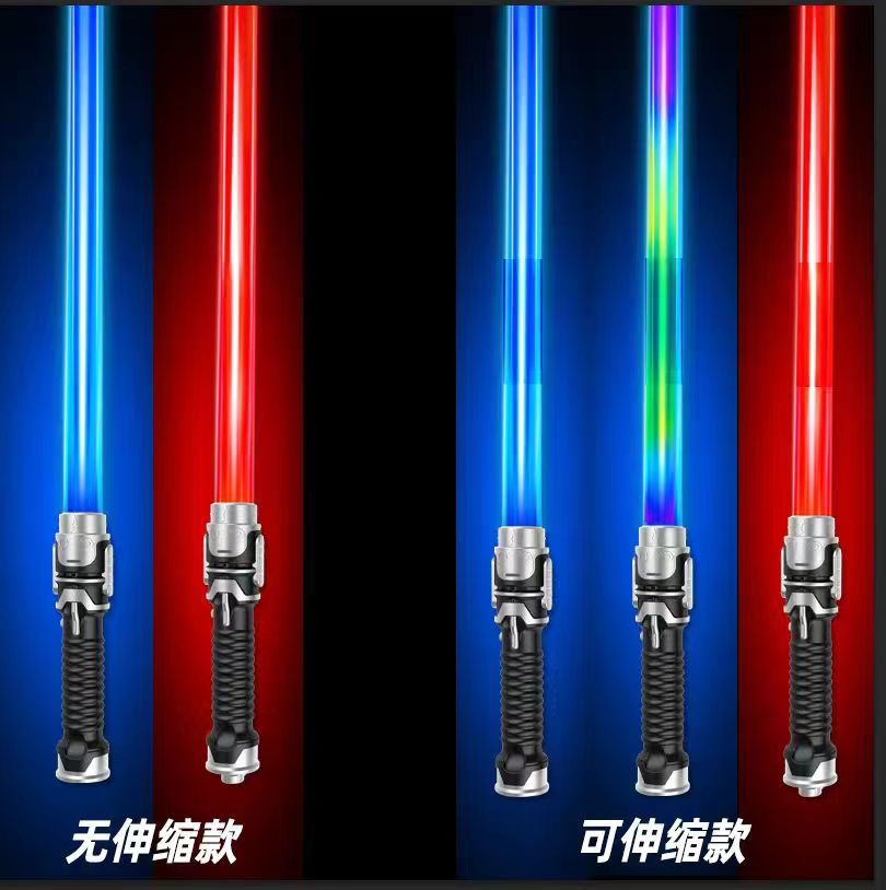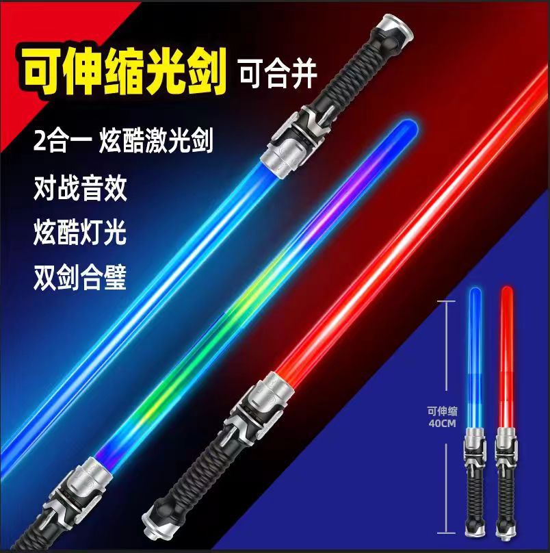 跨境网红激光剑二合一可伸缩七彩光剑地摊儿童发光发音玩具批发