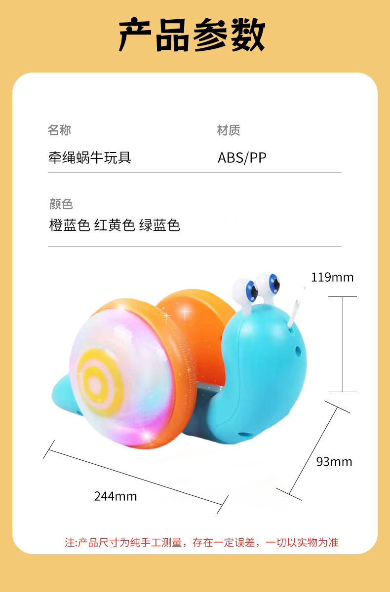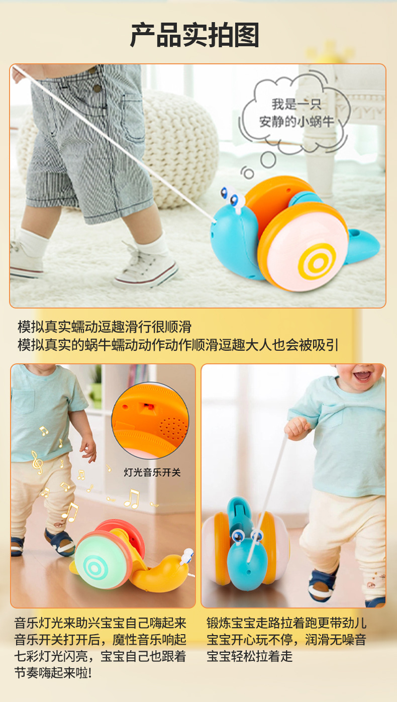 网红趣味牵绳蜗牛萌趣电动蜗牛玩具发光音乐儿童六一礼物地摊玩具