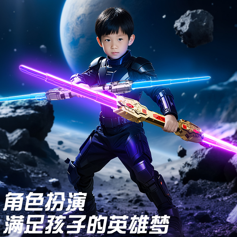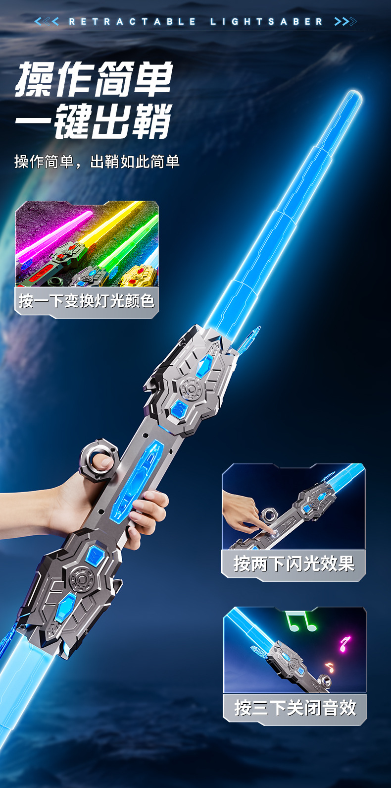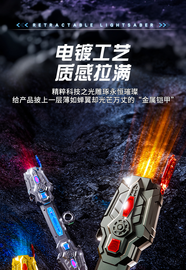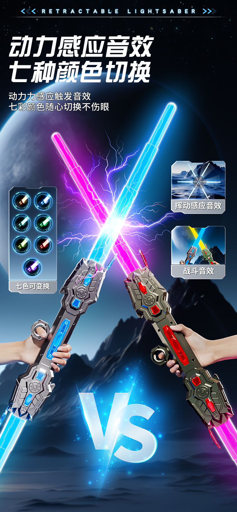 跨境儿童炫酷可伸缩光剑星大战男孩二合一网红7彩发光荧光棒玩具